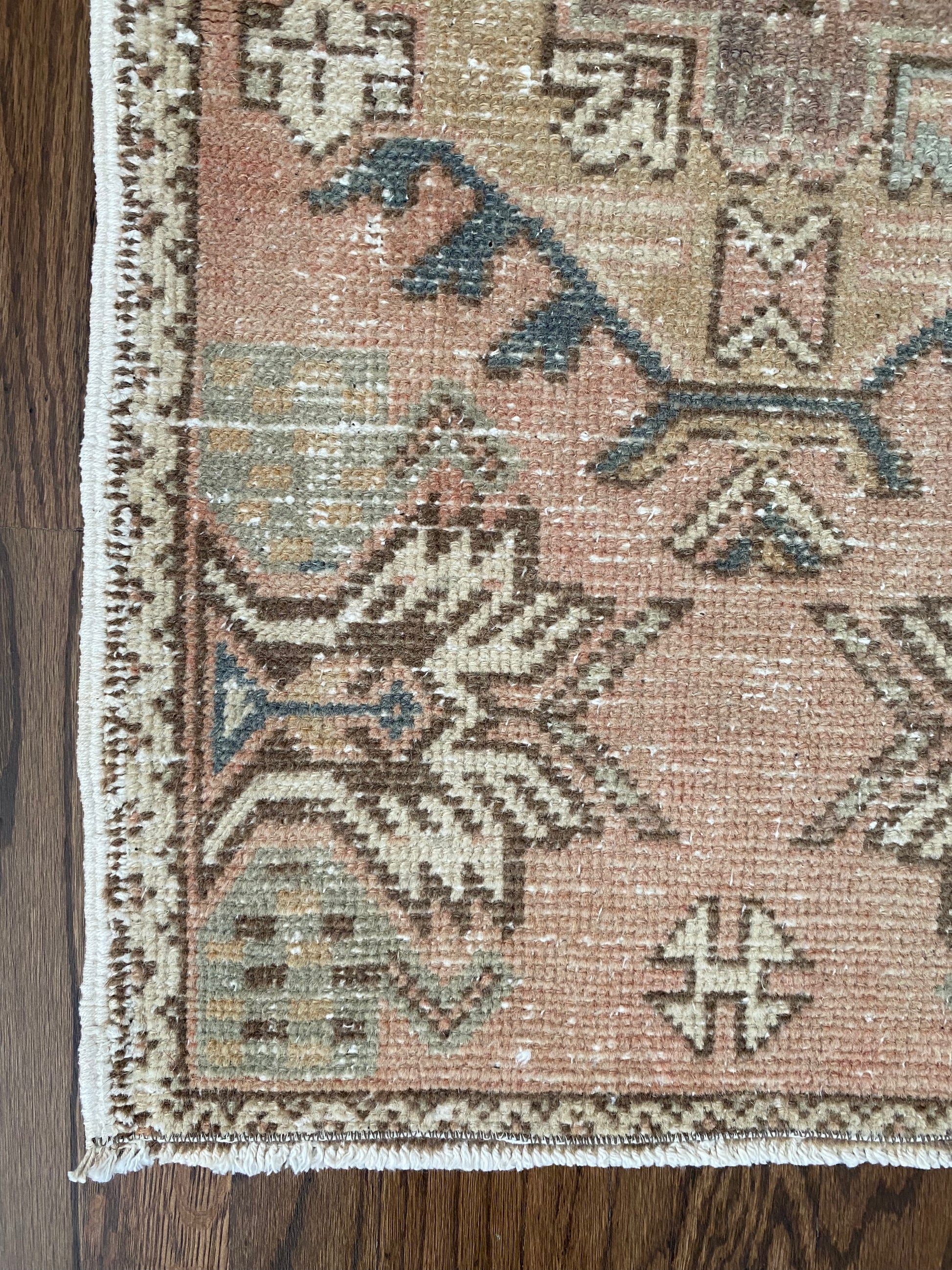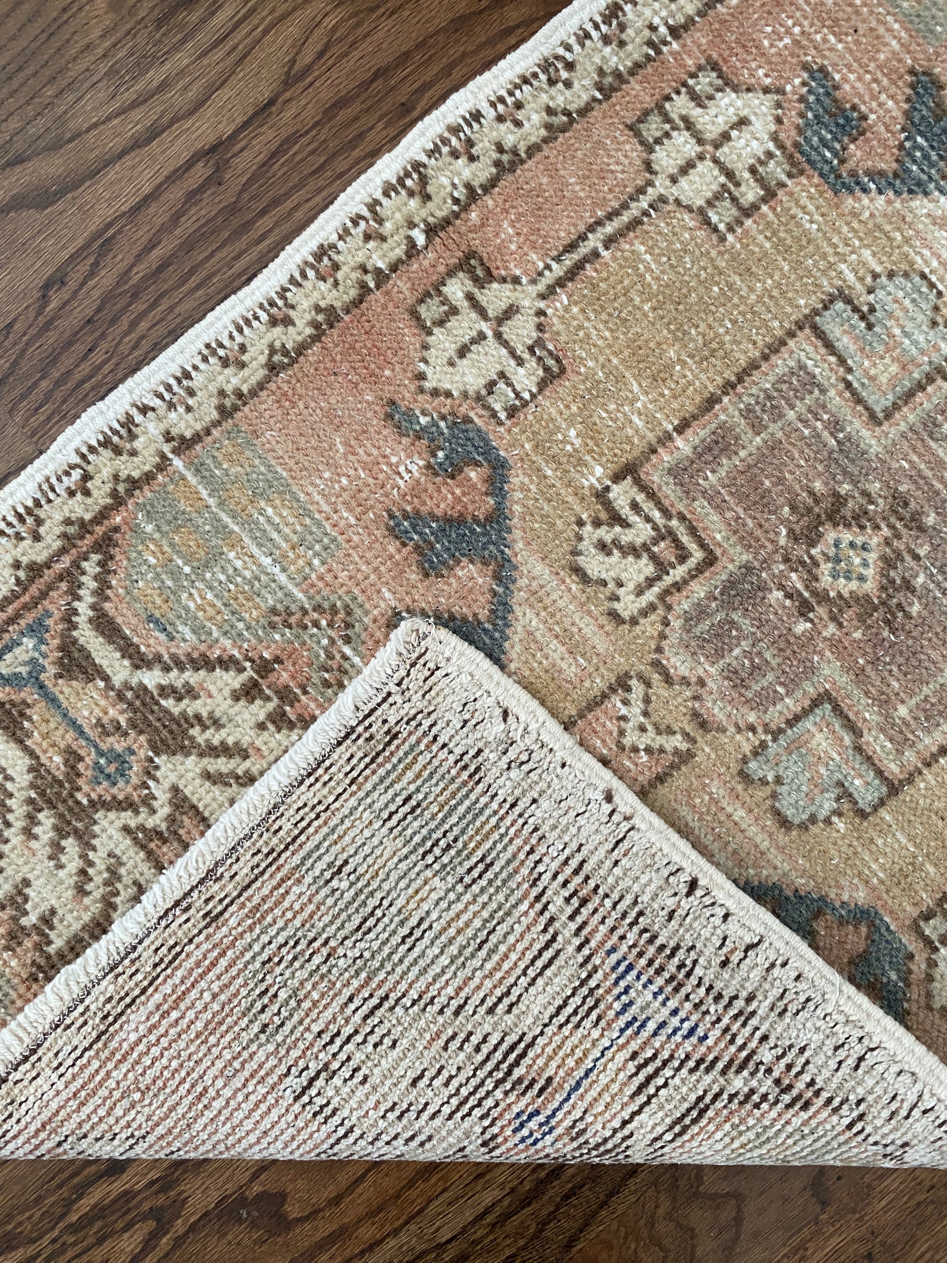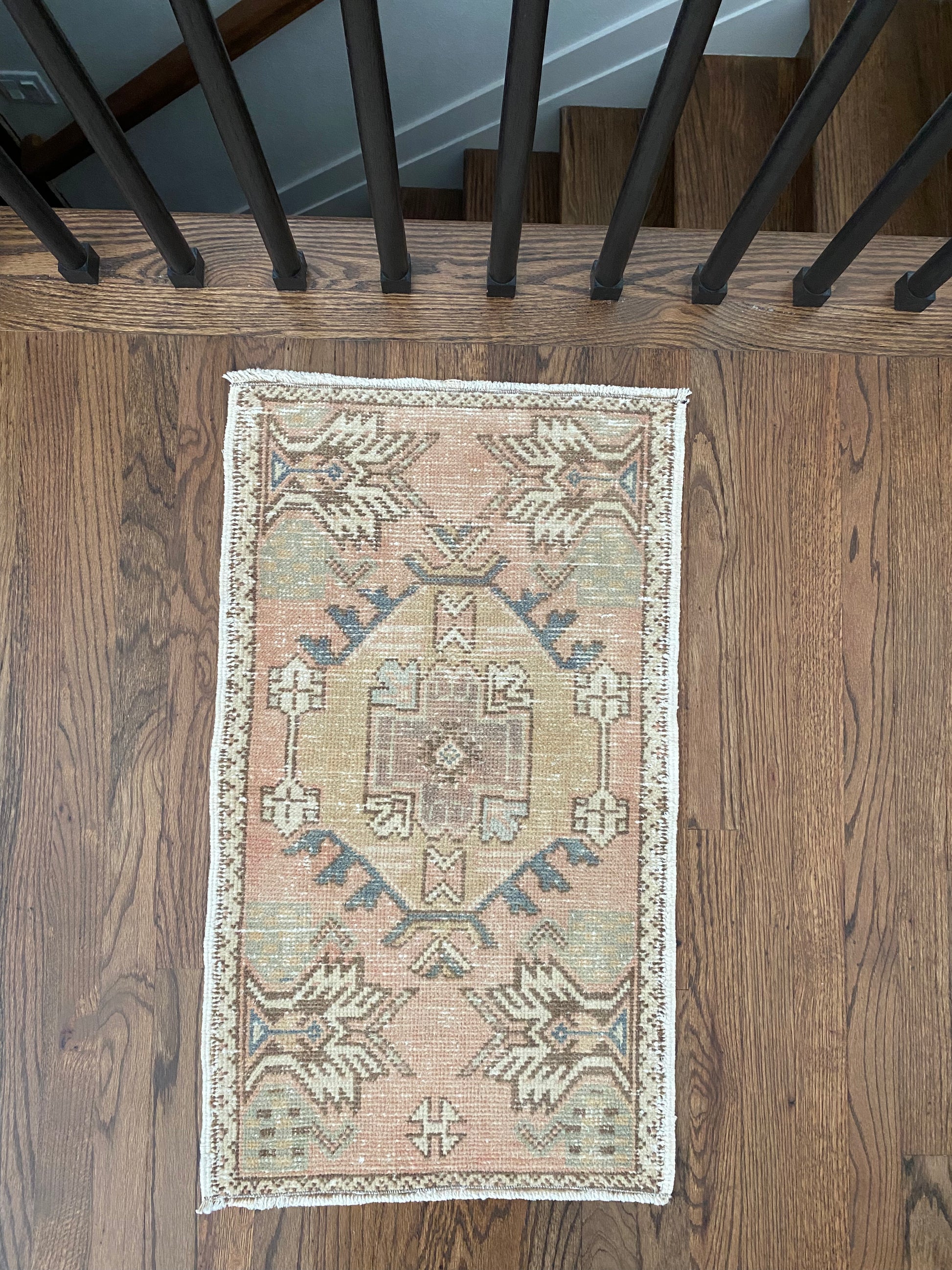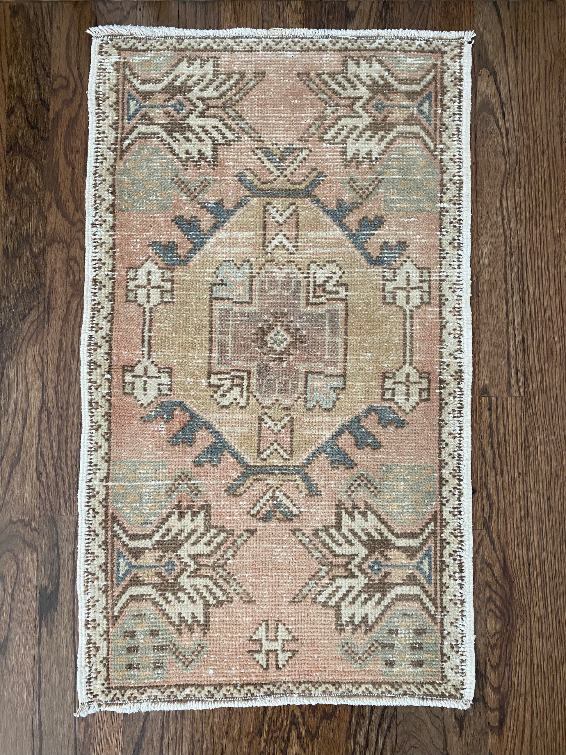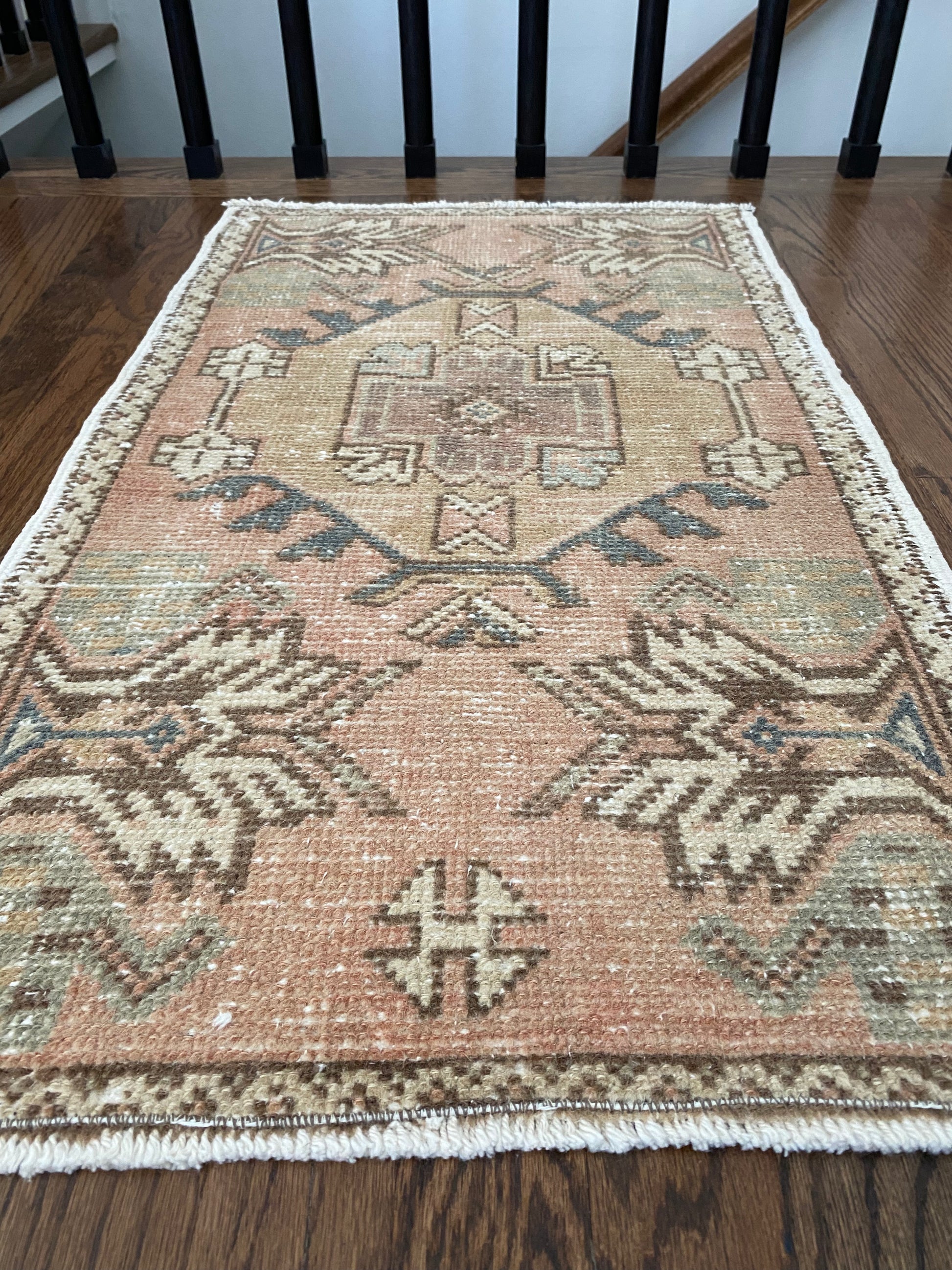 All of our rugs have been professionally cleaned prior to listing. We strive to deliver rugs that everyone loves, but please note that when you purchase from Two Sisters Rugs you are purchasing an item that is pre-owned and vintage by nature. Rugs might have areas of wear, minor repairs, or other unique characteristics, but we believe this is what makes them beautiful and one of a kind. Many rugs do not have perfect lines. All photographs are taken on an iPhone with no filter in natural light unless otherwise noted; colors may vary depending on the placement in your home. Colors may also vary depending on your phone or screen settings. If the area you are placing the rug has less natural light, the rug will appear darker in person. We aim to represent each rugs true colors and designs on the listing photos, but are happy to send additional photos upon request prior to purchase. High quality wool contains a substance called lanolin, which emits a metallic-y, but sweet and grassy scent. ALL SALES ARE FINAL.