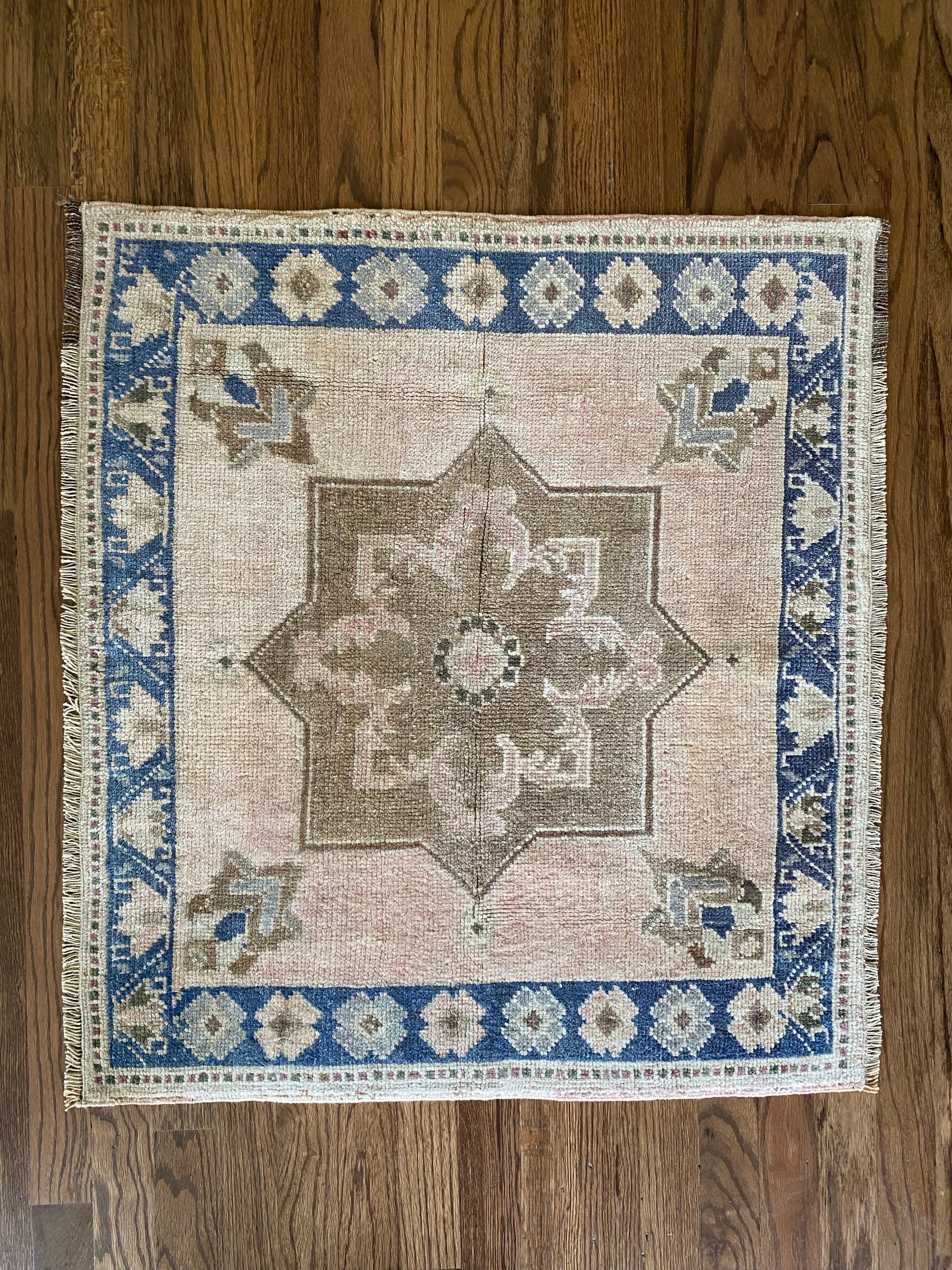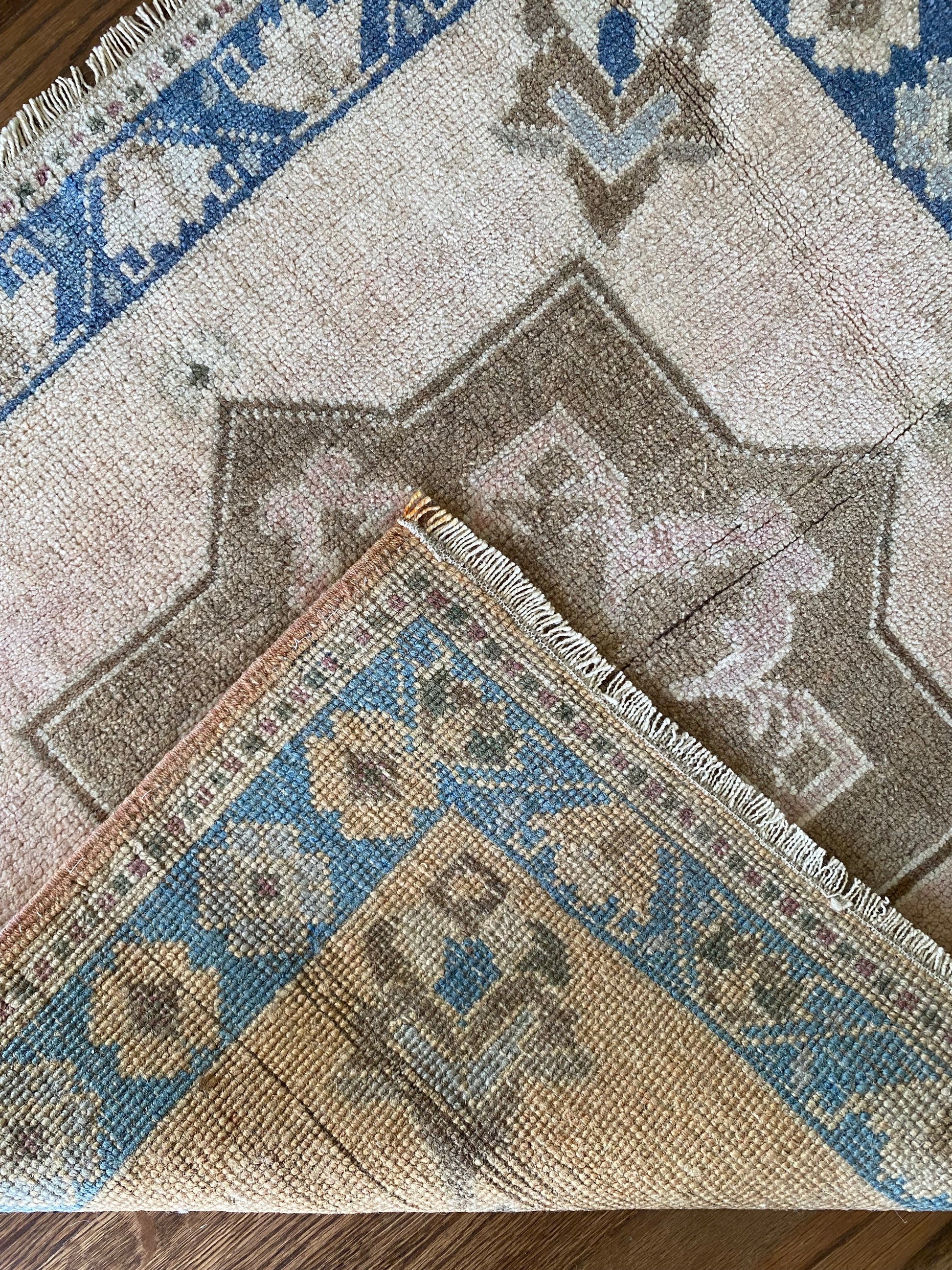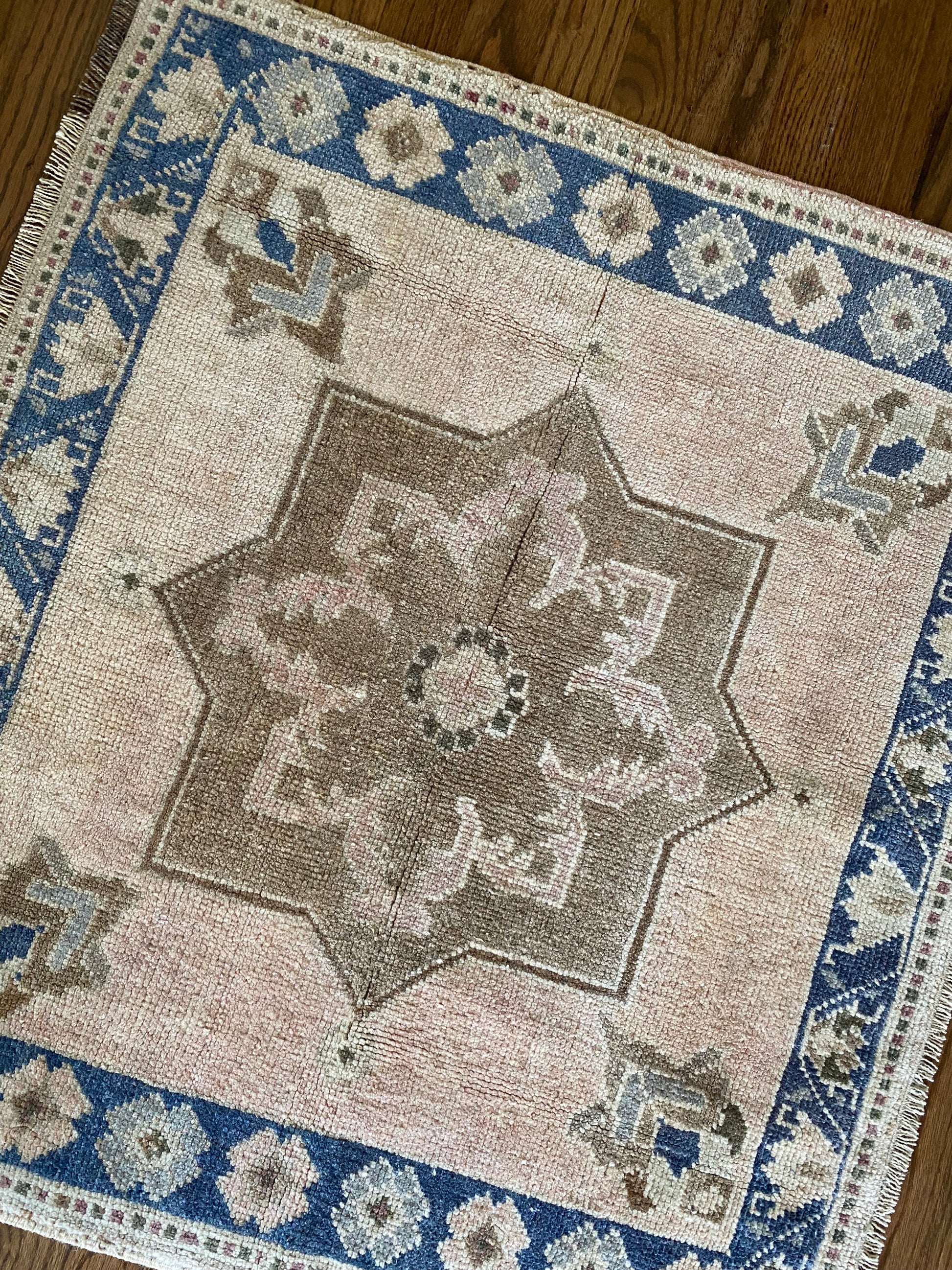 All of our rugs have been professionally cleaned prior to listing. We strive to deliver rugs that everyone loves, but please note that when you purchase from Two Sisters Rugs you are purchasing an item that is pre-owned and vintage by nature. Rugs might have areas of wear, minor repairs, or other unique characteristics, but we believe this is what makes them beautiful and one of a kind. Many rugs do not have perfect lines. All photographs are taken on an iPhone with no filter in natural light unless otherwise noted; colors may vary depending on the placement in your home. Colors may also vary depending on your phone or screen settings. If the area you are placing the rug has less natural light, the rug will appear darker in person. We aim to represent each rugs true colors and designs on the listing photos, but are happy to send additional photos upon request prior to purchase. High quality wool contains a substance called lanolin, which emits a metallic-y, but sweet and grassy scent. ALL SALES ARE FINAL.