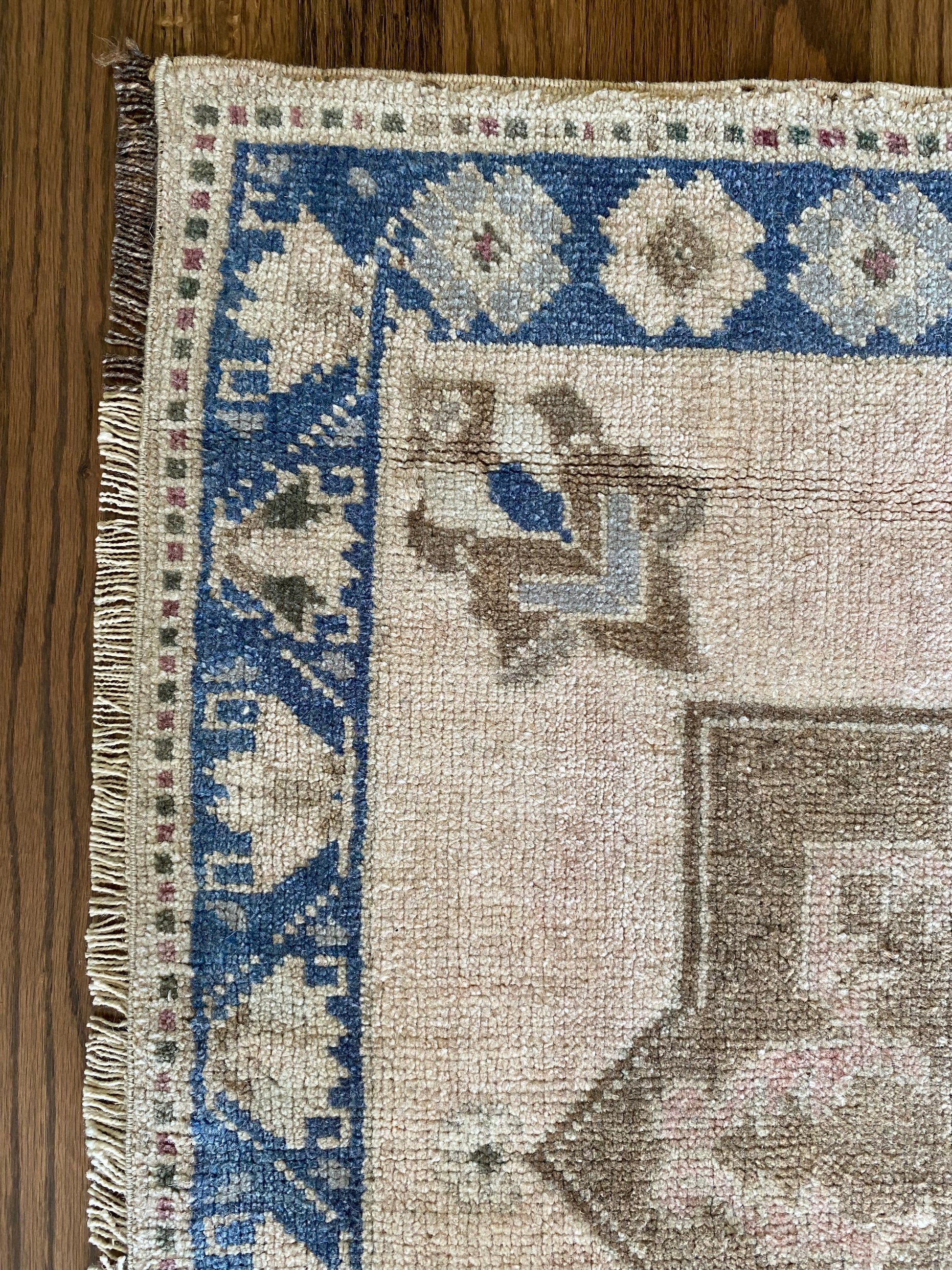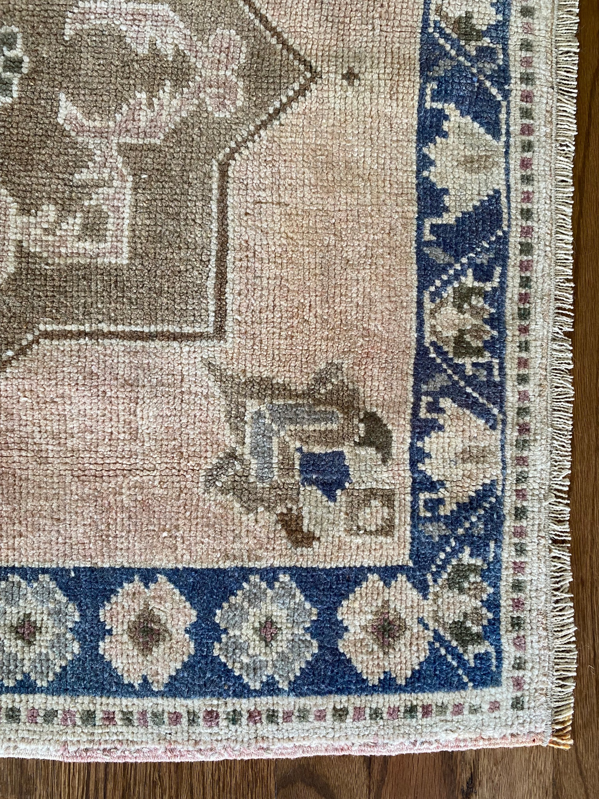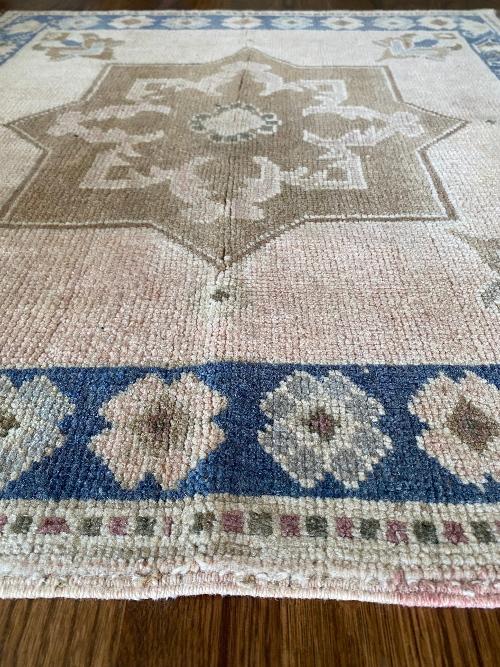 All of our rugs have been professionally cleaned prior to listing. We strive to deliver rugs that everyone loves, but please note that when you purchase from Two Sisters Rugs you are purchasing an item that is pre-owned and vintage by nature. Rugs might have areas of wear, minor repairs, or other unique characteristics, but we believe this is what makes them beautiful and one of a kind. Many rugs do not have perfect lines. All photographs are taken on an iPhone with no filter in natural light unless otherwise noted; colors may vary depending on the placement in your home. Colors may also vary depending on your phone or screen settings. If the area you are placing the rug has less natural light, the rug will appear darker in person. We aim to represent each rugs true colors and designs on the listing photos, but are happy to send additional photos upon request prior to purchase. High quality wool contains a substance called lanolin, which emits a metallic-y, but sweet and grassy scent. ALL SALES ARE FINAL.