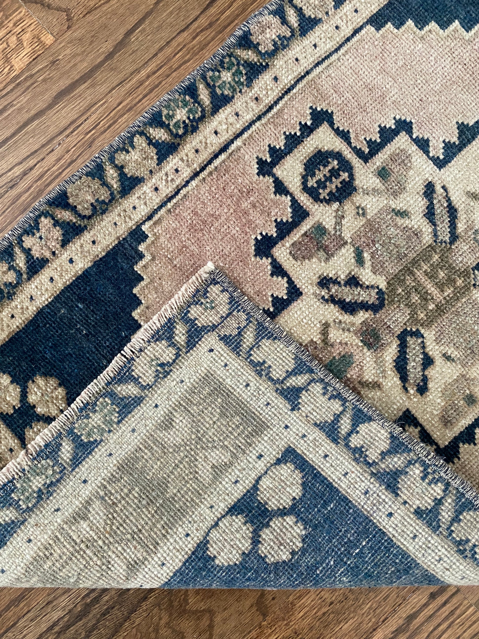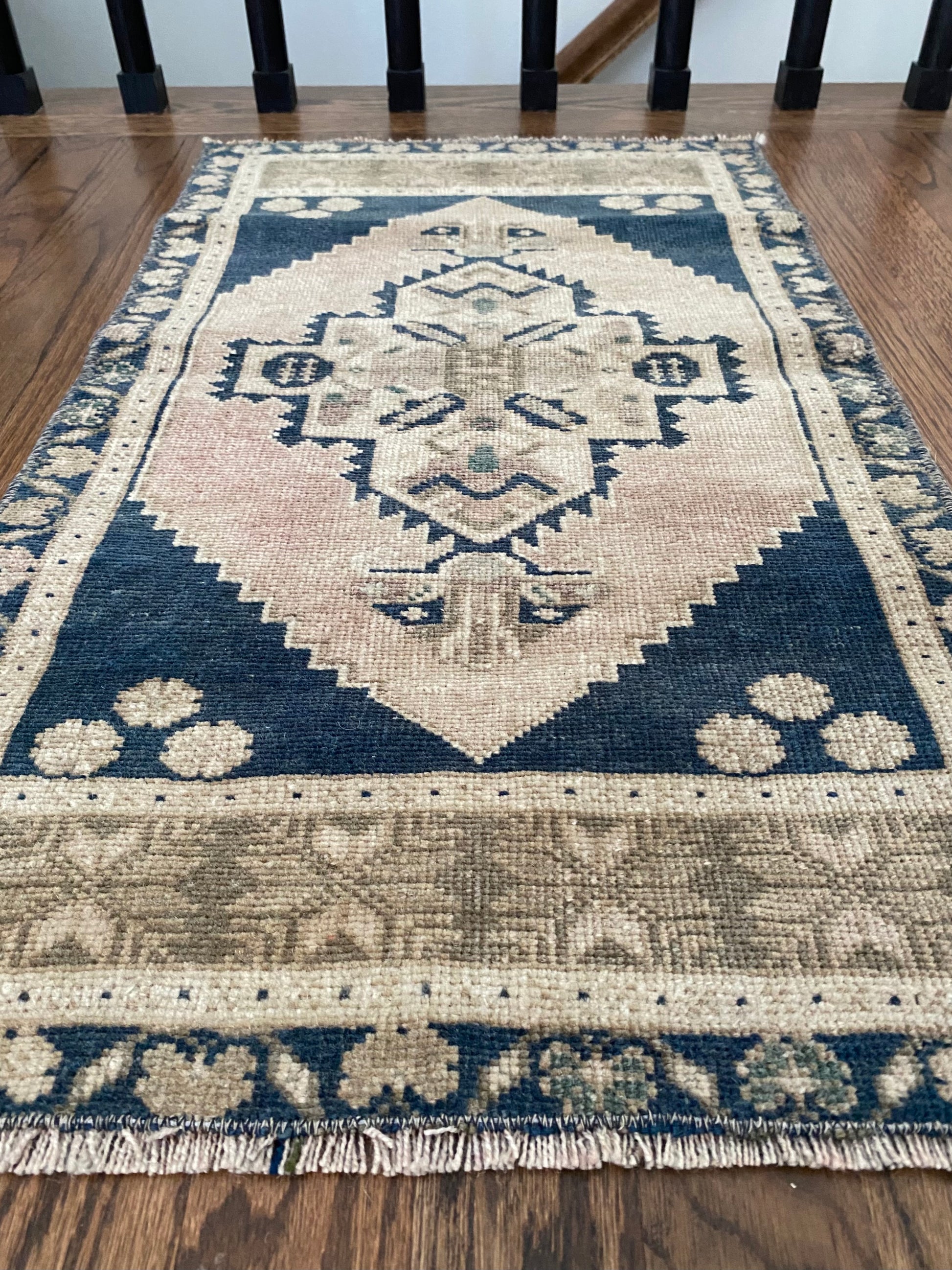 All of our rugs have been professionally cleaned prior to listing. We strive to deliver rugs that everyone loves, but please note that when you purchase from Two Sisters Rugs you are purchasing an item that is pre-owned and vintage by nature. Rugs might have areas of wear, minor repairs, or other unique characteristics, but we believe this is what makes them beautiful and one of a kind. Many rugs do not have perfect lines. All photographs are taken on an iPhone with no filter in natural light unless otherwise noted; colors may vary depending on the placement in your home. Colors may also vary depending on your phone or screen settings. If the area you are placing the rug has less natural light, the rug will appear darker in person. We aim to represent each rugs true colors and designs on the listing photos, but are happy to send additional photos upon request prior to purchase. High quality wool contains a substance called lanolin, which emits a metallic-y, but sweet and grassy scent. ALL SALES ARE FINAL.