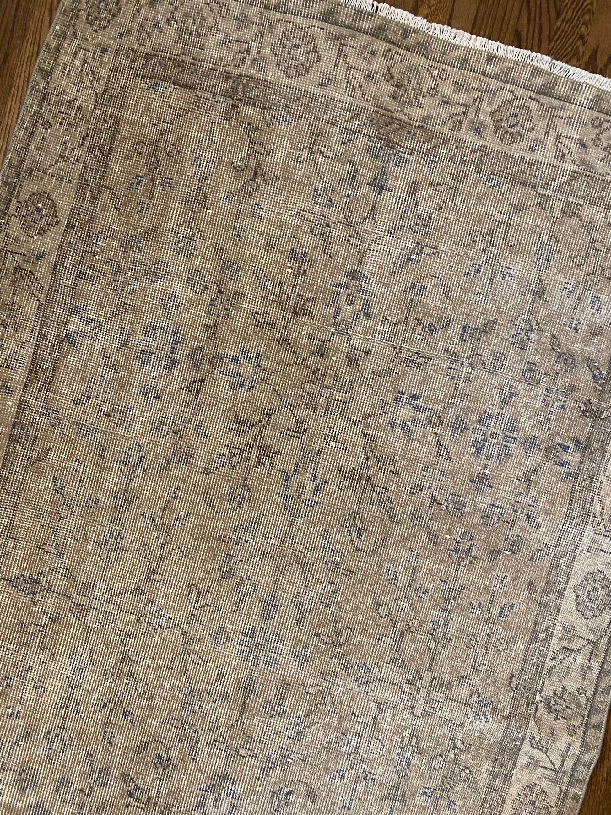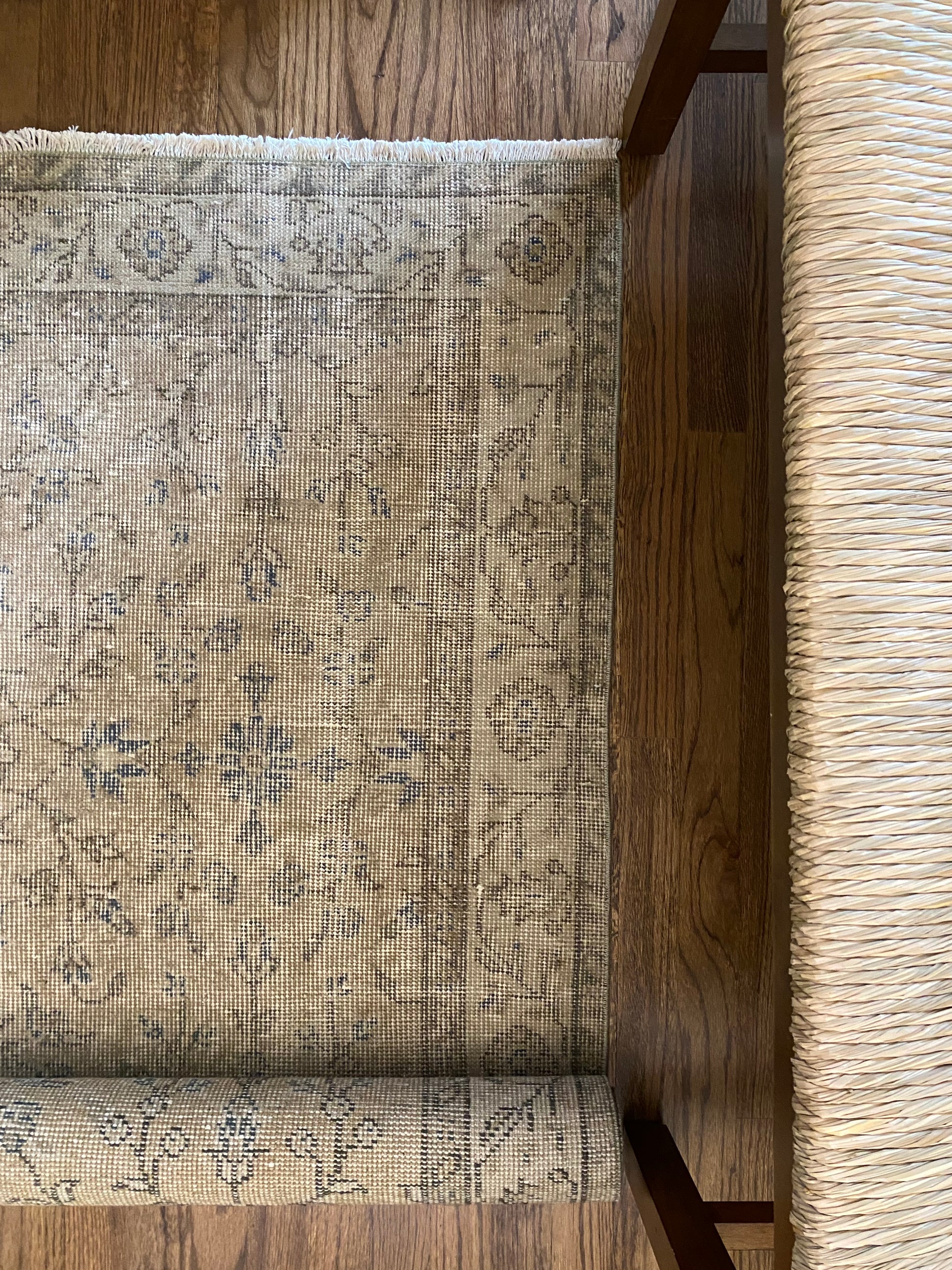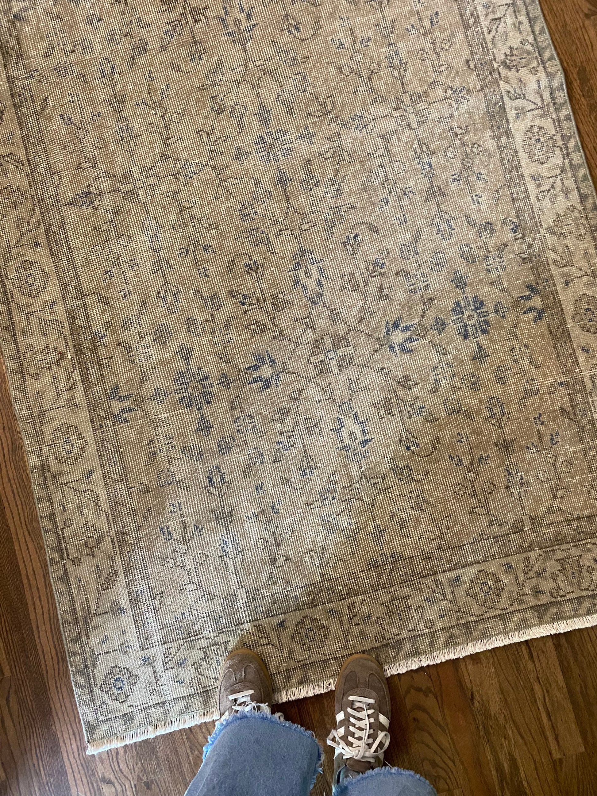 All of our rugs have been professionally cleaned prior to listing. We strive to deliver rugs that everyone loves, but please note that when you purchase from Two Sisters Rugs you are purchasing an item that is pre-owned and vintage by nature. Rugs might have areas of wear, minor repairs, or other unique characteristics, but we believe this is what makes them beautiful and one of a kind. Many rugs do not have perfect lines. All photographs are taken on an iPhone with no filter in natural light unless otherwise noted; colors may vary depending on the placement in your home. Colors may also vary depending on your phone or screen settings. If the area you are placing the rug has less natural light, the rug will appear darker in person. We aim to represent each rugs true colors and designs on the listing photos, but are happy to send additional photos upon request prior to purchase. High quality wool contains a substance called lanolin, which emits a metallic-y, but sweet and grassy scent. ALL SALES ARE FINAL.