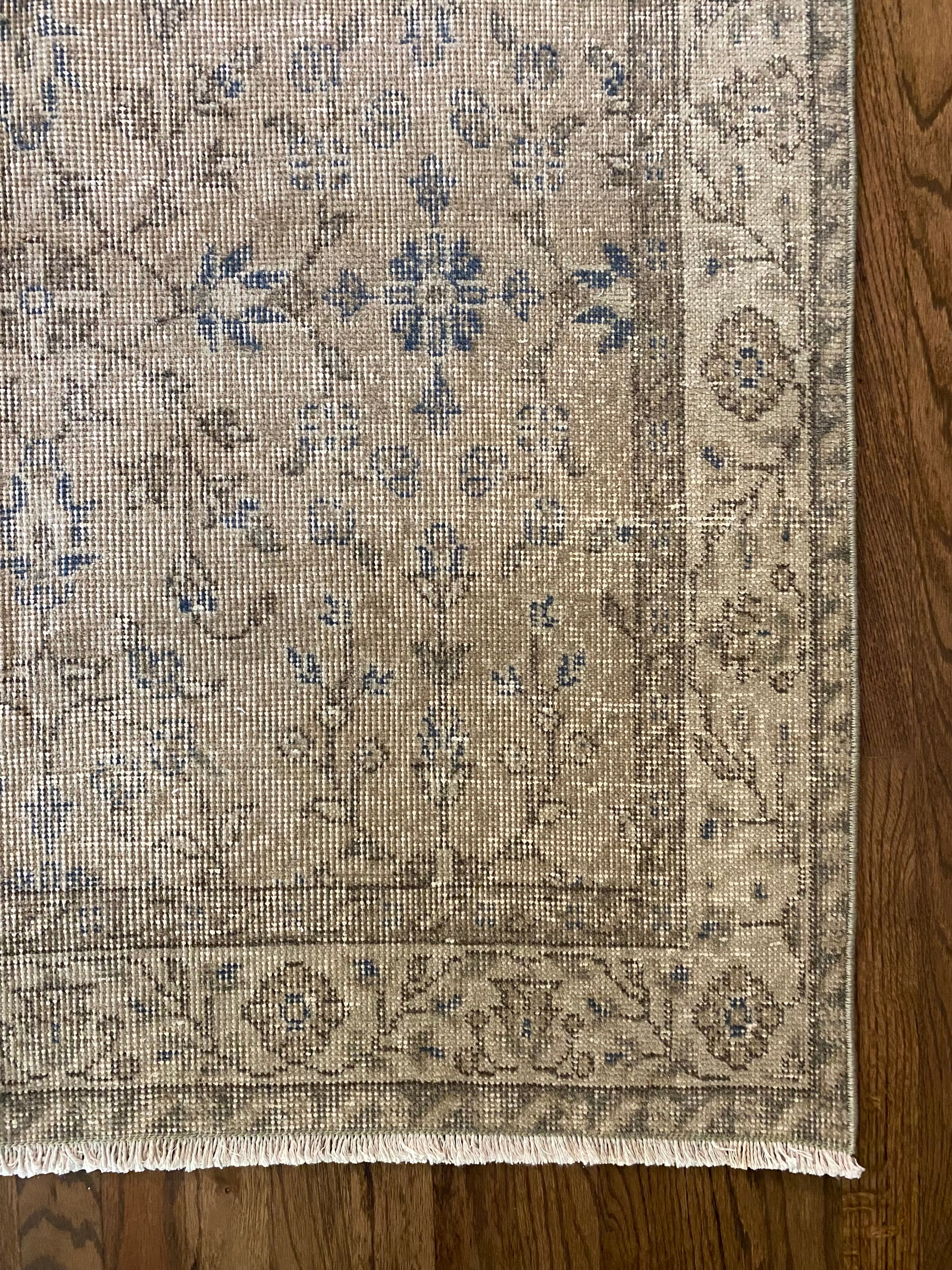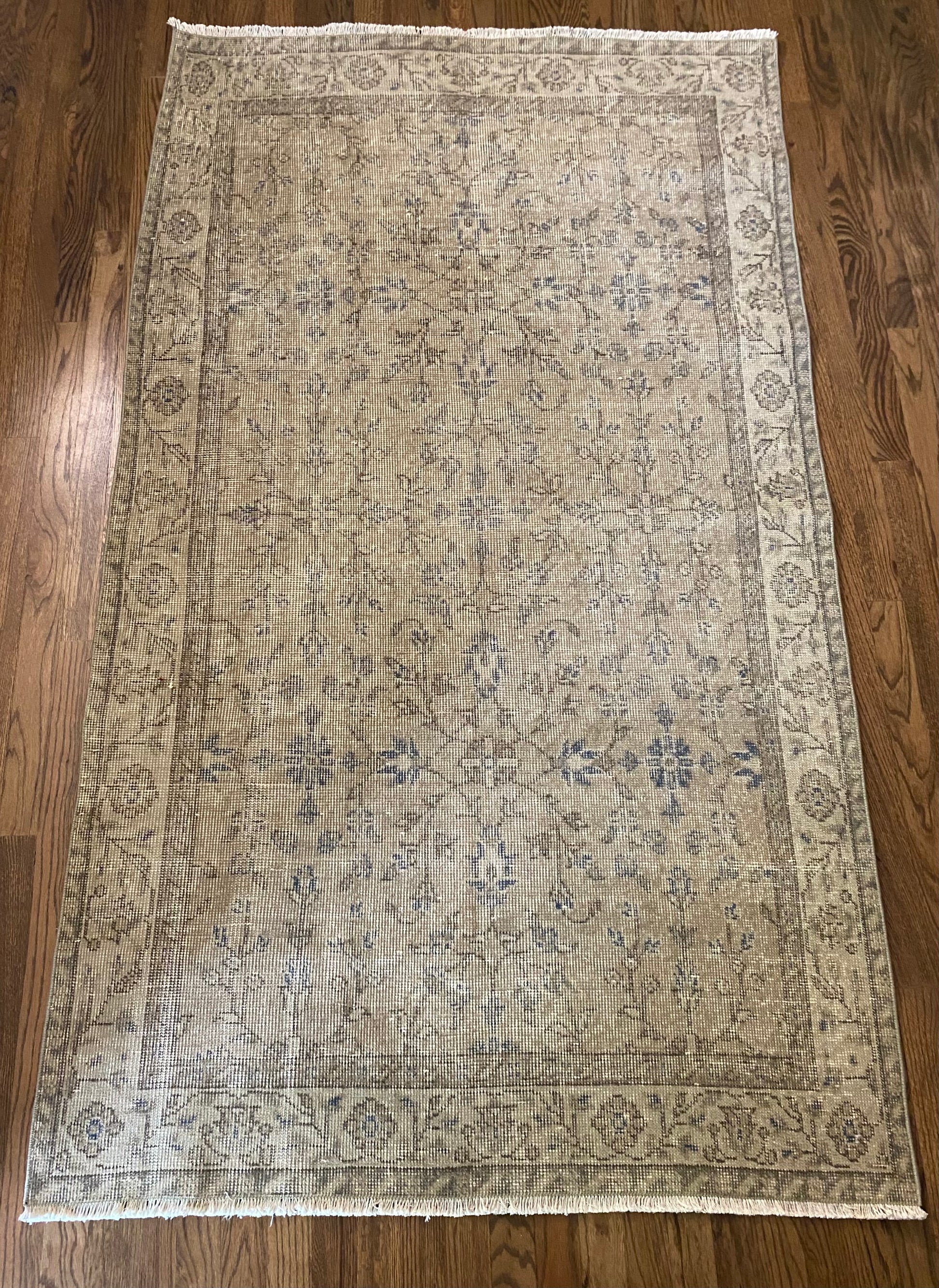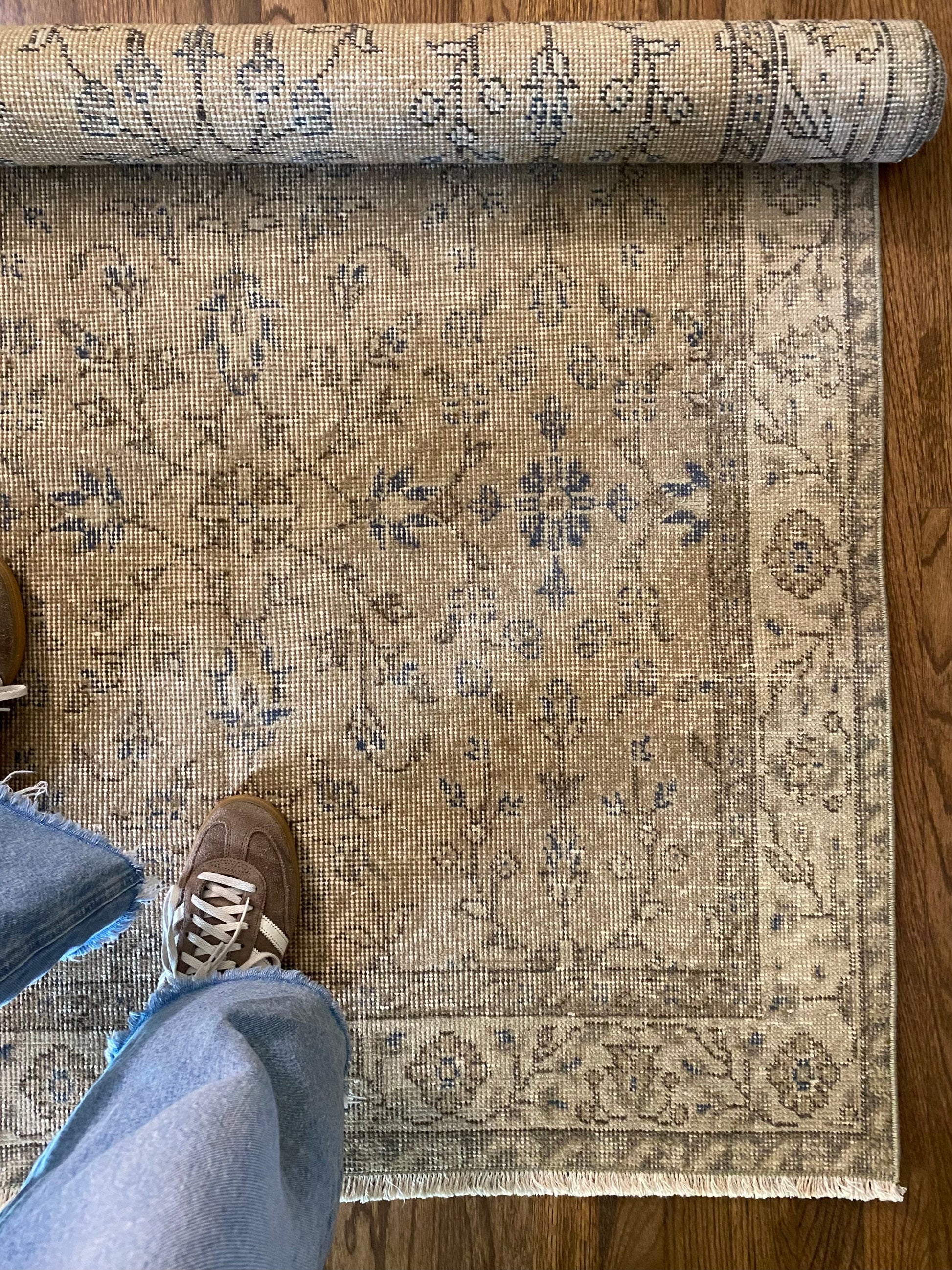 All of our rugs have been professionally cleaned prior to listing. We strive to deliver rugs that everyone loves, but please note that when you purchase from Two Sisters Rugs you are purchasing an item that is pre-owned and vintage by nature. Rugs might have areas of wear, minor repairs, or other unique characteristics, but we believe this is what makes them beautiful and one of a kind. Many rugs do not have perfect lines. All photographs are taken on an iPhone with no filter in natural light unless otherwise noted; colors may vary depending on the placement in your home. Colors may also vary depending on your phone or screen settings. If the area you are placing the rug has less natural light, the rug will appear darker in person. We aim to represent each rugs true colors and designs on the listing photos, but are happy to send additional photos upon request prior to purchase. High quality wool contains a substance called lanolin, which emits a metallic-y, but sweet and grassy scent. ALL SALES ARE FINAL.