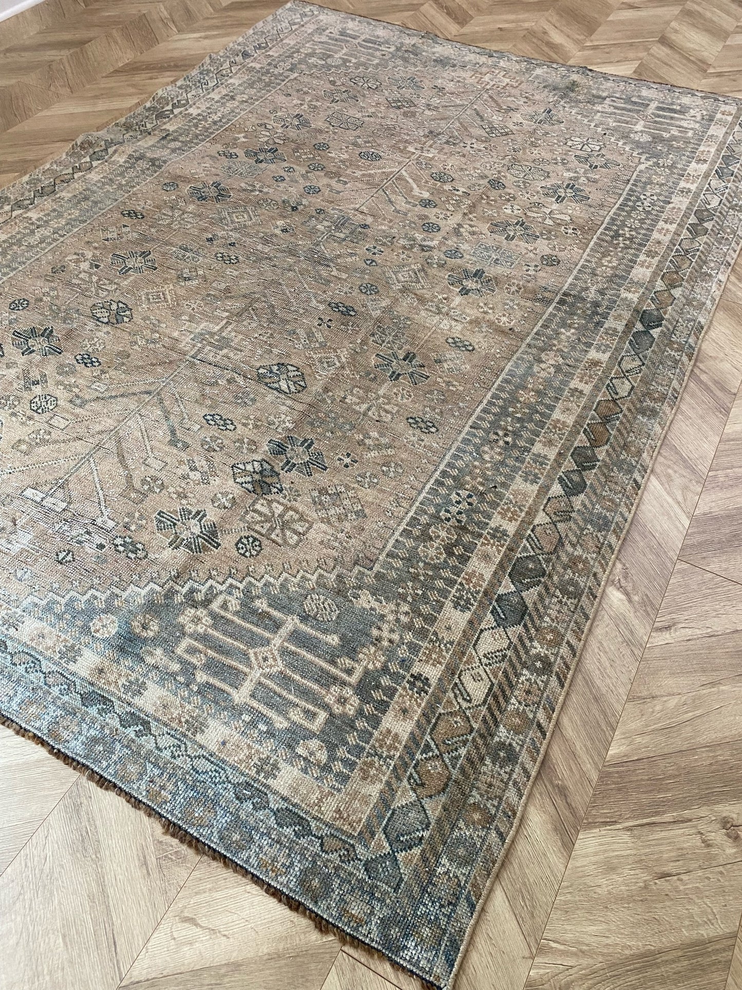 All of our rugs have been professionally cleaned prior to listing. These unique vintage rugs have normal wear related to their age. Some may have minor repairs. All photographs are taken in natural light; colors may vary depending on the placement in your home. Many rugs do not have perfect lines-we believe this adds to the authenticity of these hand-woven beauties. ALL SALES FINAL.