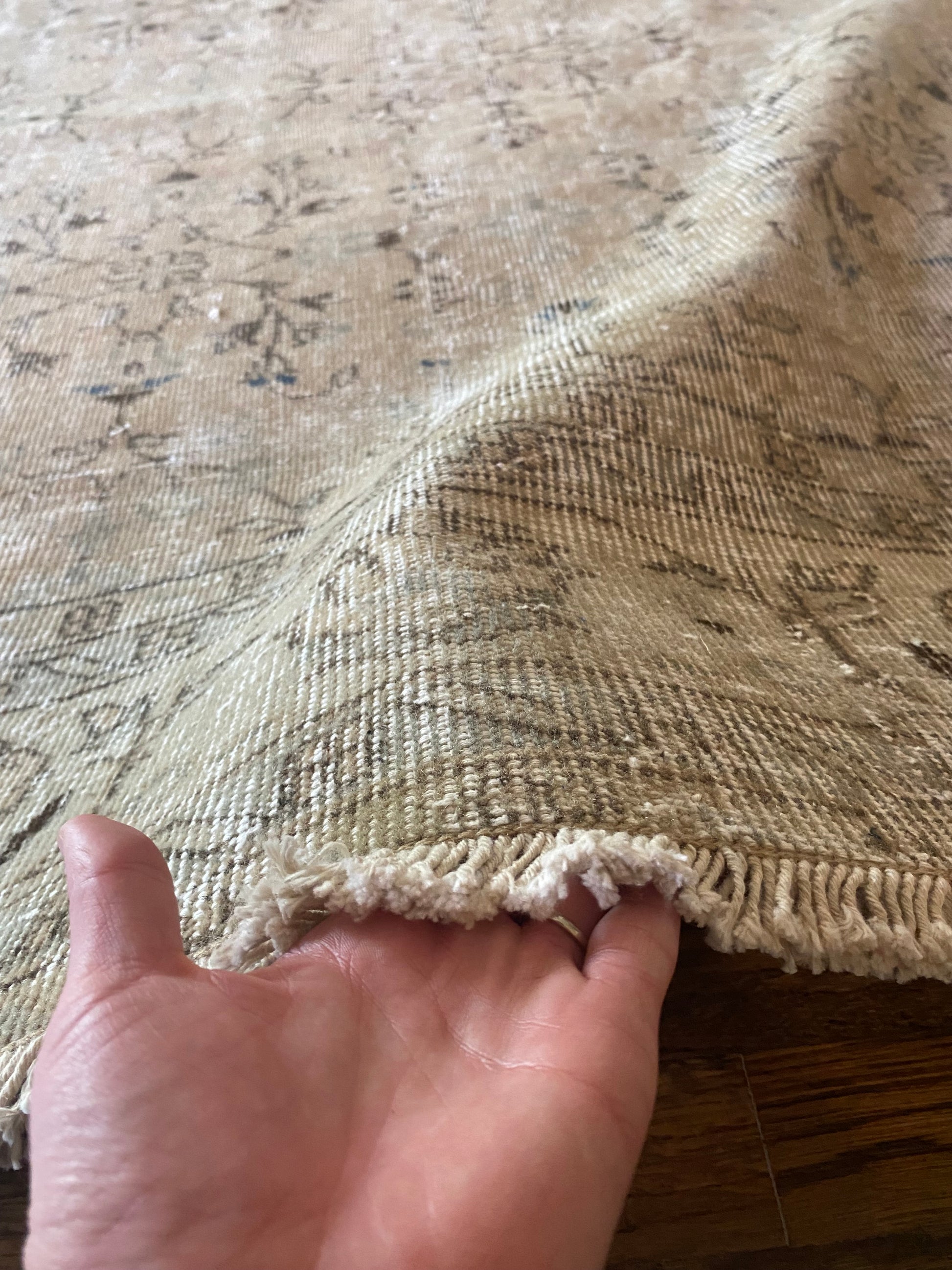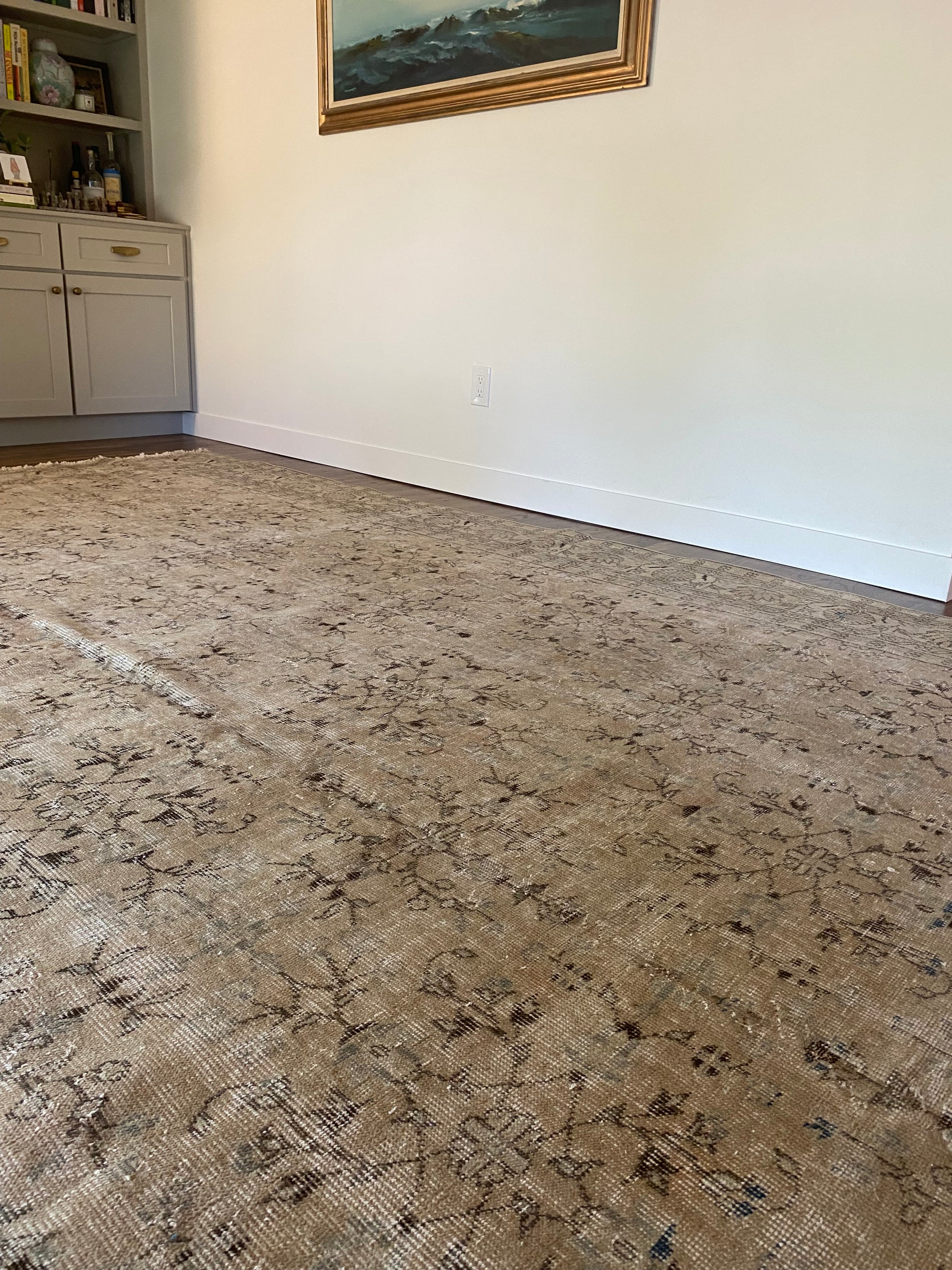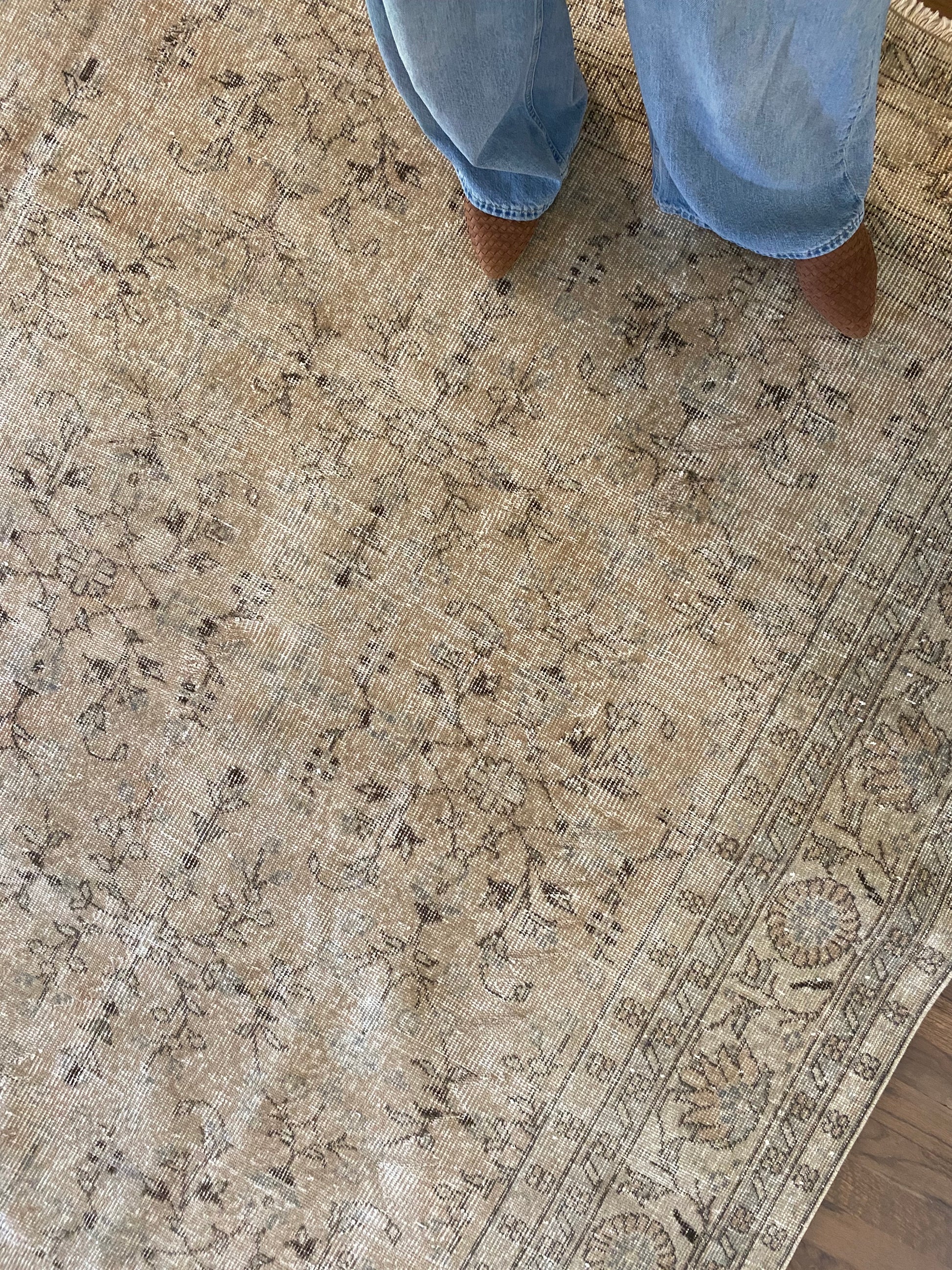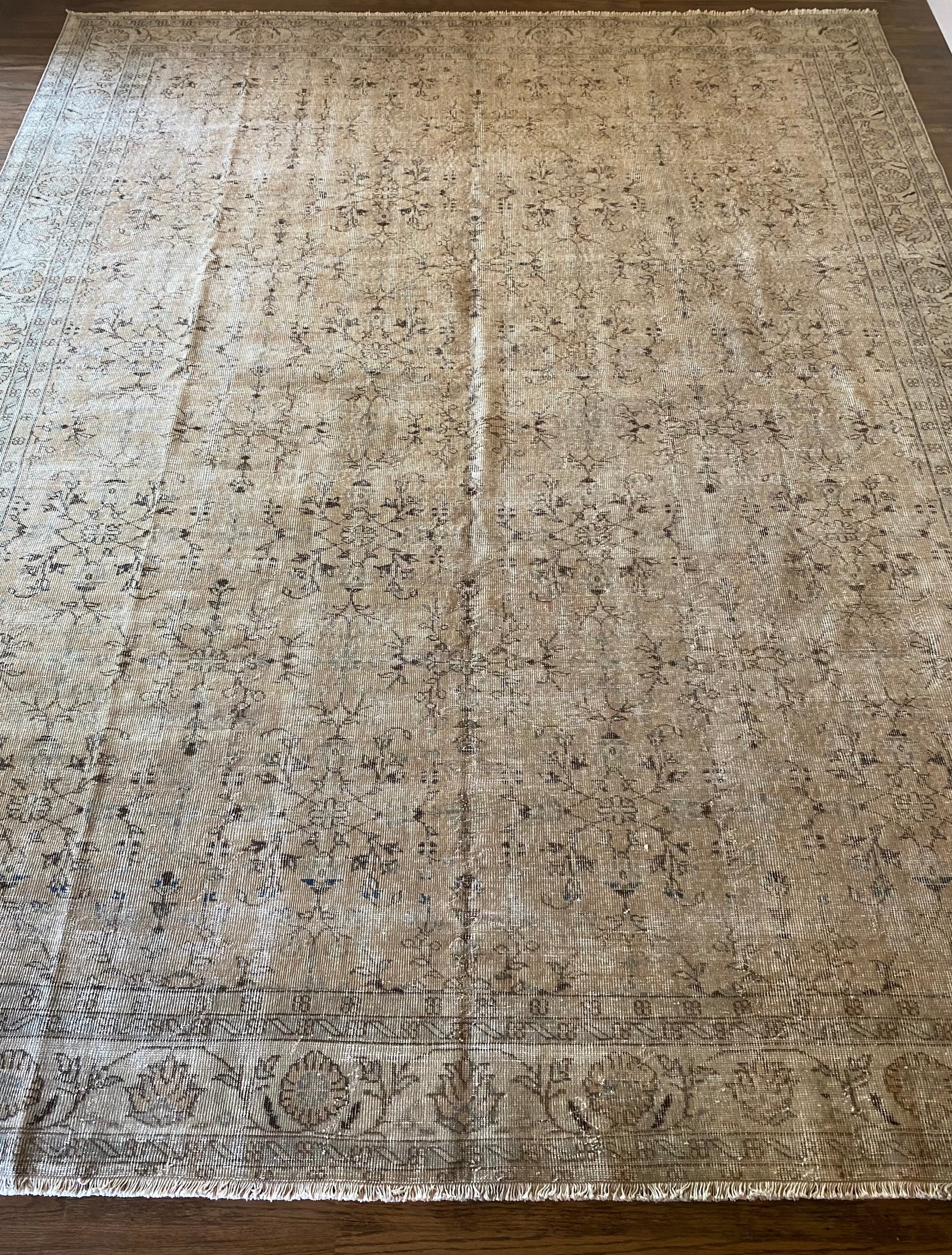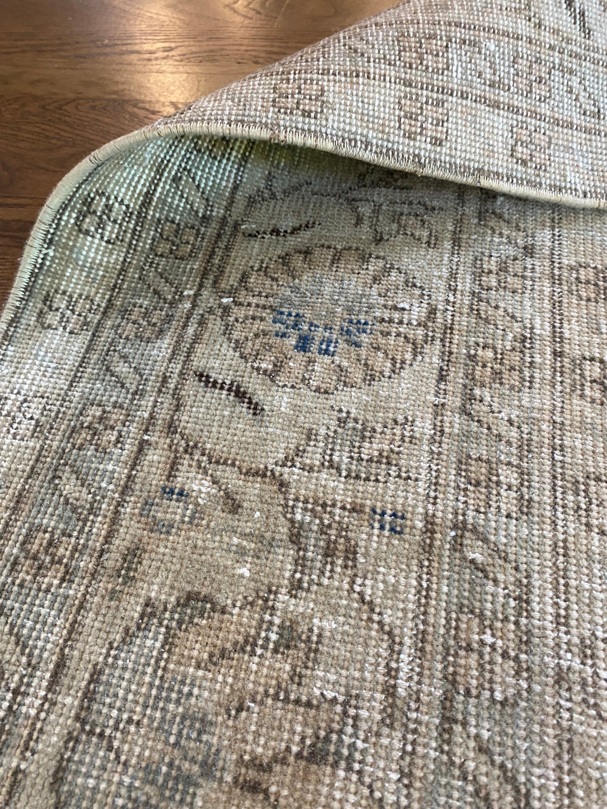 All of our rugs have been professionally cleaned prior to listing. We strive to deliver rugs that everyone loves, but please note that when you purchase from Two Sisters Rugs you are purchasing an item that is pre-owned and vintage by nature. Rugs might have areas of wear, minor repairs, or other unique characteristics, but we believe this is what makes them beautiful and one of a kind. Many rugs do not have perfect lines. All photographs are taken on an iPhone with no filter in natural light unless otherwise noted; colors may vary depending on the placement in your home. Colors may also vary depending on your phone or screen settings. If the area you are placing the rug has less natural light, the rug will appear darker in person. We aim to represent each rugs true colors and designs on the listing photos, but are happy to send additional photos upon request prior to purchase. High quality wool contains a substance called lanolin, which emits a metallic-y, but sweet and grassy scent. ALL SALES ARE FINAL.