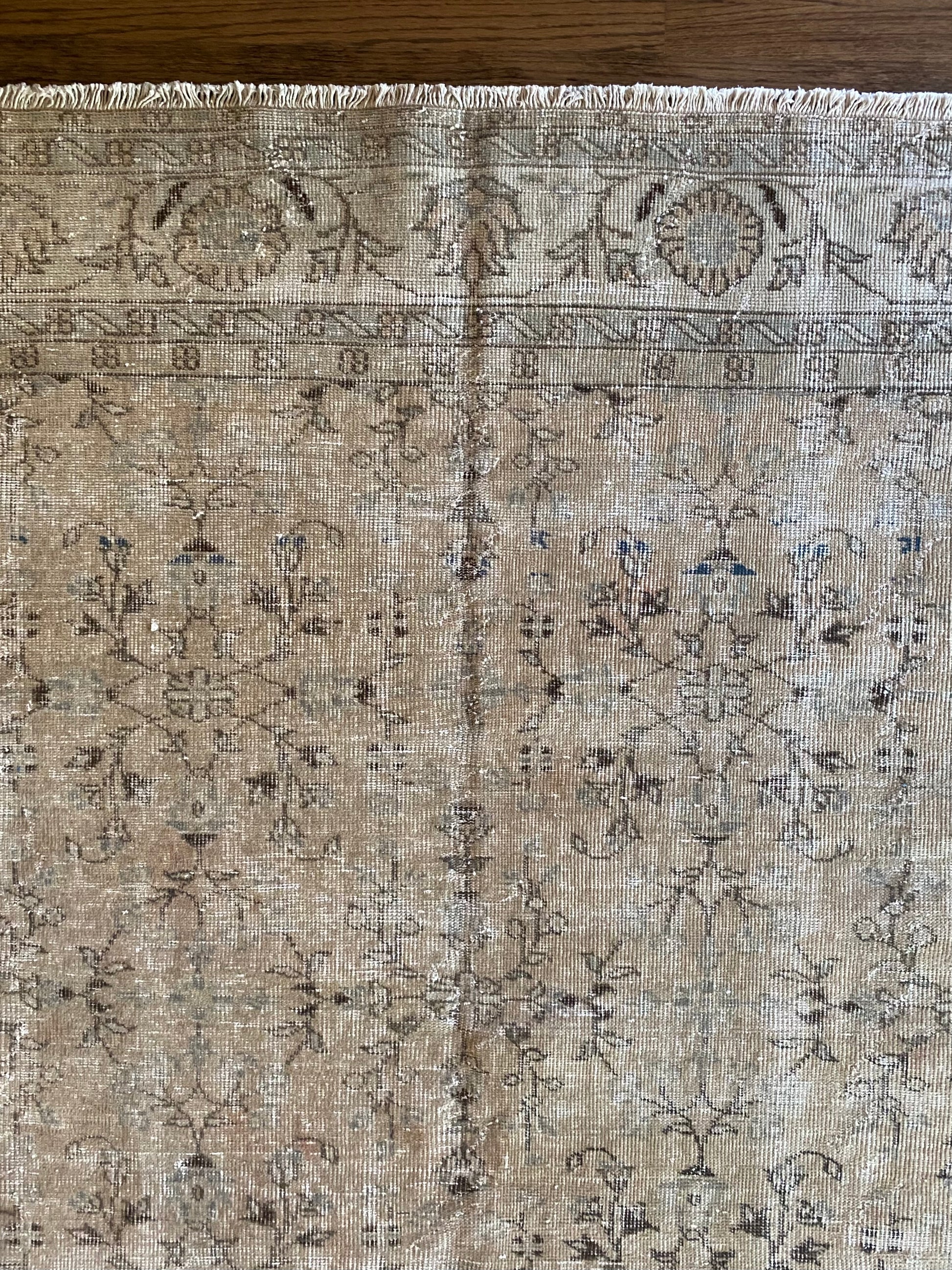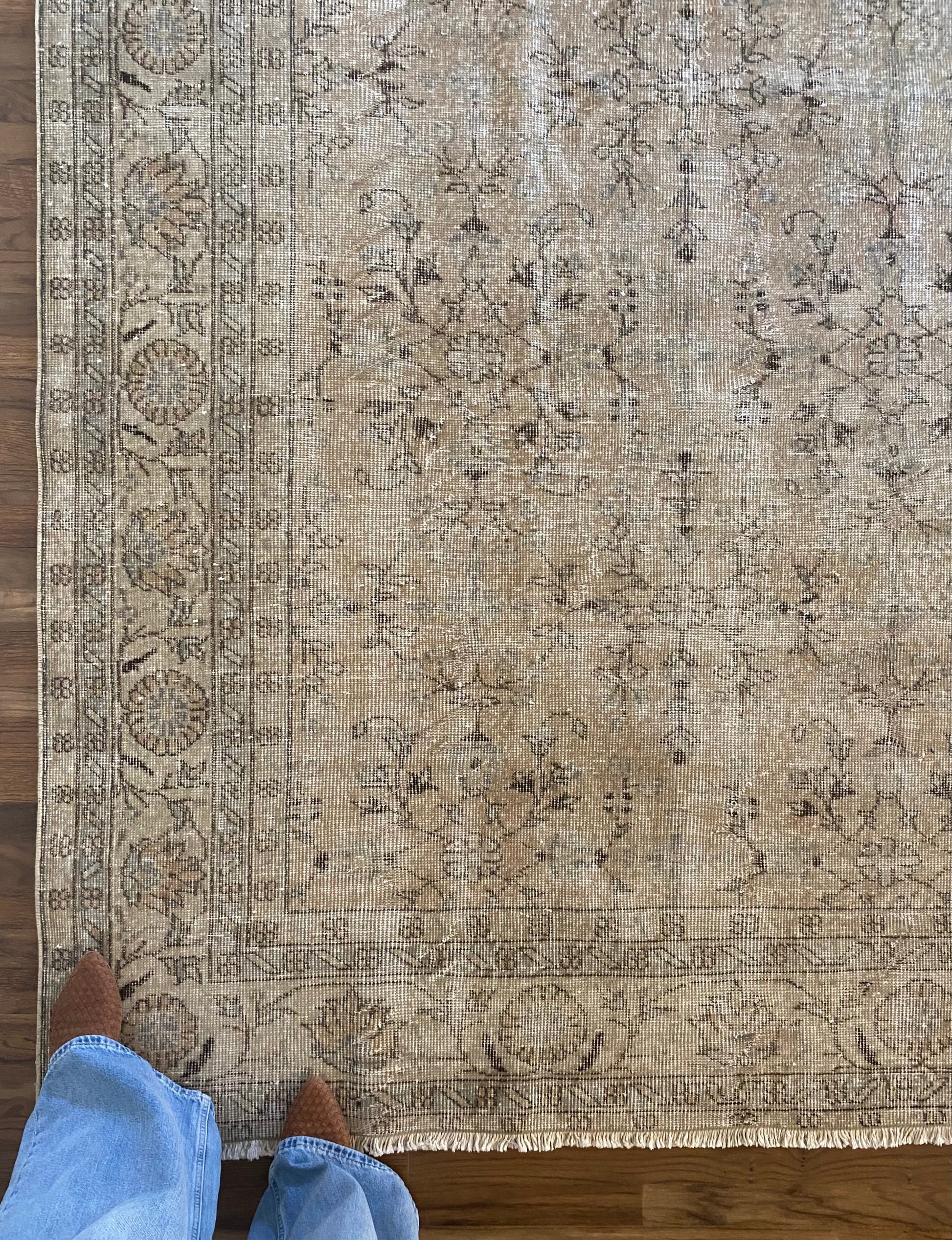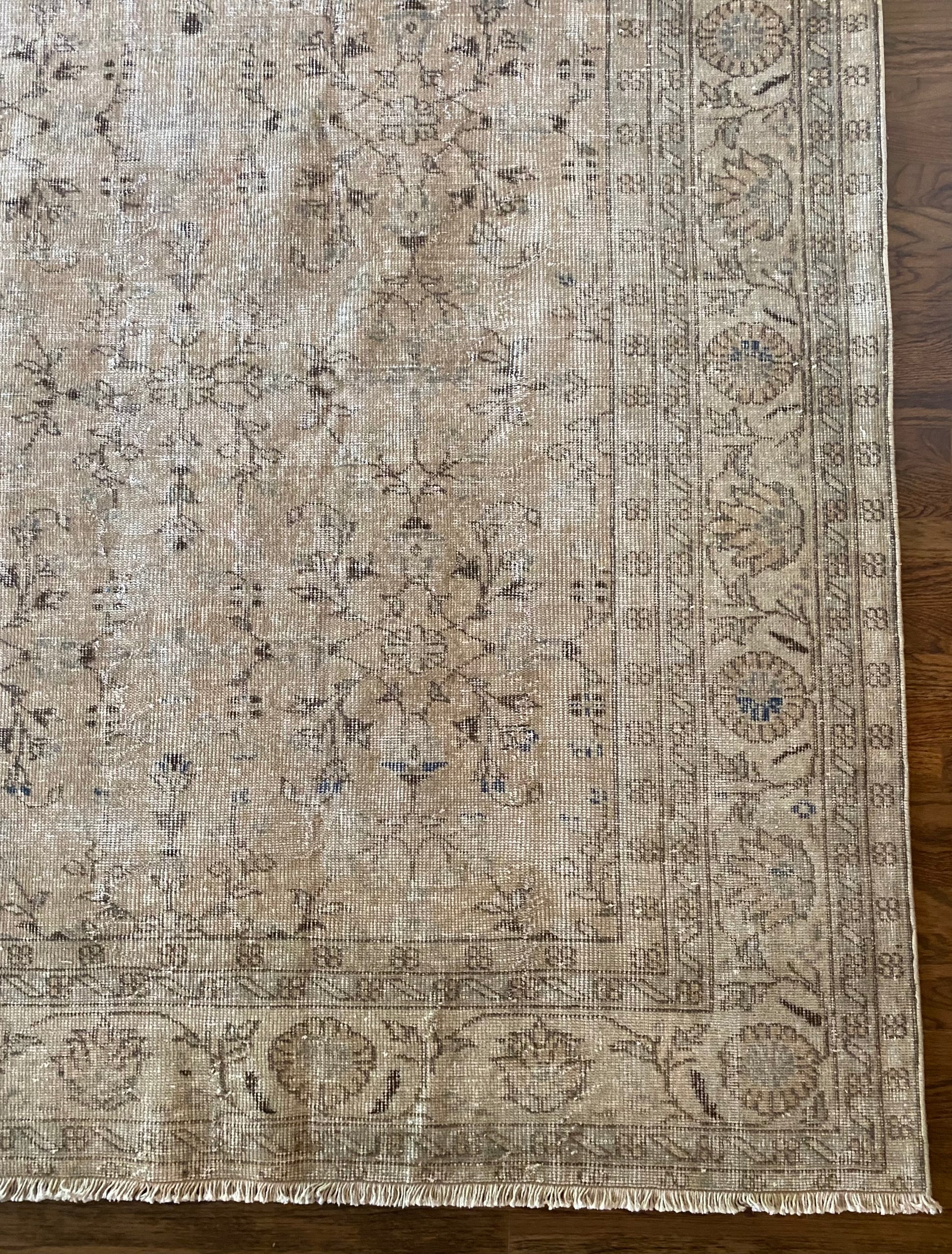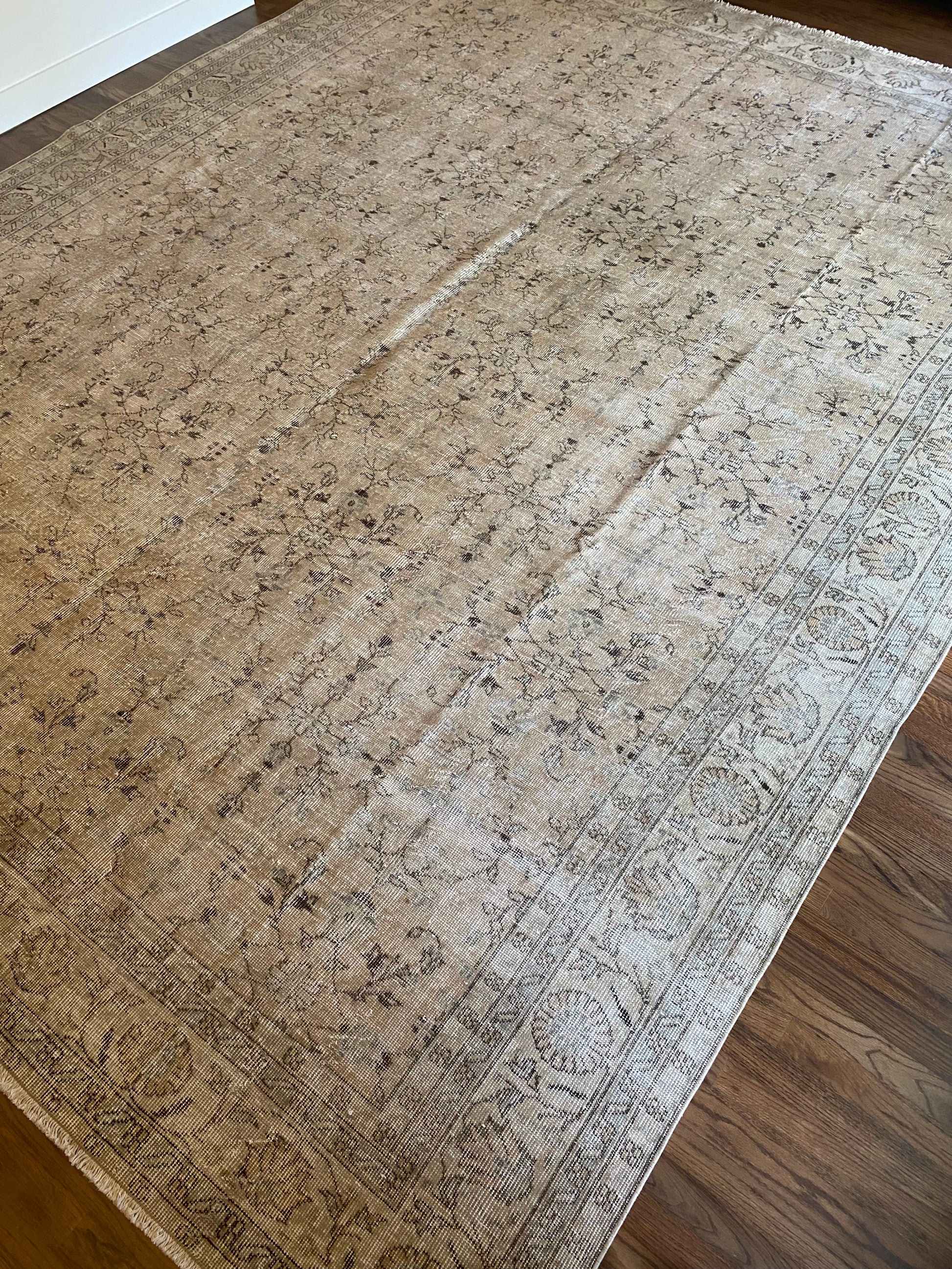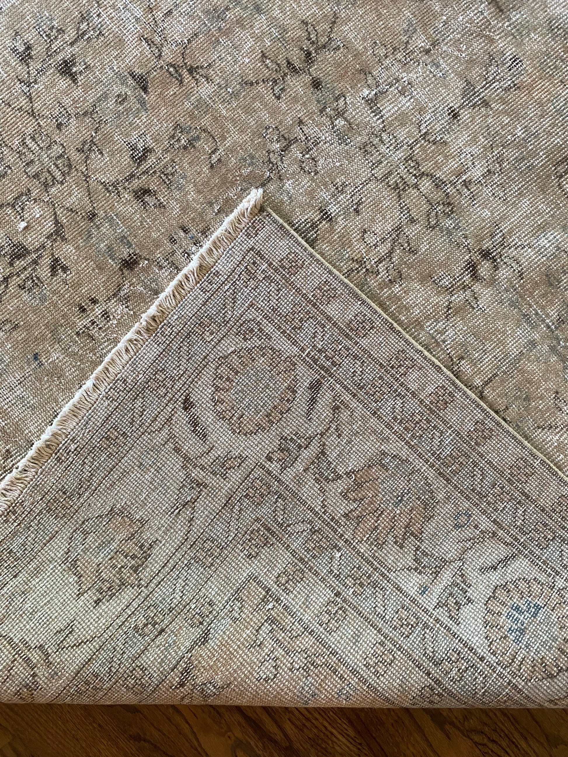 All of our rugs have been professionally cleaned prior to listing. We strive to deliver rugs that everyone loves, but please note that when you purchase from Two Sisters Rugs you are purchasing an item that is pre-owned and vintage by nature. Rugs might have areas of wear, minor repairs, or other unique characteristics, but we believe this is what makes them beautiful and one of a kind. Many rugs do not have perfect lines. All photographs are taken on an iPhone with no filter in natural light unless otherwise noted; colors may vary depending on the placement in your home. Colors may also vary depending on your phone or screen settings. If the area you are placing the rug has less natural light, the rug will appear darker in person. We aim to represent each rugs true colors and designs on the listing photos, but are happy to send additional photos upon request prior to purchase. High quality wool contains a substance called lanolin, which emits a metallic-y, but sweet and grassy scent. ALL SALES ARE FINAL.