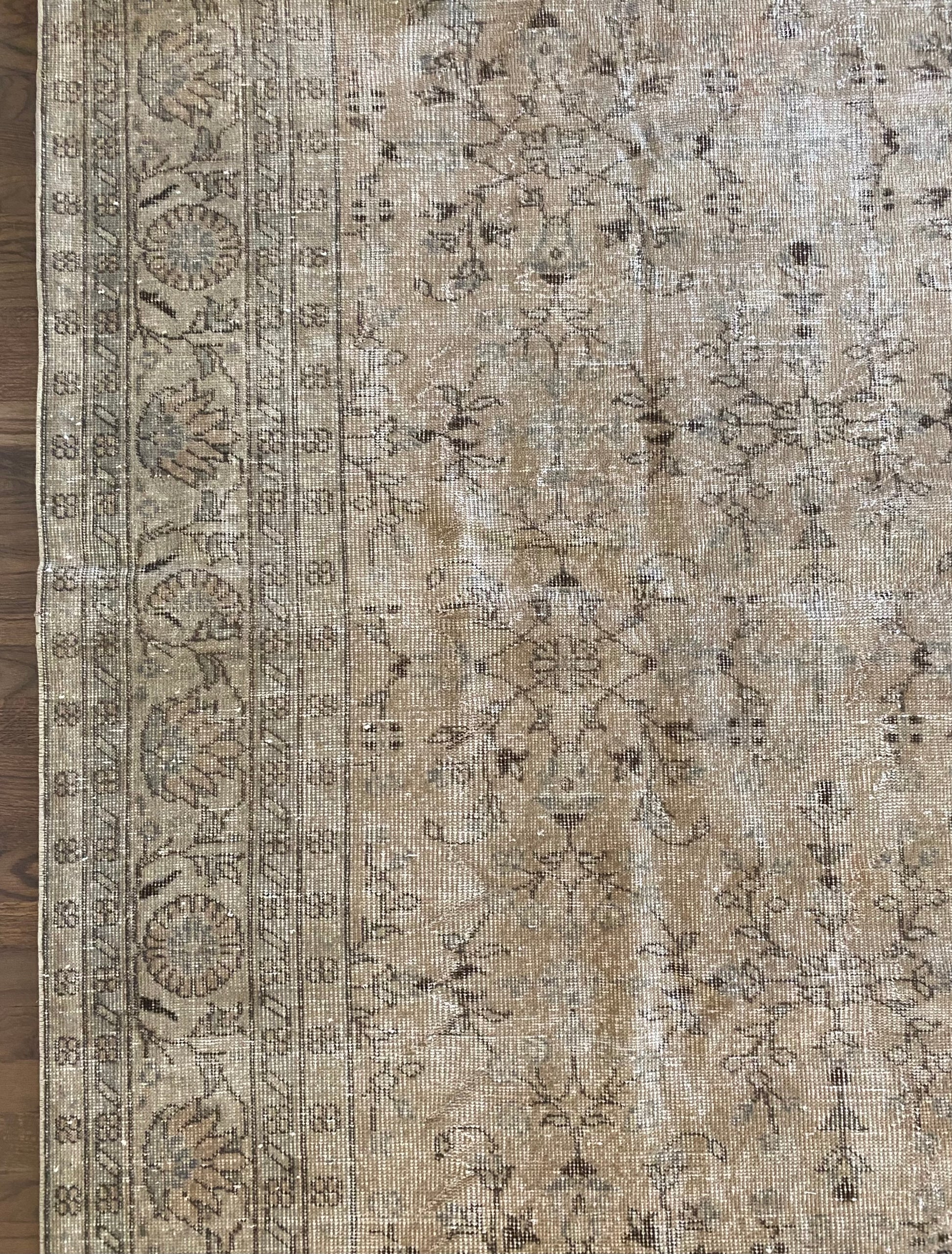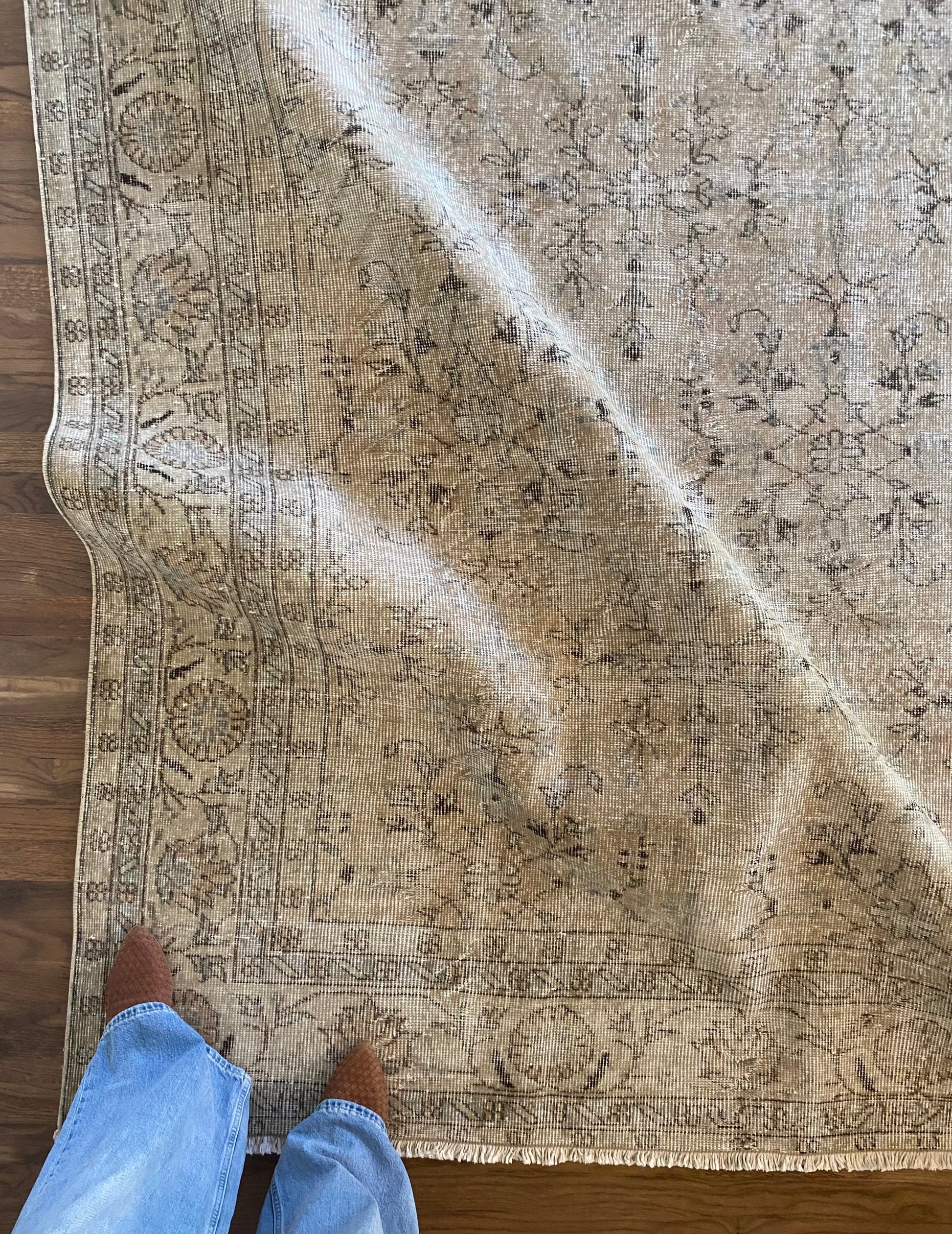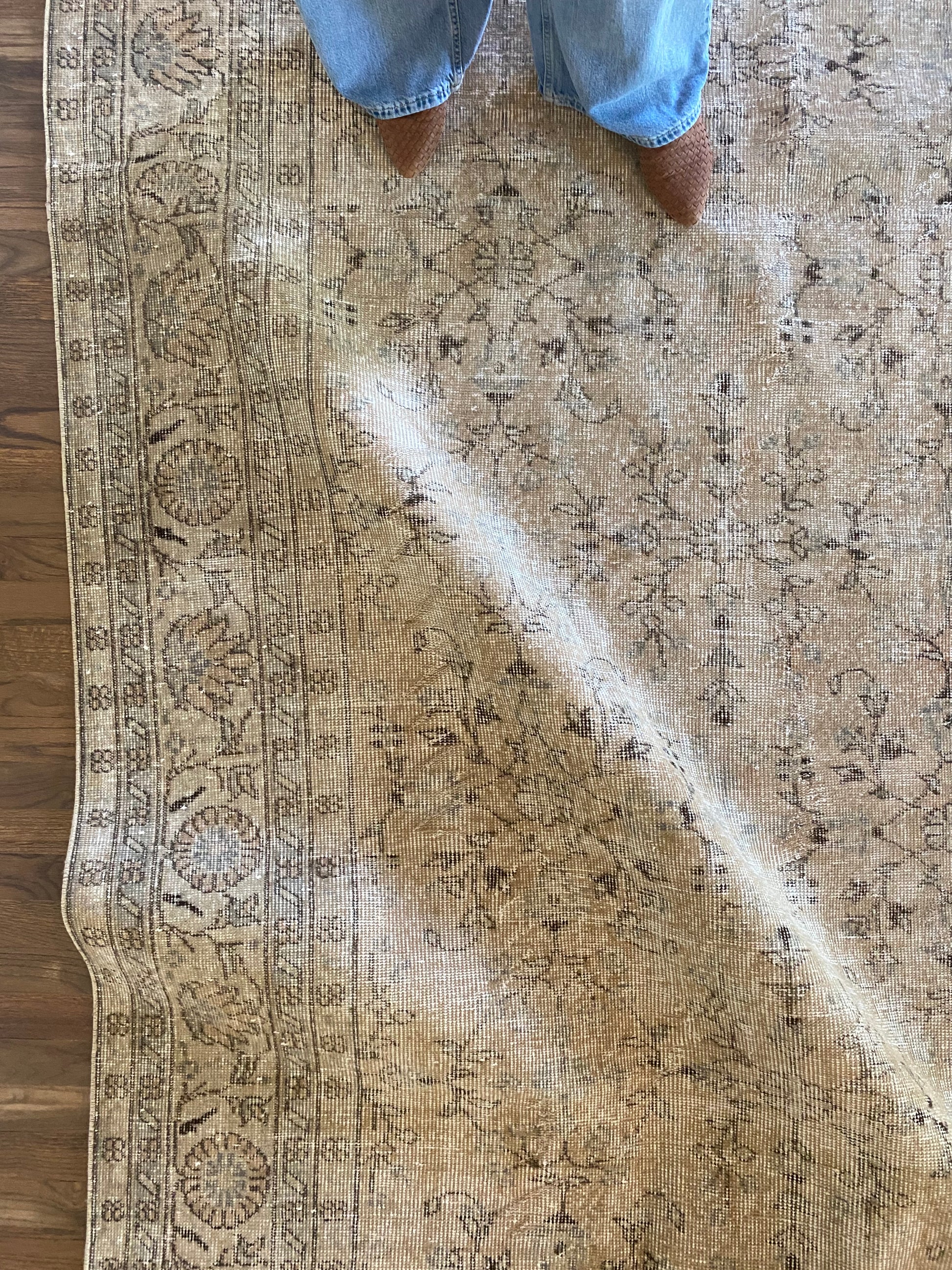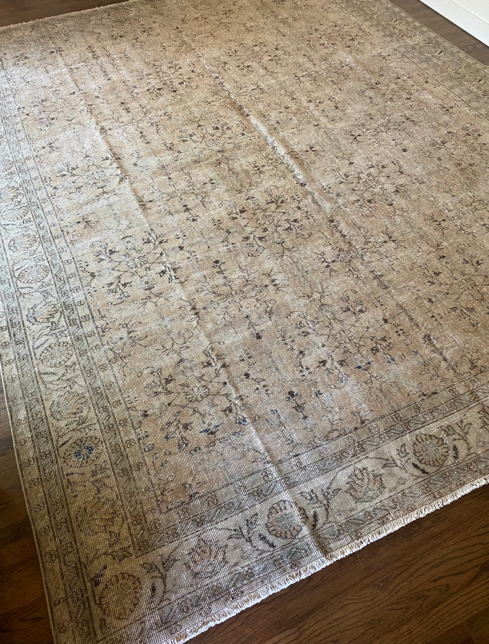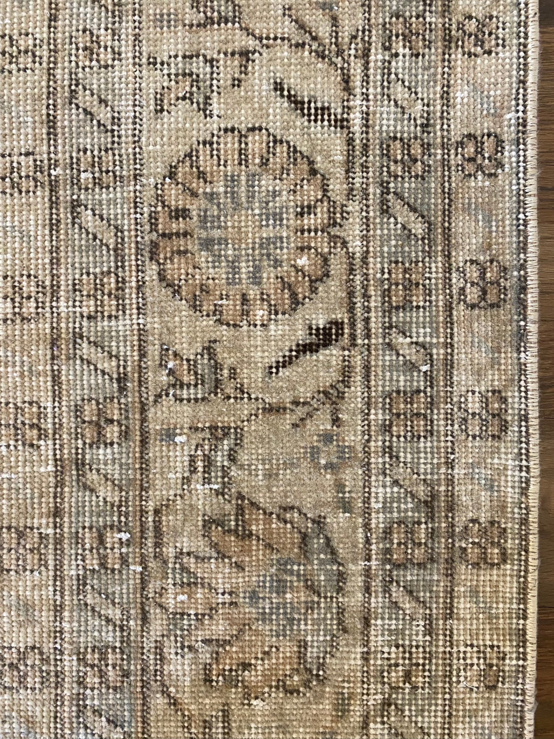 All of our rugs have been professionally cleaned prior to listing. We strive to deliver rugs that everyone loves, but please note that when you purchase from Two Sisters Rugs you are purchasing an item that is pre-owned and vintage by nature. Rugs might have areas of wear, minor repairs, or other unique characteristics, but we believe this is what makes them beautiful and one of a kind. Many rugs do not have perfect lines. All photographs are taken on an iPhone with no filter in natural light unless otherwise noted; colors may vary depending on the placement in your home. Colors may also vary depending on your phone or screen settings. If the area you are placing the rug has less natural light, the rug will appear darker in person. We aim to represent each rugs true colors and designs on the listing photos, but are happy to send additional photos upon request prior to purchase. High quality wool contains a substance called lanolin, which emits a metallic-y, but sweet and grassy scent. ALL SALES ARE FINAL.