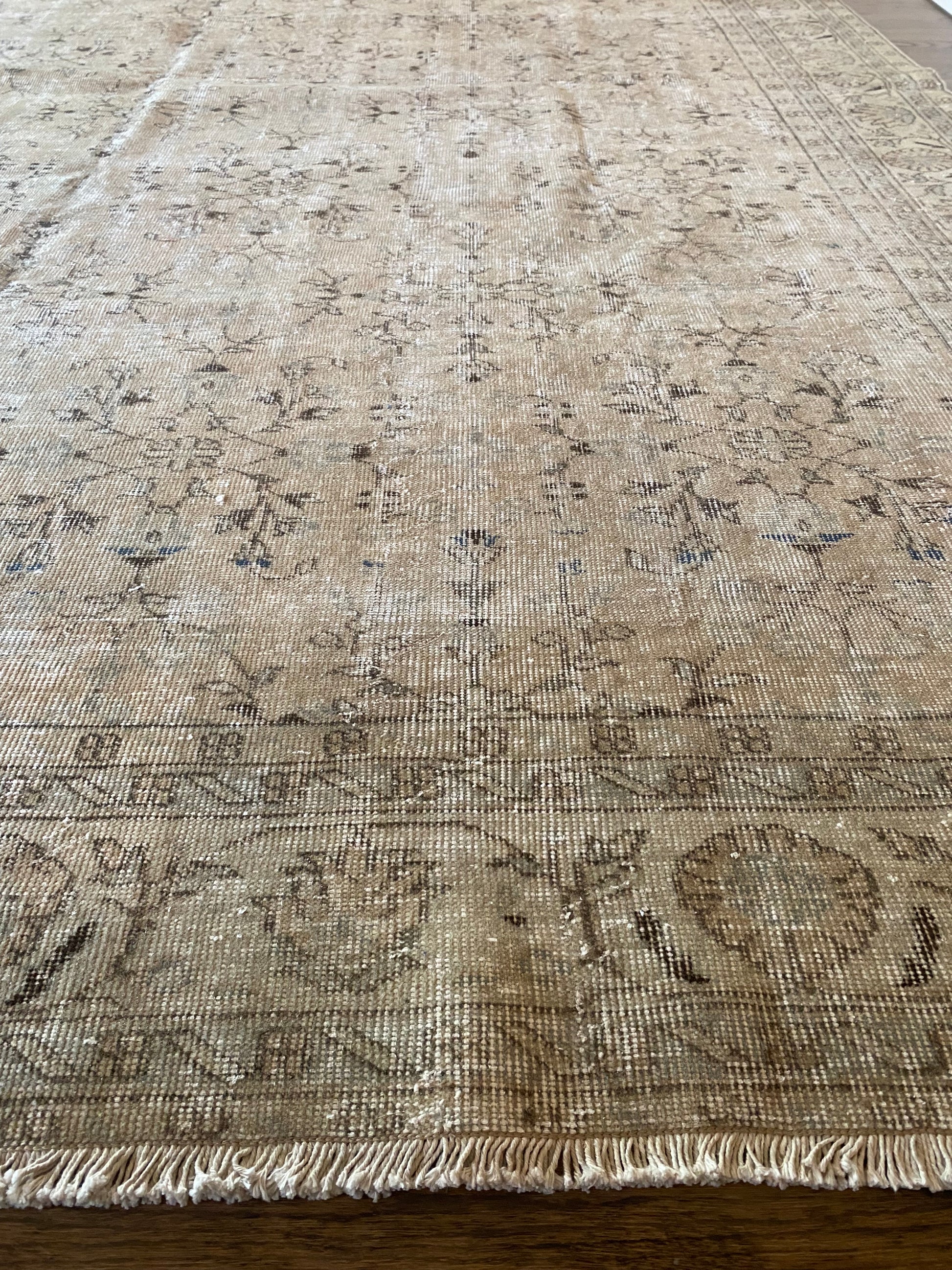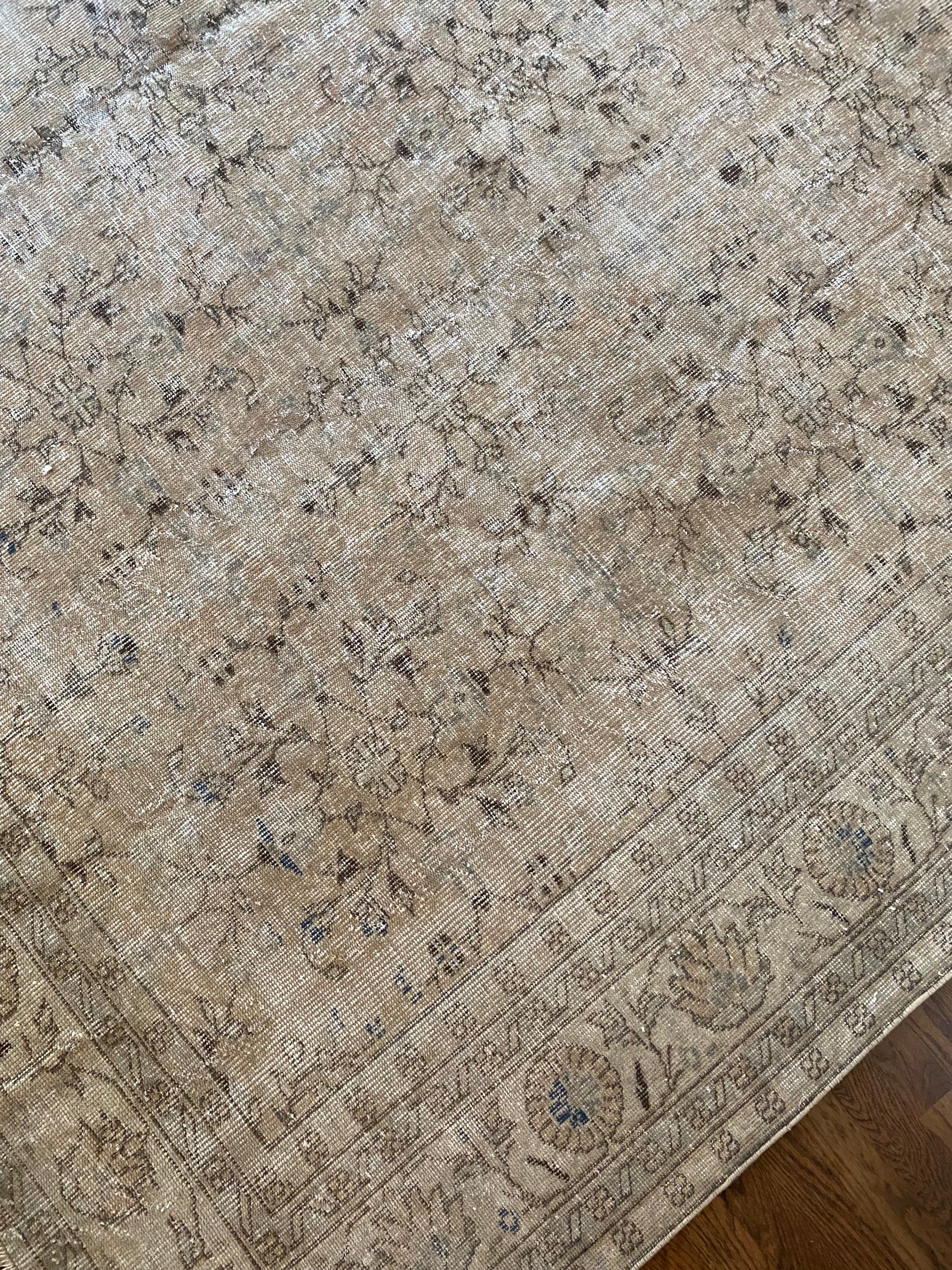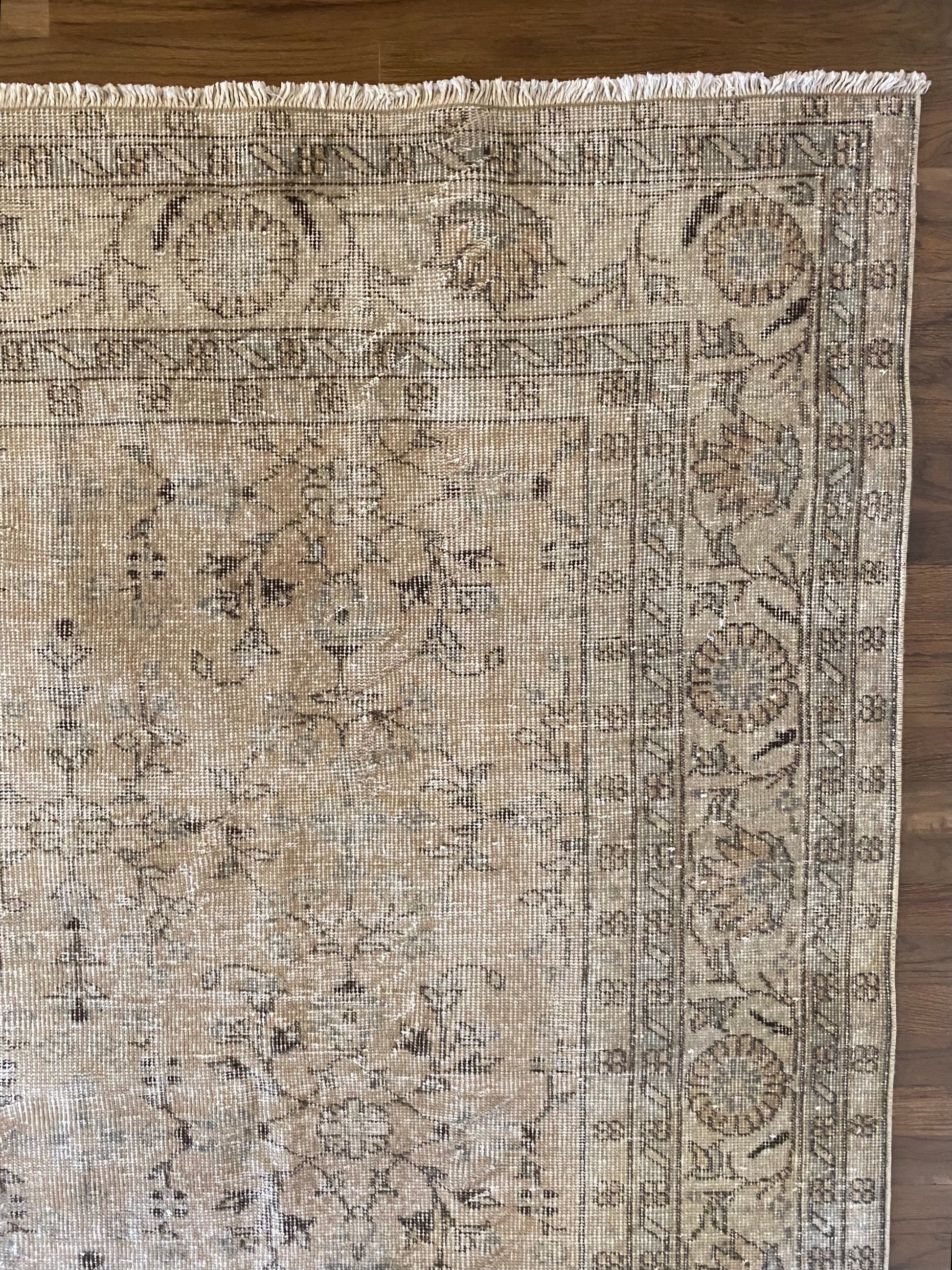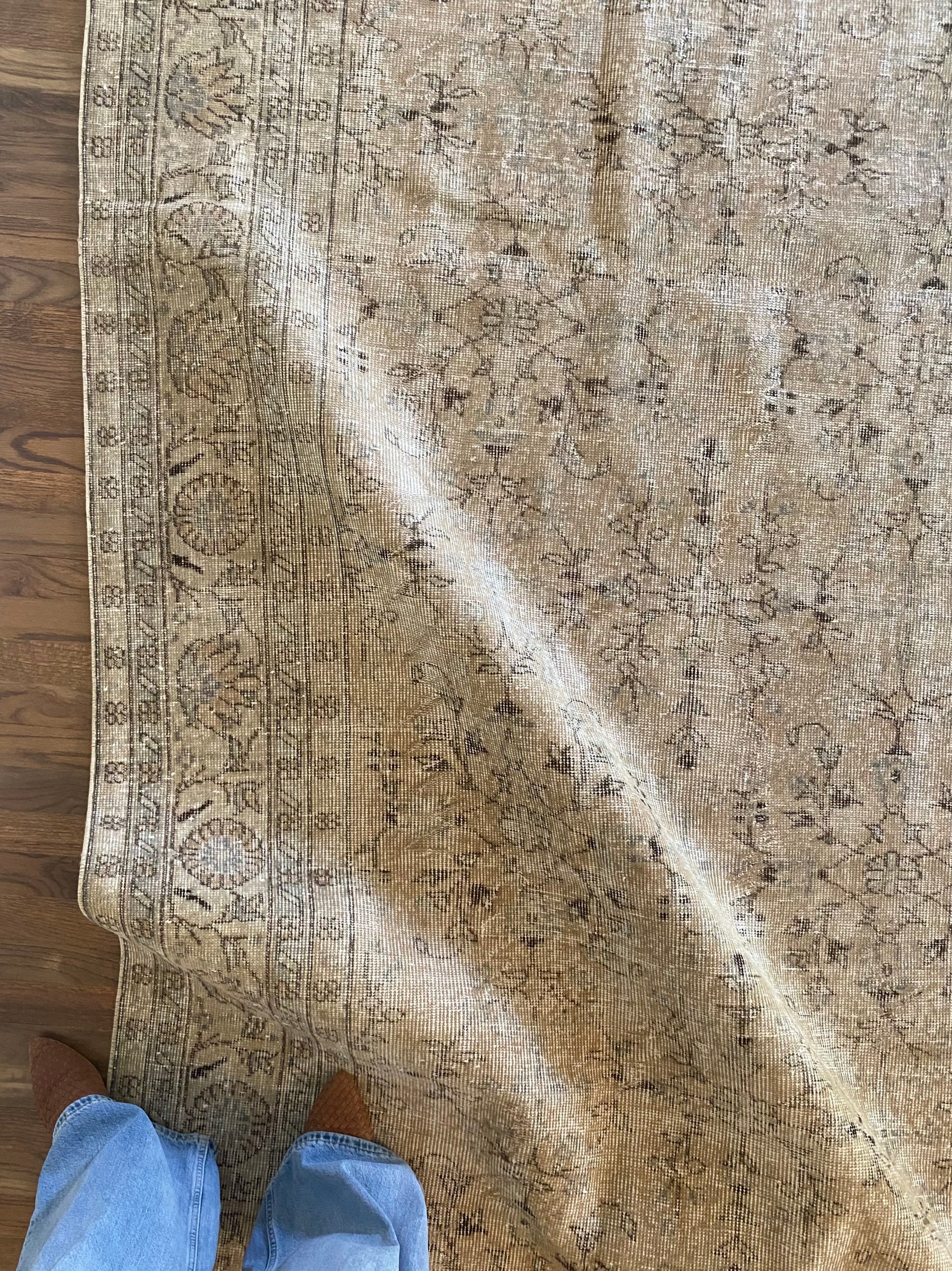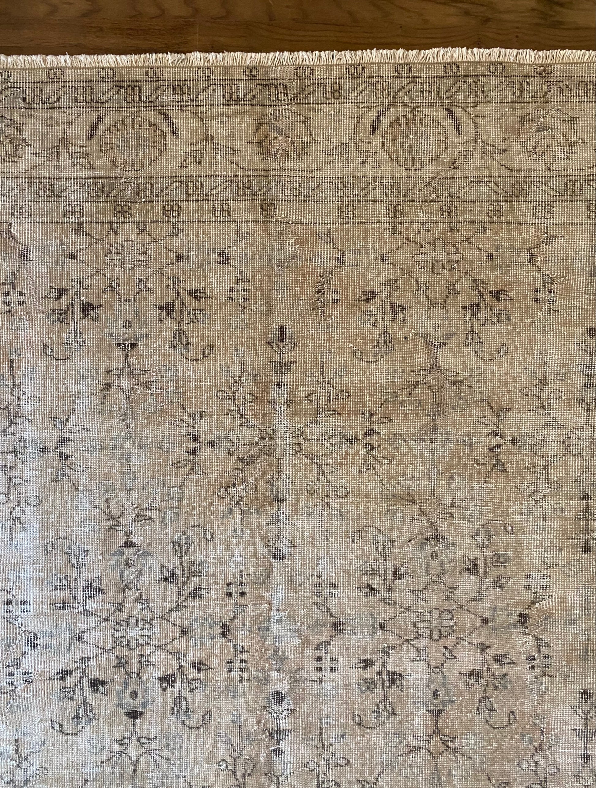 All of our rugs have been professionally cleaned prior to listing. We strive to deliver rugs that everyone loves, but please note that when you purchase from Two Sisters Rugs you are purchasing an item that is pre-owned and vintage by nature. Rugs might have areas of wear, minor repairs, or other unique characteristics, but we believe this is what makes them beautiful and one of a kind. Many rugs do not have perfect lines. All photographs are taken on an iPhone with no filter in natural light unless otherwise noted; colors may vary depending on the placement in your home. Colors may also vary depending on your phone or screen settings. If the area you are placing the rug has less natural light, the rug will appear darker in person. We aim to represent each rugs true colors and designs on the listing photos, but are happy to send additional photos upon request prior to purchase. High quality wool contains a substance called lanolin, which emits a metallic-y, but sweet and grassy scent. ALL SALES ARE FINAL.