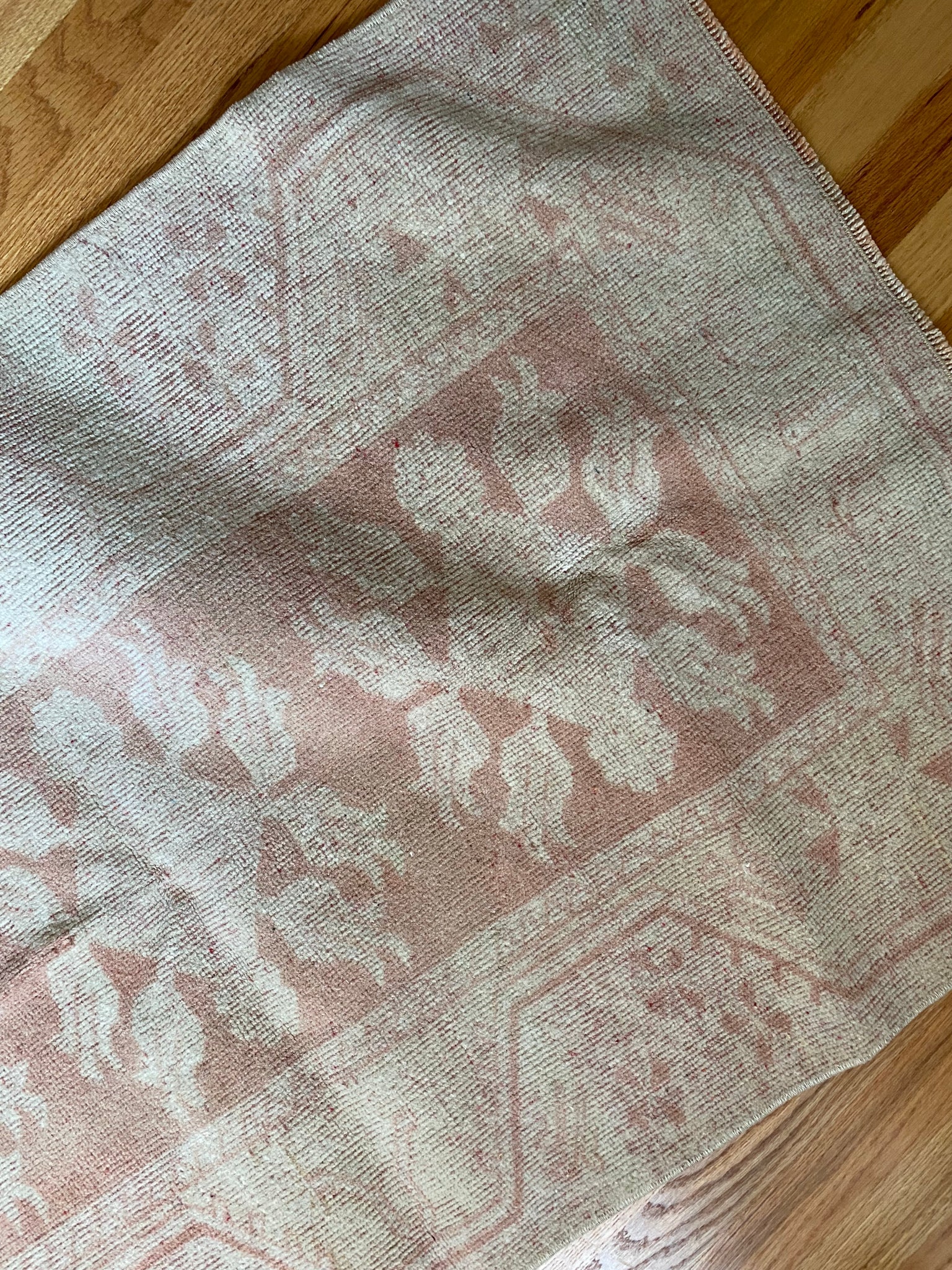 All of our rugs have been professionally cleaned prior to listing. These unique vintage rugs have normal wear related to their age. Some may have minor repairs. All photographs are taken in natural light; colors may vary depending on the placement in your home. Many rugs do not have perfect lines-we believe this adds to the authenticity of these hand-woven beauties. High quality wool contains a substance called lanolin, which emits a metallic-y, but sweet and grassy scent. ALL SALES FINAL.