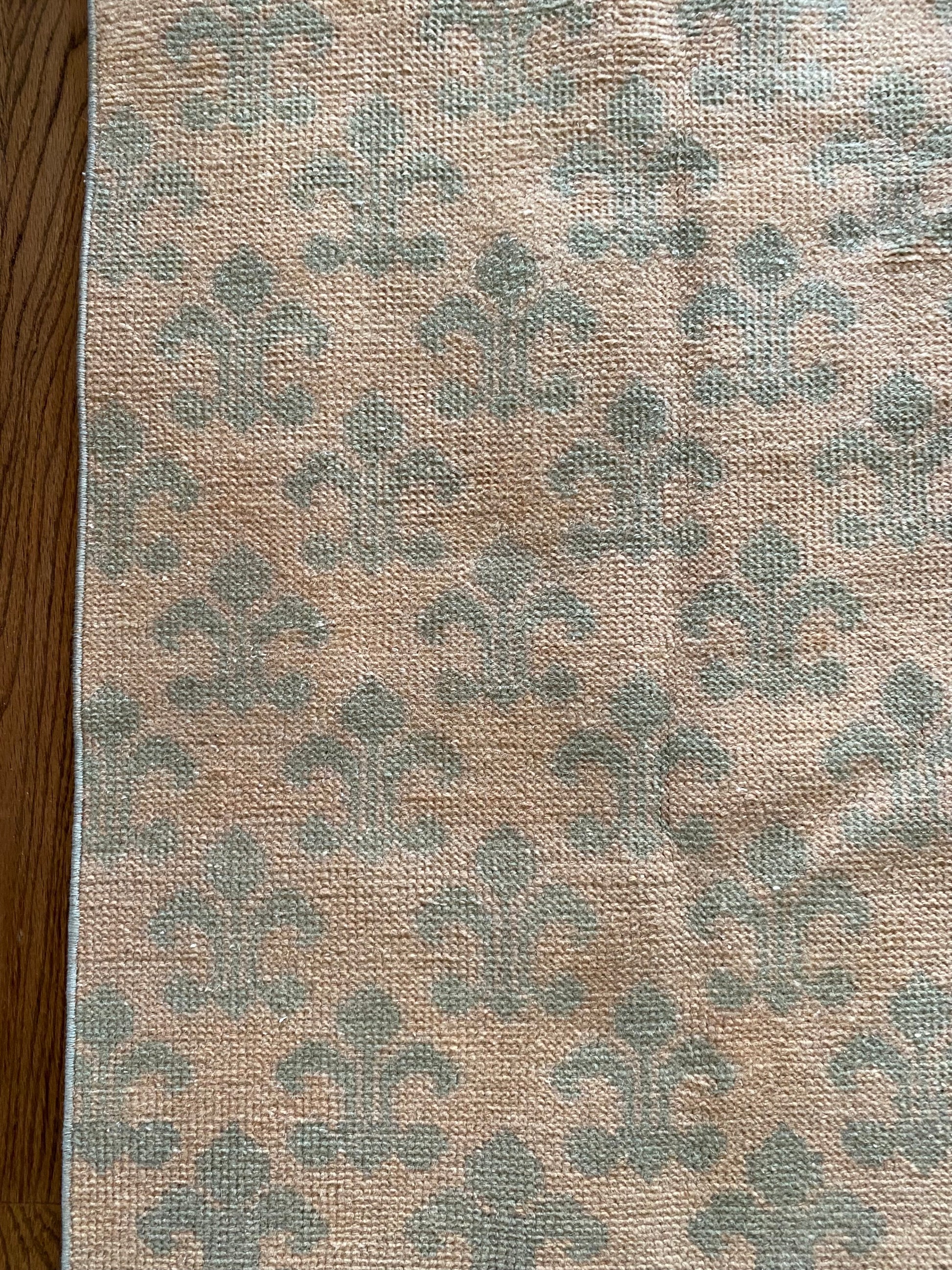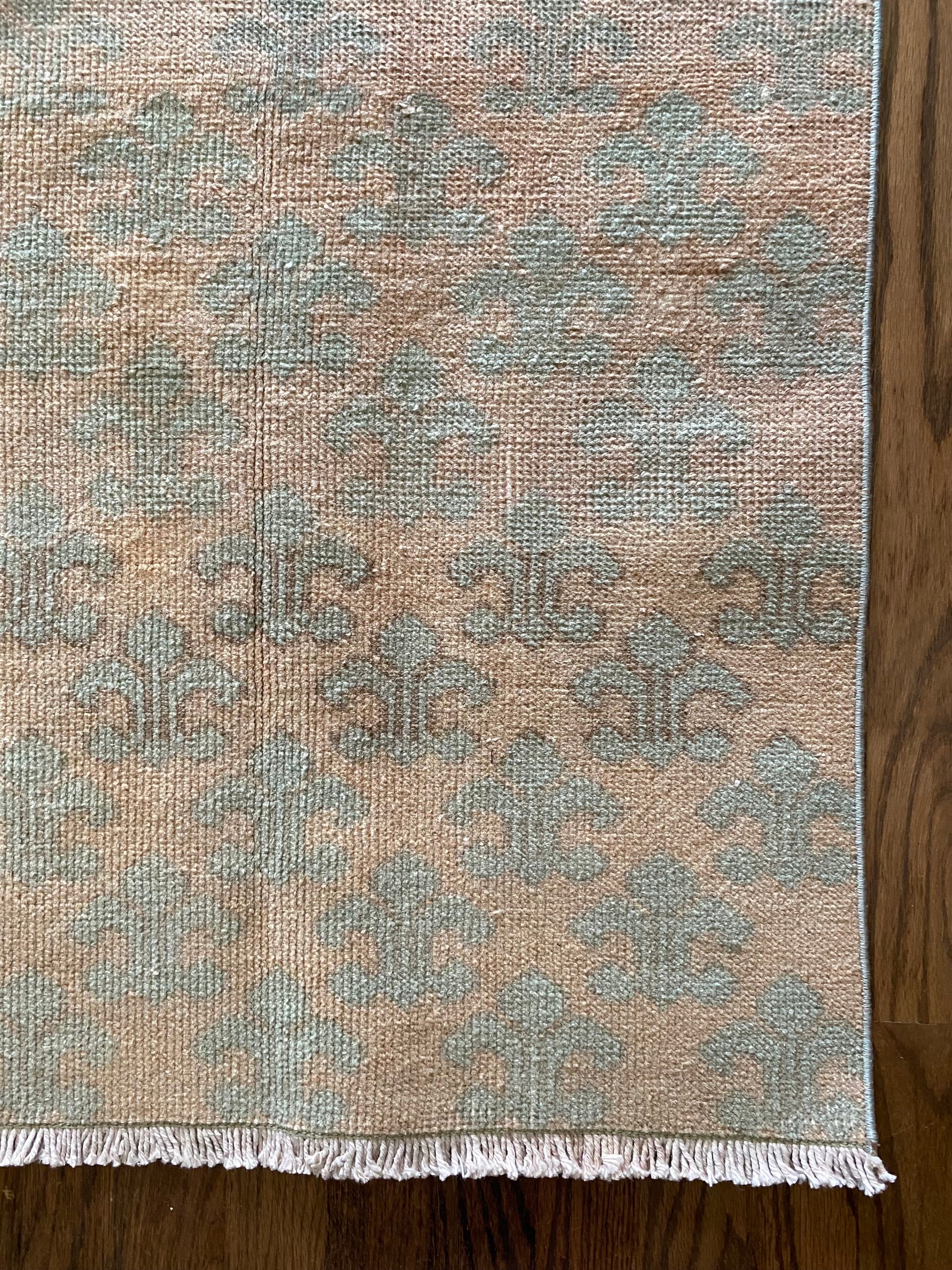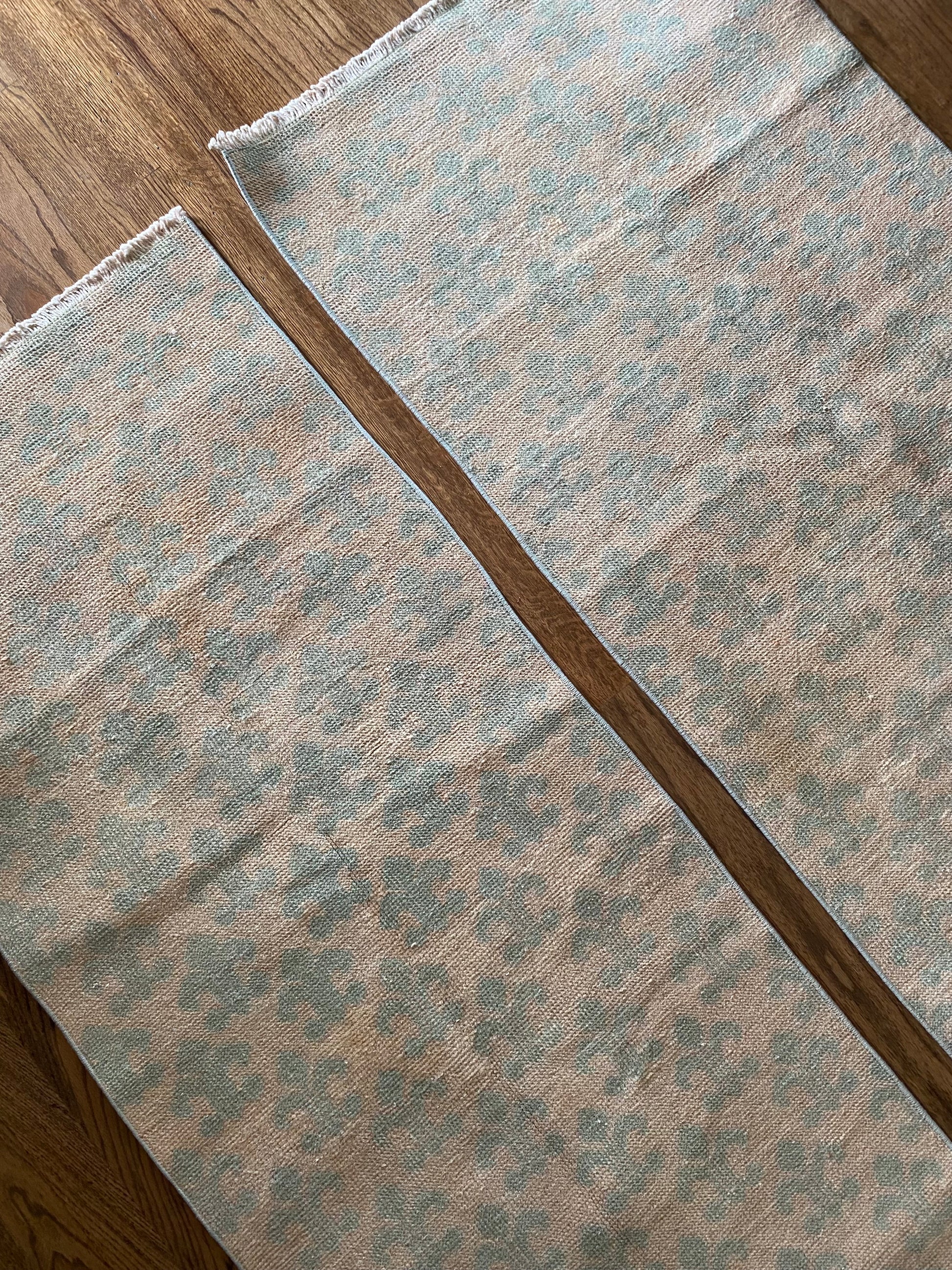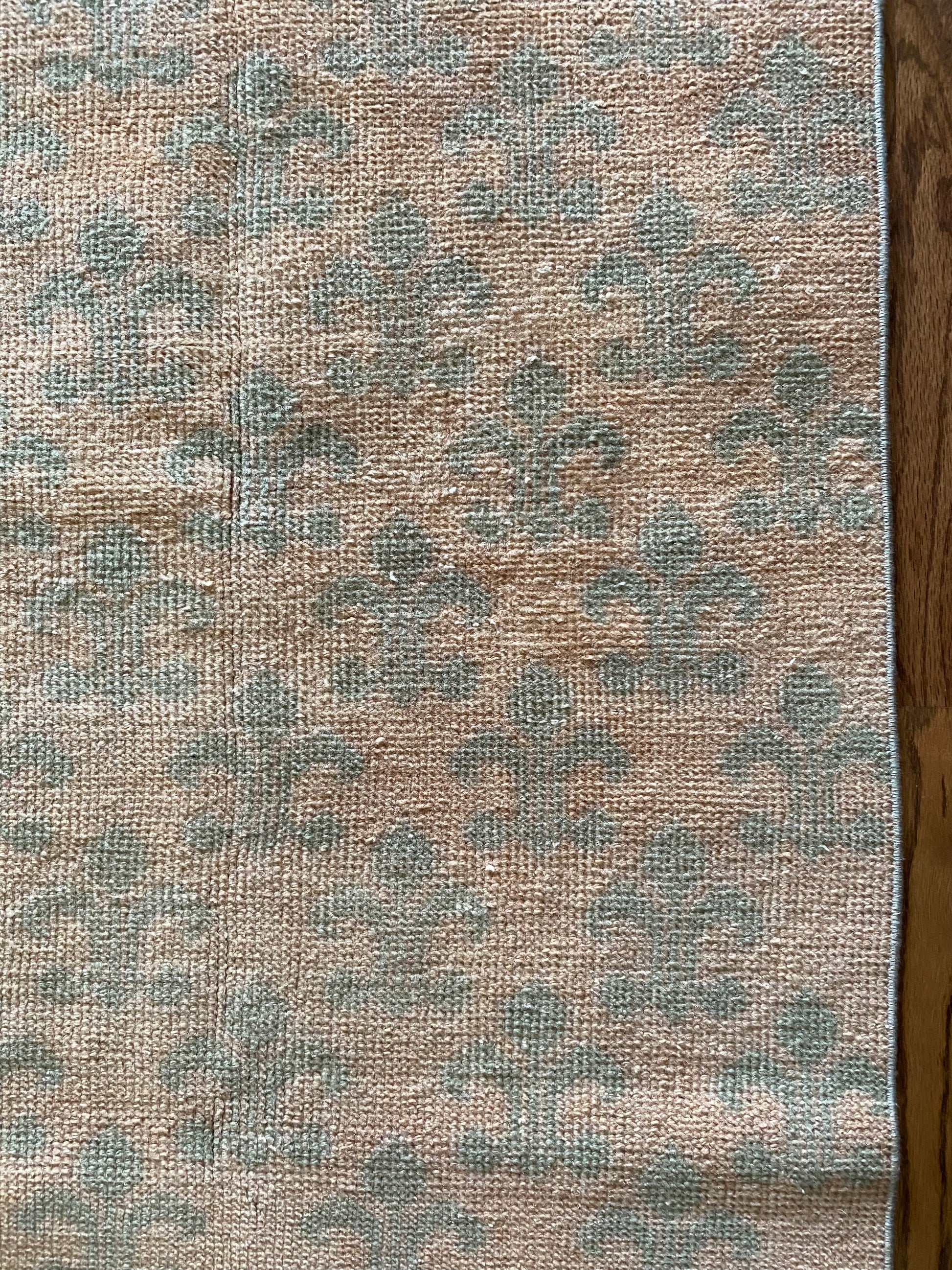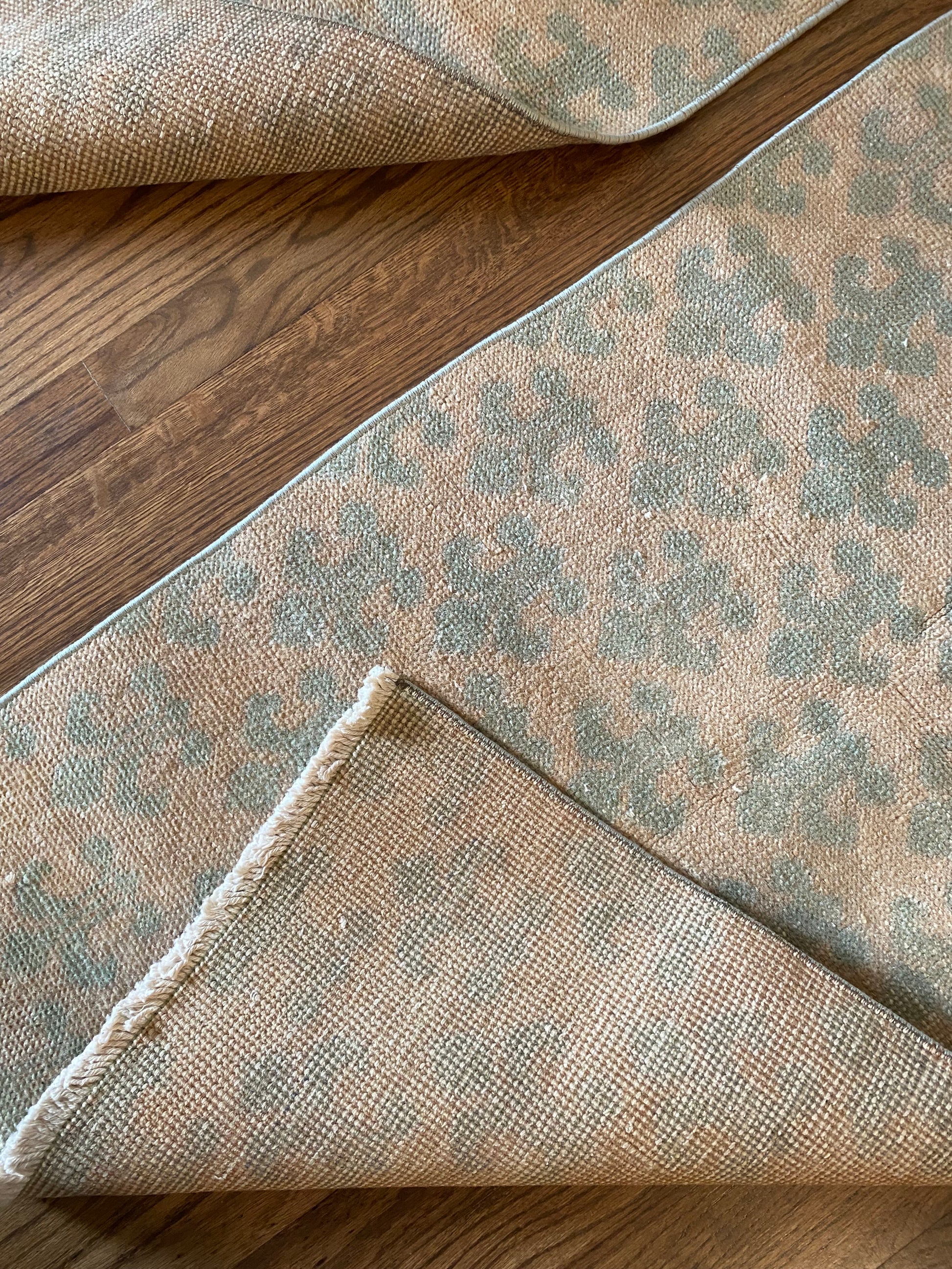 All of our rugs have been professionally cleaned prior to listing. We strive to deliver rugs that everyone loves, but please note that when you purchase from Two Sisters Rugs you are purchasing an item that is pre-owned and vintage by nature. Rugs might have areas of wear, minor repairs, or other unique characteristics, but we believe this is what makes them beautiful and one of a kind. Many rugs do not have perfect lines. All photographs are taken on an iPhone with no filter in natural light unless otherwise noted; colors may vary depending on the placement in your home. Colors may also vary depending on your phone or screen settings. If the area you are placing the rug has less natural light, the rug will appear darker in person. We aim to represent each rugs true colors and designs on the listing photos, but are happy to send additional photos upon request prior to purchase. High quality wool contains a substance called lanolin, which emits a metallic-y, but sweet and grassy scent. ALL SALES ARE FINAL.