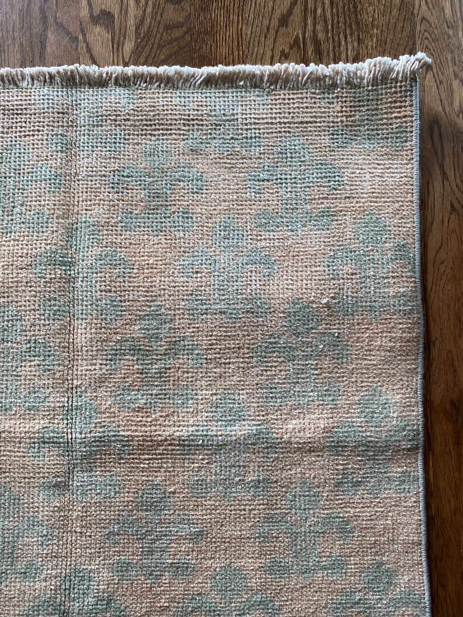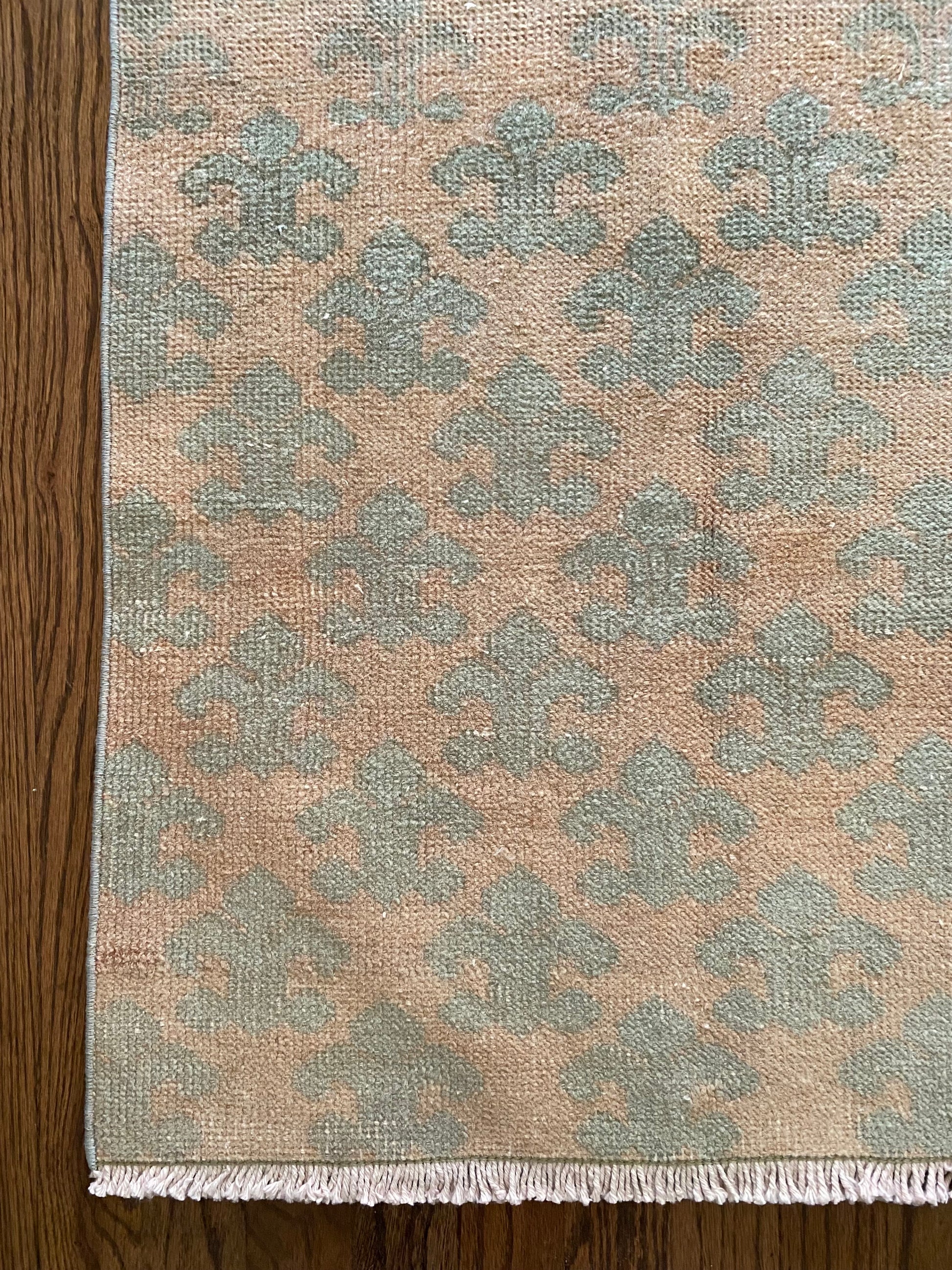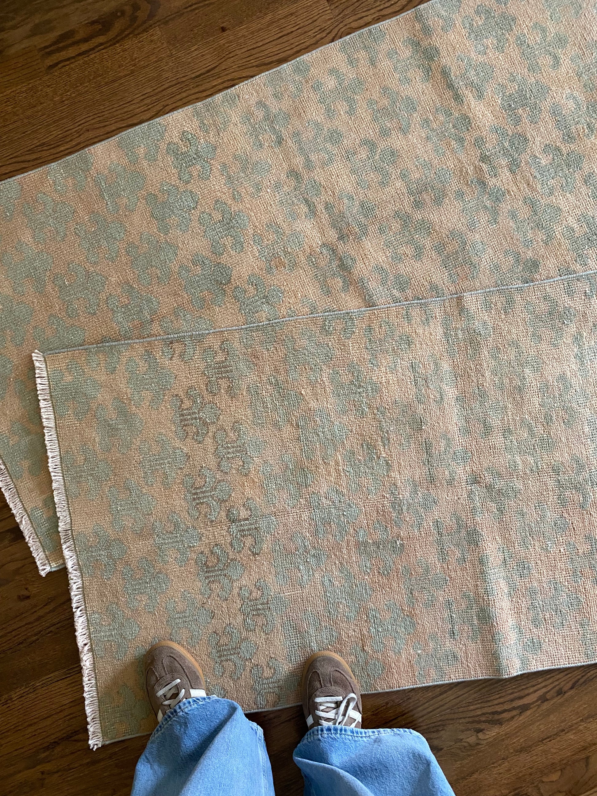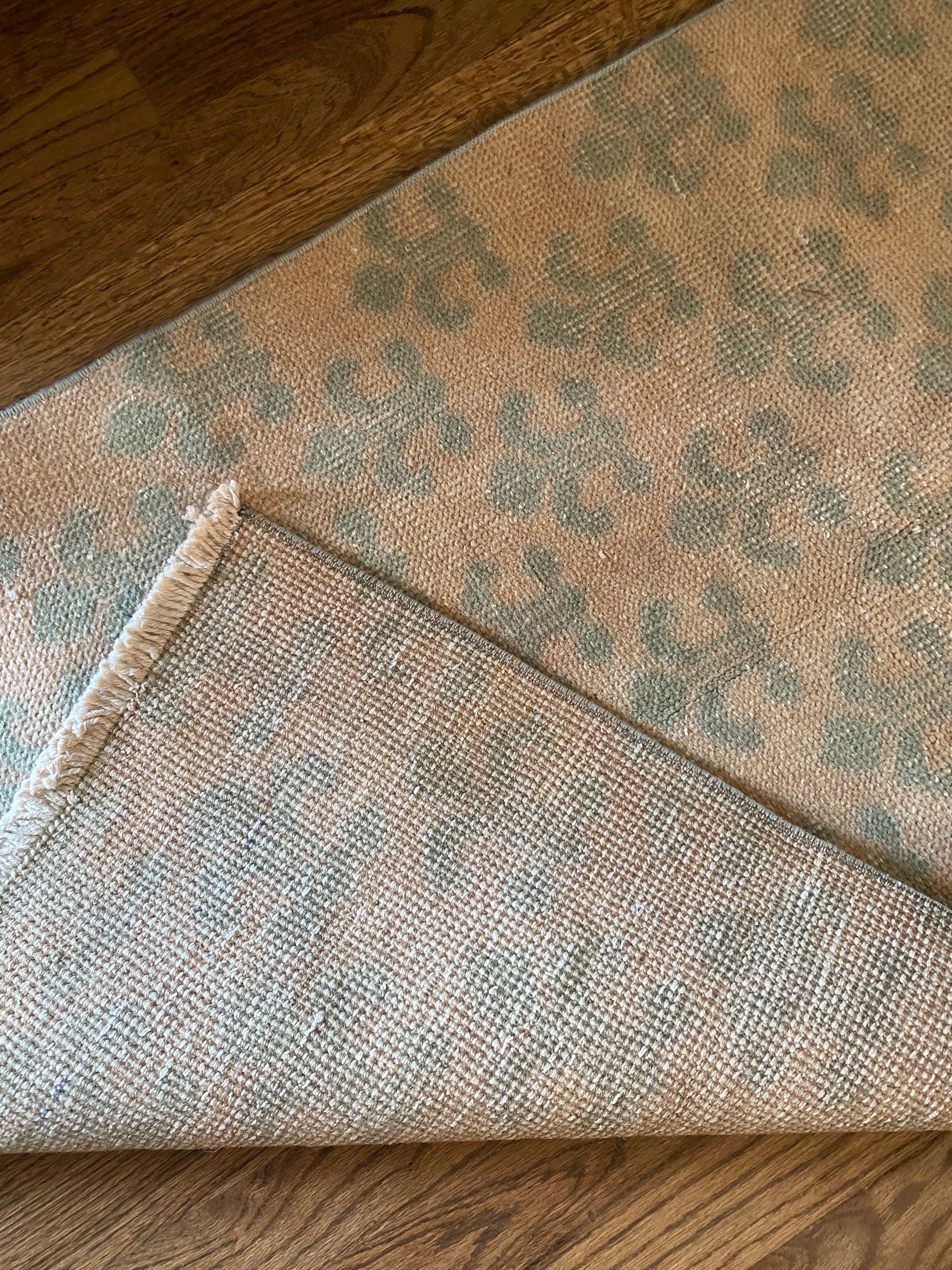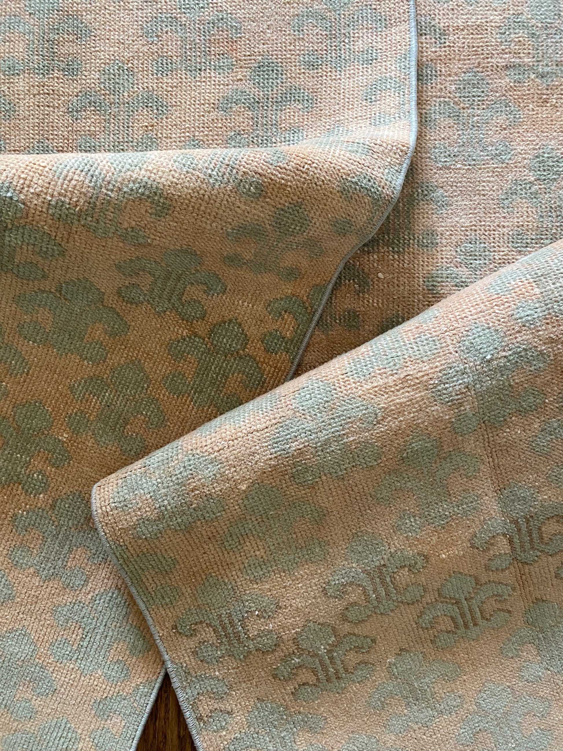 All of our rugs have been professionally cleaned prior to listing. We strive to deliver rugs that everyone loves, but please note that when you purchase from Two Sisters Rugs you are purchasing an item that is pre-owned and vintage by nature. Rugs might have areas of wear, minor repairs, or other unique characteristics, but we believe this is what makes them beautiful and one of a kind. Many rugs do not have perfect lines. All photographs are taken on an iPhone with no filter in natural light unless otherwise noted; colors may vary depending on the placement in your home. Colors may also vary depending on your phone or screen settings. If the area you are placing the rug has less natural light, the rug will appear darker in person. We aim to represent each rugs true colors and designs on the listing photos, but are happy to send additional photos upon request prior to purchase. High quality wool contains a substance called lanolin, which emits a metallic-y, but sweet and grassy scent. ALL SALES ARE FINAL.