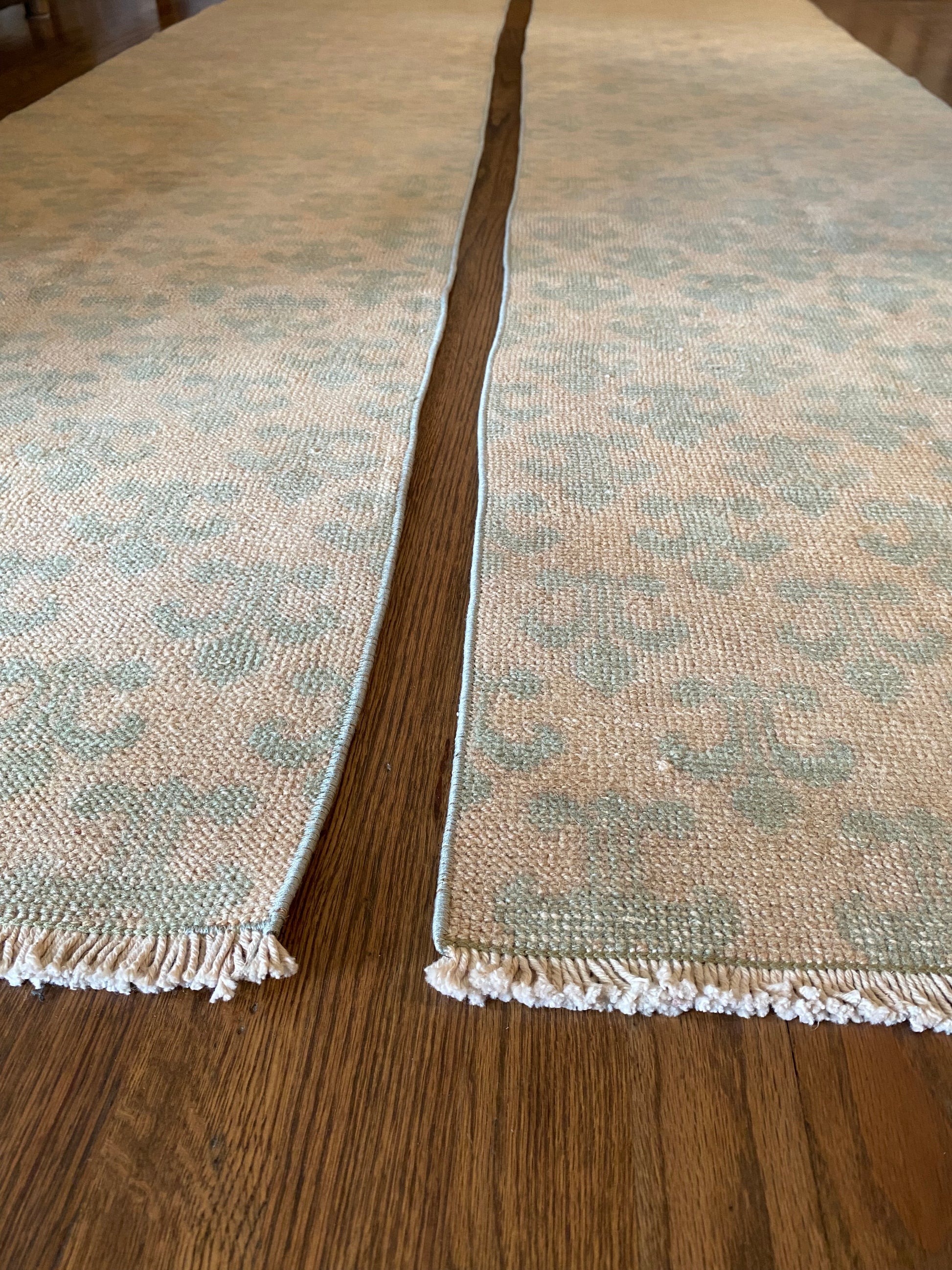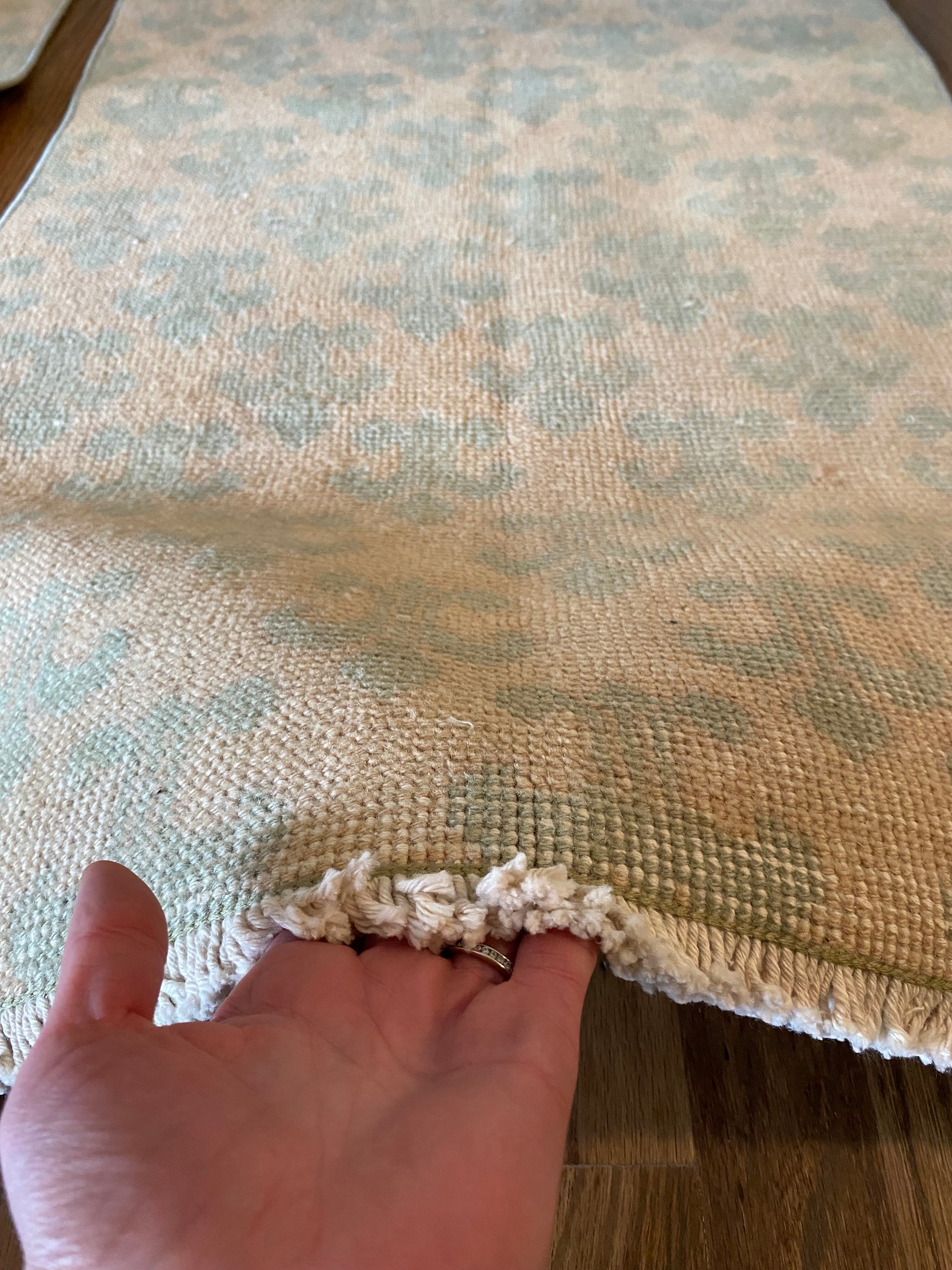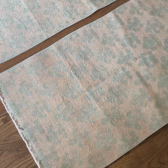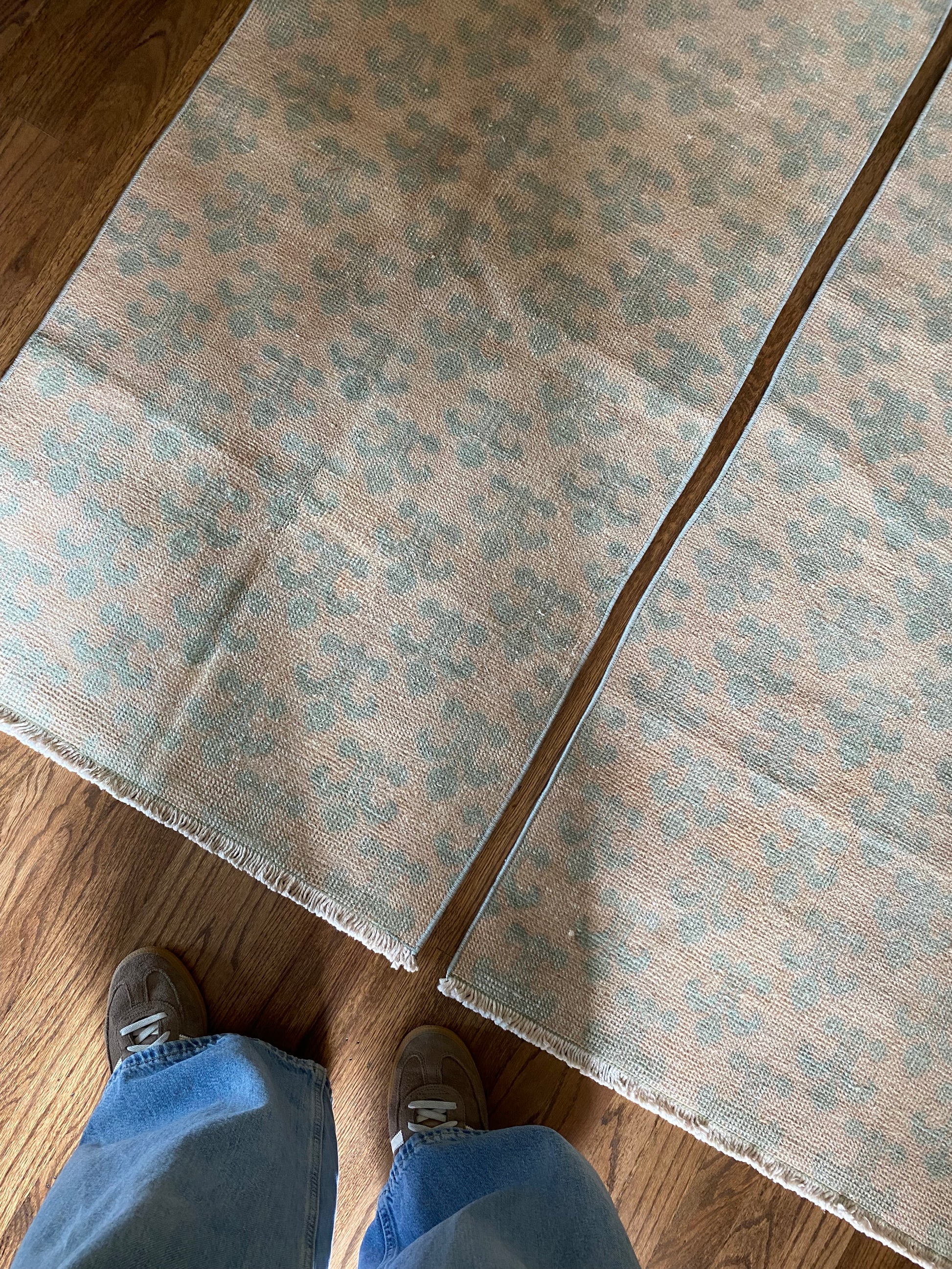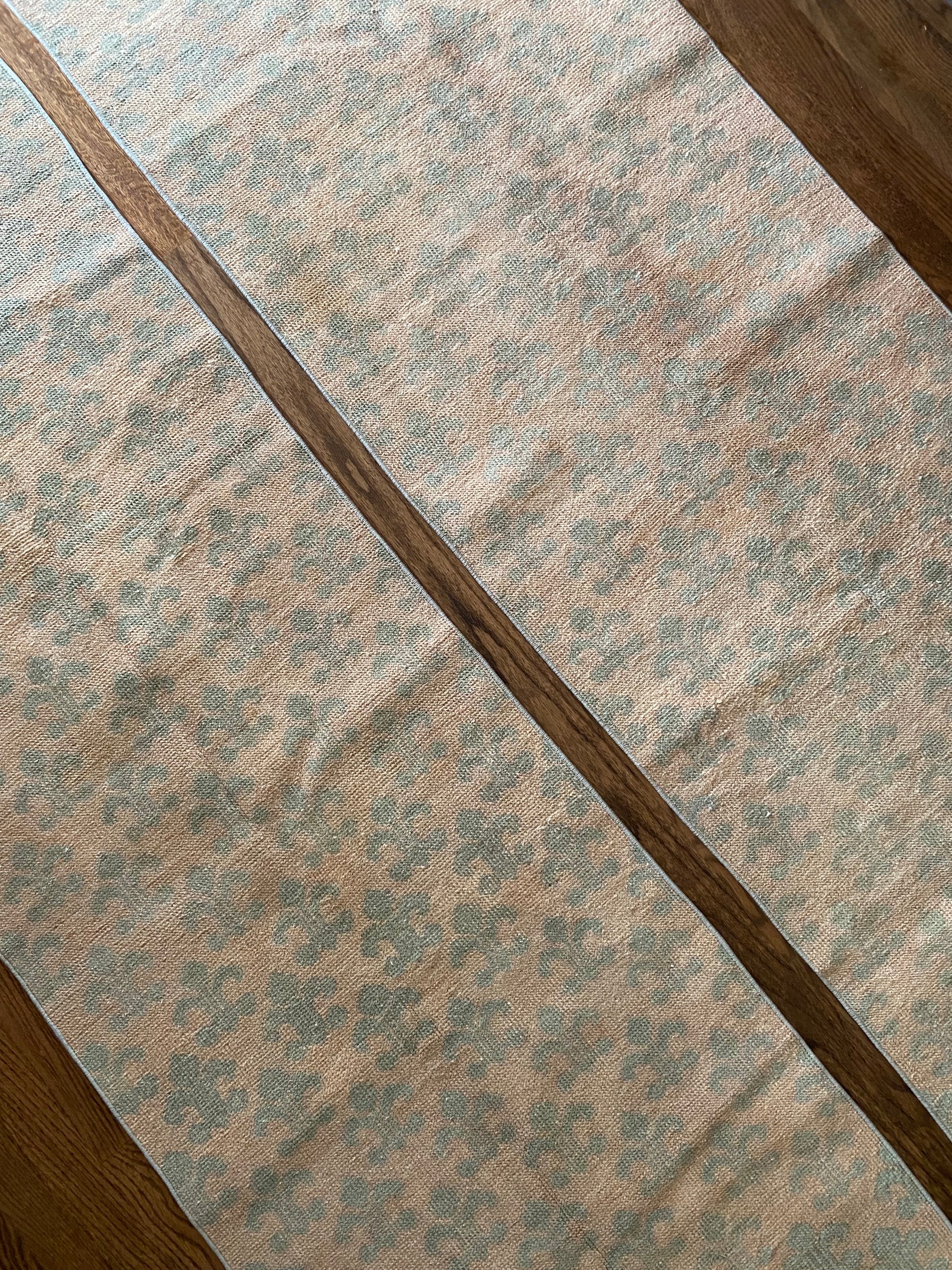 All of our rugs have been professionally cleaned prior to listing. We strive to deliver rugs that everyone loves, but please note that when you purchase from Two Sisters Rugs you are purchasing an item that is pre-owned and vintage by nature. Rugs might have areas of wear, minor repairs, or other unique characteristics, but we believe this is what makes them beautiful and one of a kind. Many rugs do not have perfect lines. All photographs are taken on an iPhone with no filter in natural light unless otherwise noted; colors may vary depending on the placement in your home. Colors may also vary depending on your phone or screen settings. If the area you are placing the rug has less natural light, the rug will appear darker in person. We aim to represent each rugs true colors and designs on the listing photos, but are happy to send additional photos upon request prior to purchase. High quality wool contains a substance called lanolin, which emits a metallic-y, but sweet and grassy scent. ALL SALES ARE FINAL.