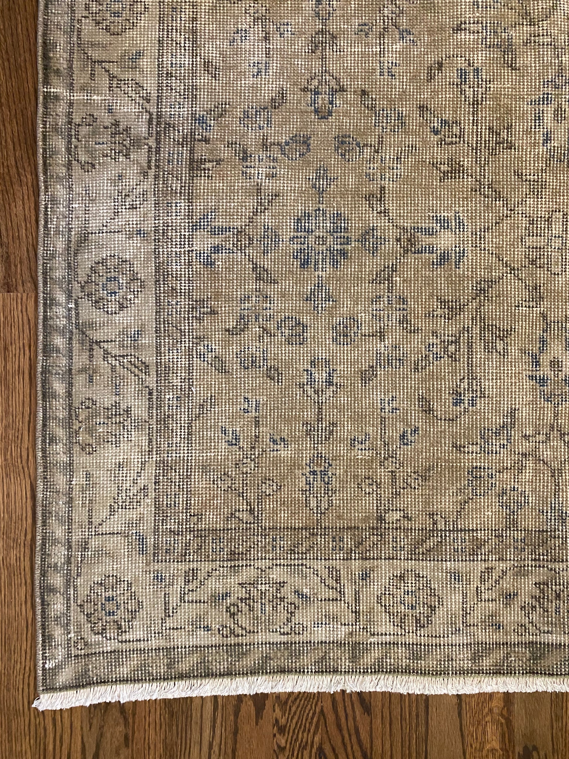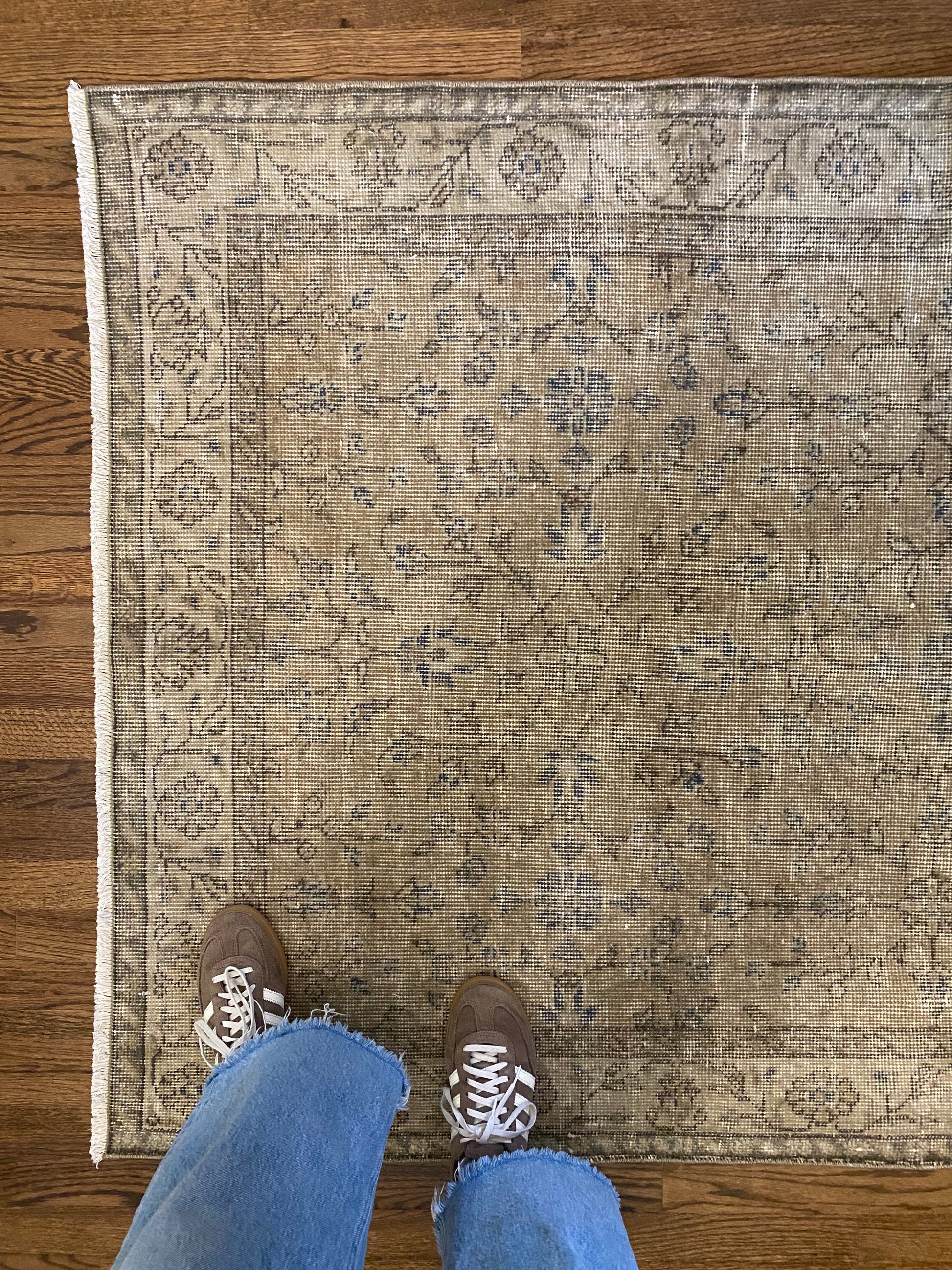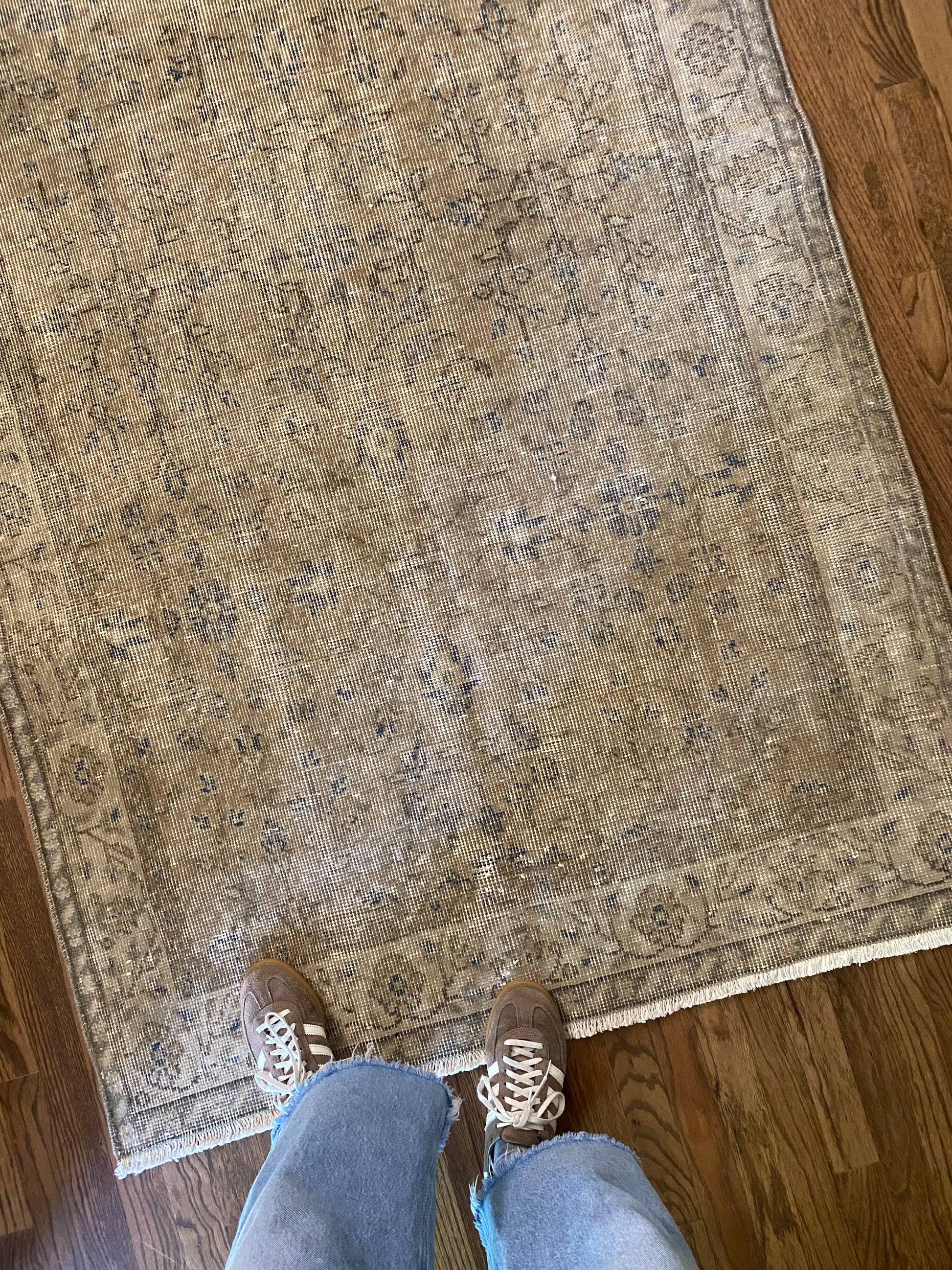 All of our rugs have been professionally cleaned prior to listing. We strive to deliver rugs that everyone loves, but please note that when you purchase from Two Sisters Rugs you are purchasing an item that is pre-owned and vintage by nature. Rugs might have areas of wear, minor repairs, or other unique characteristics, but we believe this is what makes them beautiful and one of a kind. Many rugs do not have perfect lines. All photographs are taken on an iPhone with no filter in natural light unless otherwise noted; colors may vary depending on the placement in your home. Colors may also vary depending on your phone or screen settings. If the area you are placing the rug has less natural light, the rug will appear darker in person. We aim to represent each rugs true colors and designs on the listing photos, but are happy to send additional photos upon request prior to purchase. High quality wool contains a substance called lanolin, which emits a metallic-y, but sweet and grassy scent. ALL SALES ARE FINAL.