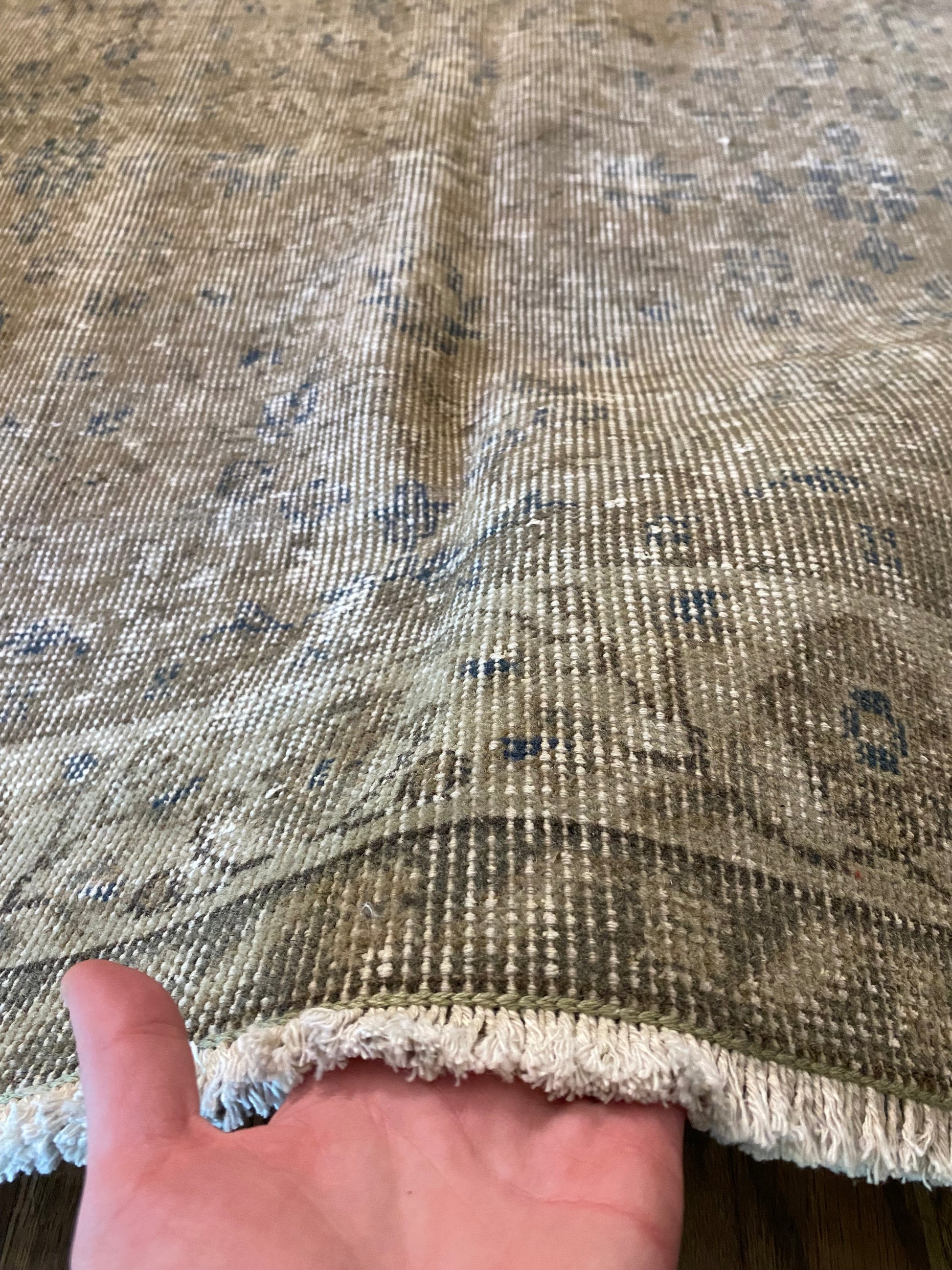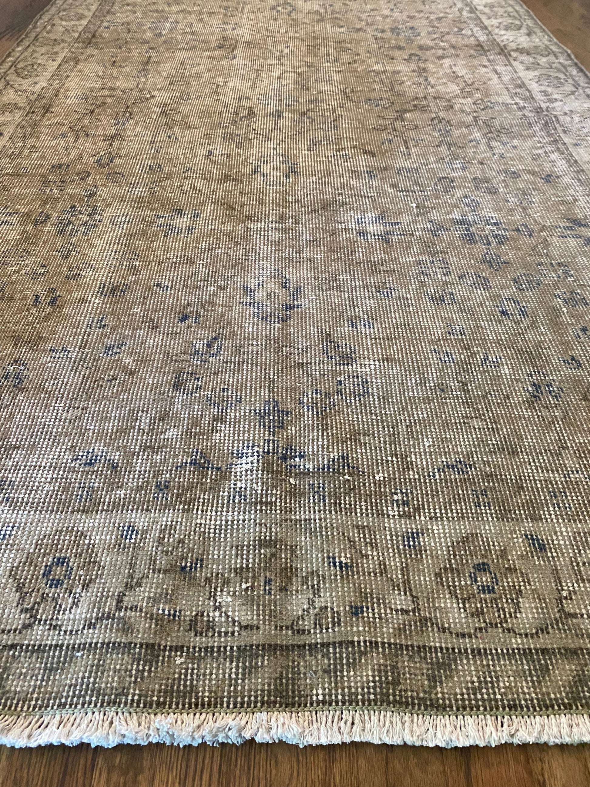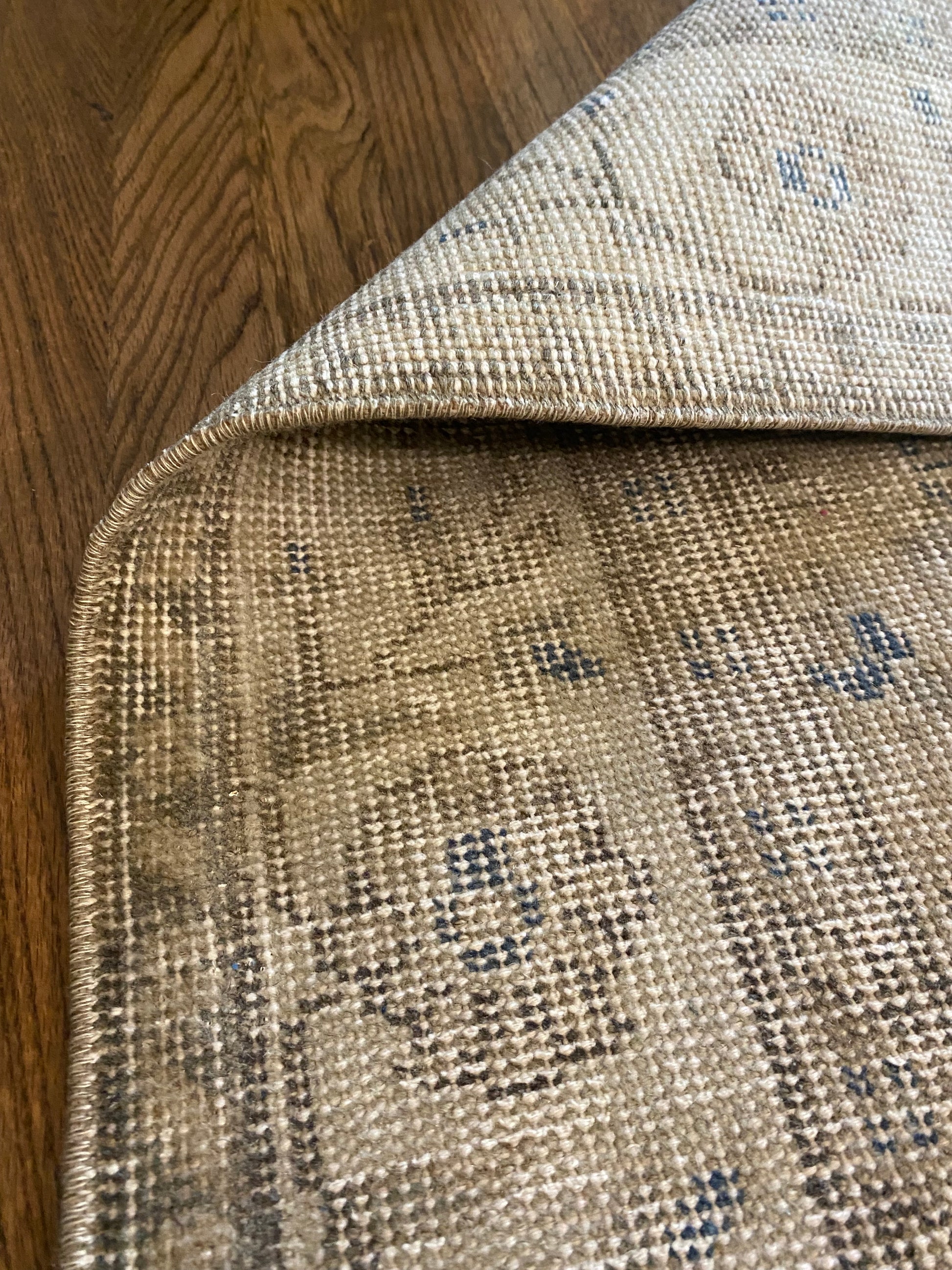All of our rugs have been professionally cleaned prior to listing. We strive to deliver rugs that everyone loves, but please note that when you purchase from Two Sisters Rugs you are purchasing an item that is pre-owned and vintage by nature. Rugs might have areas of wear, minor repairs, or other unique characteristics, but we believe this is what makes them beautiful and one of a kind. Many rugs do not have perfect lines. All photographs are taken on an iPhone with no filter in natural light unless otherwise noted; colors may vary depending on the placement in your home. Colors may also vary depending on your phone or screen settings. If the area you are placing the rug has less natural light, the rug will appear darker in person. We aim to represent each rugs true colors and designs on the listing photos, but are happy to send additional photos upon request prior to purchase. High quality wool contains a substance called lanolin, which emits a metallic-y, but sweet and grassy scent. ALL SALES ARE FINAL.