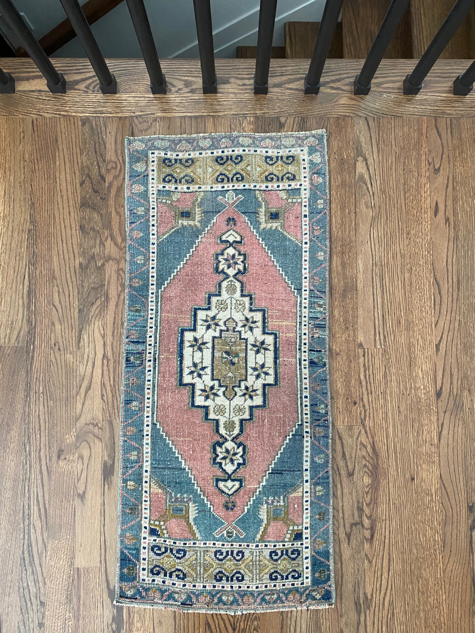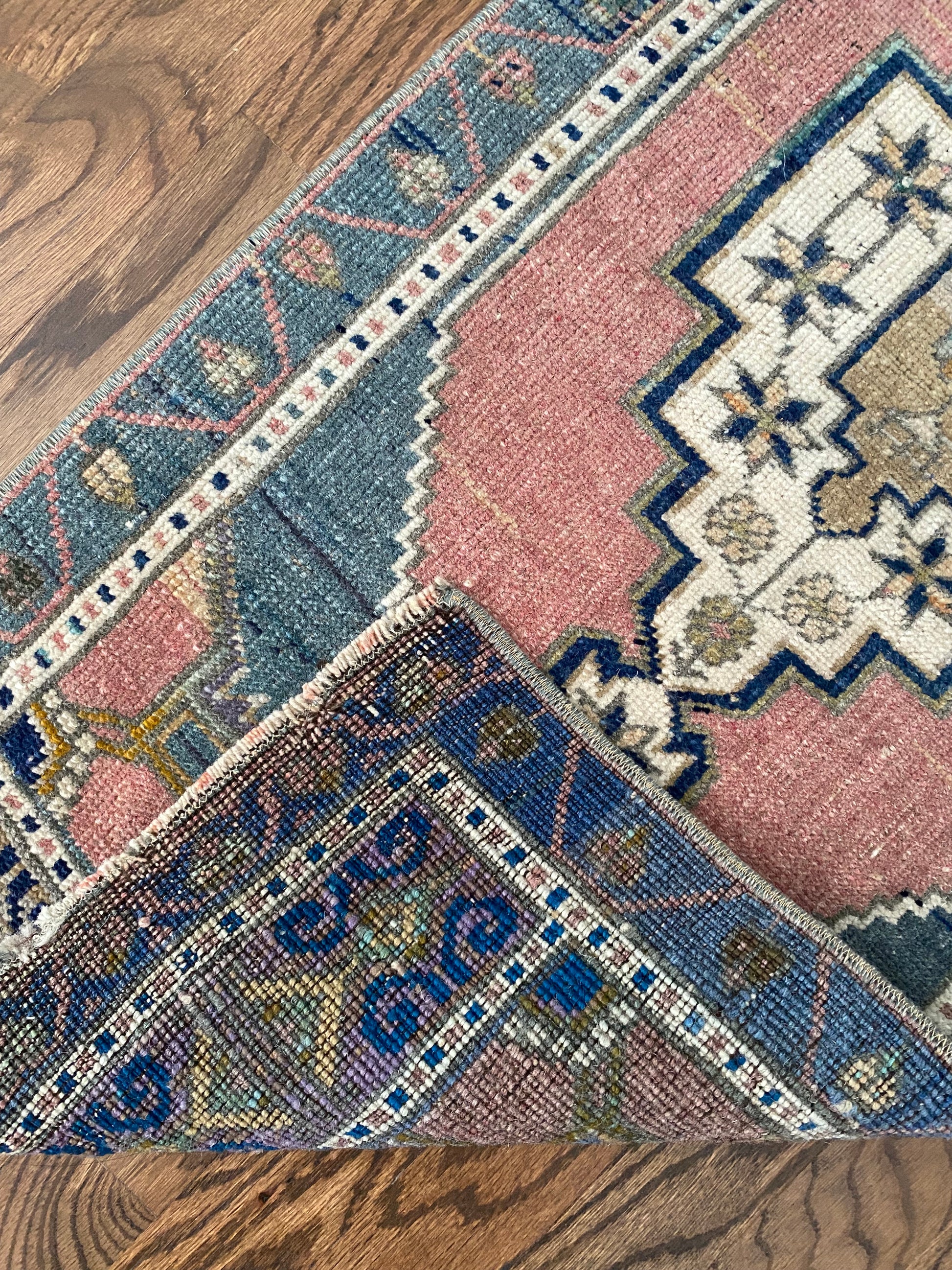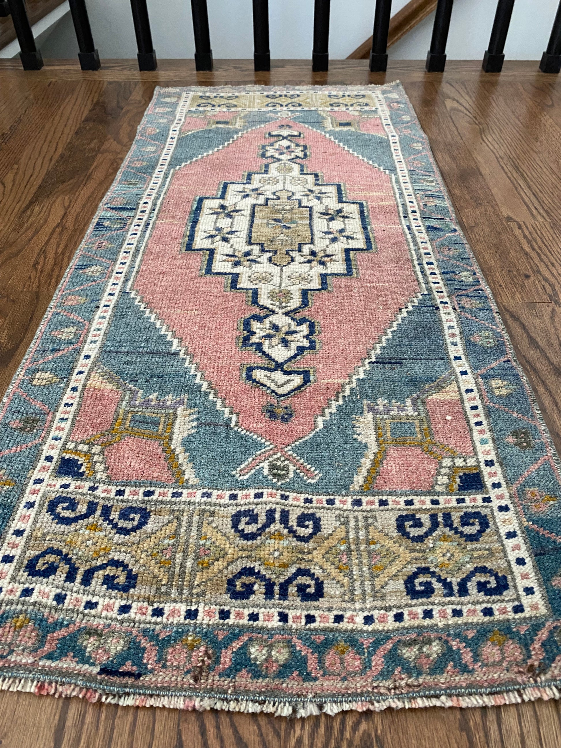 All of our rugs have been professionally cleaned prior to listing. We strive to deliver rugs that everyone loves, but please note that when you purchase from Two Sisters Rugs you are purchasing an item that is pre-owned and vintage by nature. Rugs might have areas of wear, minor repairs, or other unique characteristics, but we believe this is what makes them beautiful and one of a kind. Many rugs do not have perfect lines. All photographs are taken on an iPhone with no filter in natural light unless otherwise noted; colors may vary depending on the placement in your home. Colors may also vary depending on your phone or screen settings. If the area you are placing the rug has less natural light, the rug will appear darker in person. We aim to represent each rugs true colors and designs on the listing photos, but are happy to send additional photos upon request prior to purchase. High quality wool contains a substance called lanolin, which emits a metallic-y, but sweet and grassy scent. ALL SALES ARE FINAL.