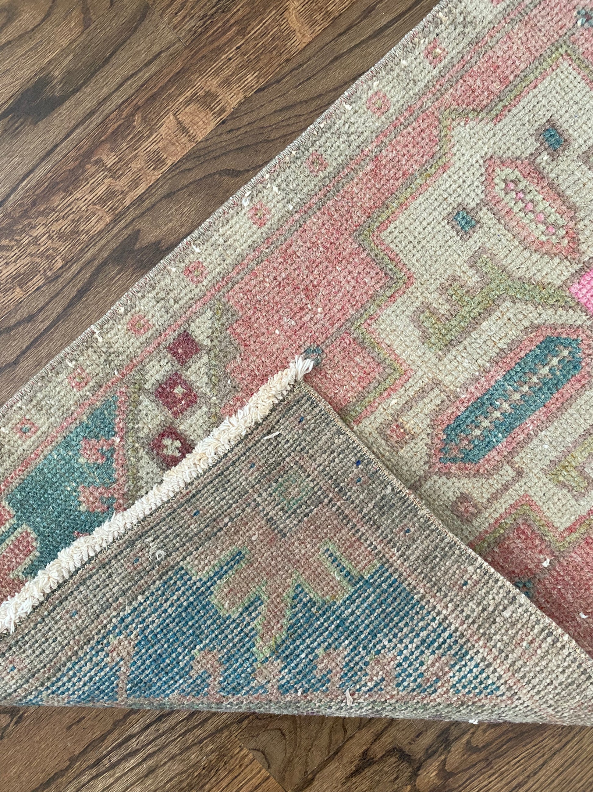 All of our rugs have been professionally cleaned prior to listing. We strive to deliver rugs that everyone loves, but please note that when you purchase from Two Sisters Rugs you are purchasing an item that is pre-owned and vintage by nature. Rugs might have areas of wear, minor repairs, or other unique characteristics, but we believe this is what makes them beautiful and one of a kind. Many rugs do not have perfect lines. All photographs are taken on an iPhone with no filter in natural light unless otherwise noted; colors may vary depending on the placement in your home. Colors may also vary depending on your phone or screen settings. If the area you are placing the rug has less natural light, the rug will appear darker in person. We aim to represent each rugs true colors and designs on the listing photos, but are happy to send additional photos upon request prior to purchase. High quality wool contains a substance called lanolin, which emits a metallic-y, but sweet and grassy scent. ALL SALES ARE FINAL.