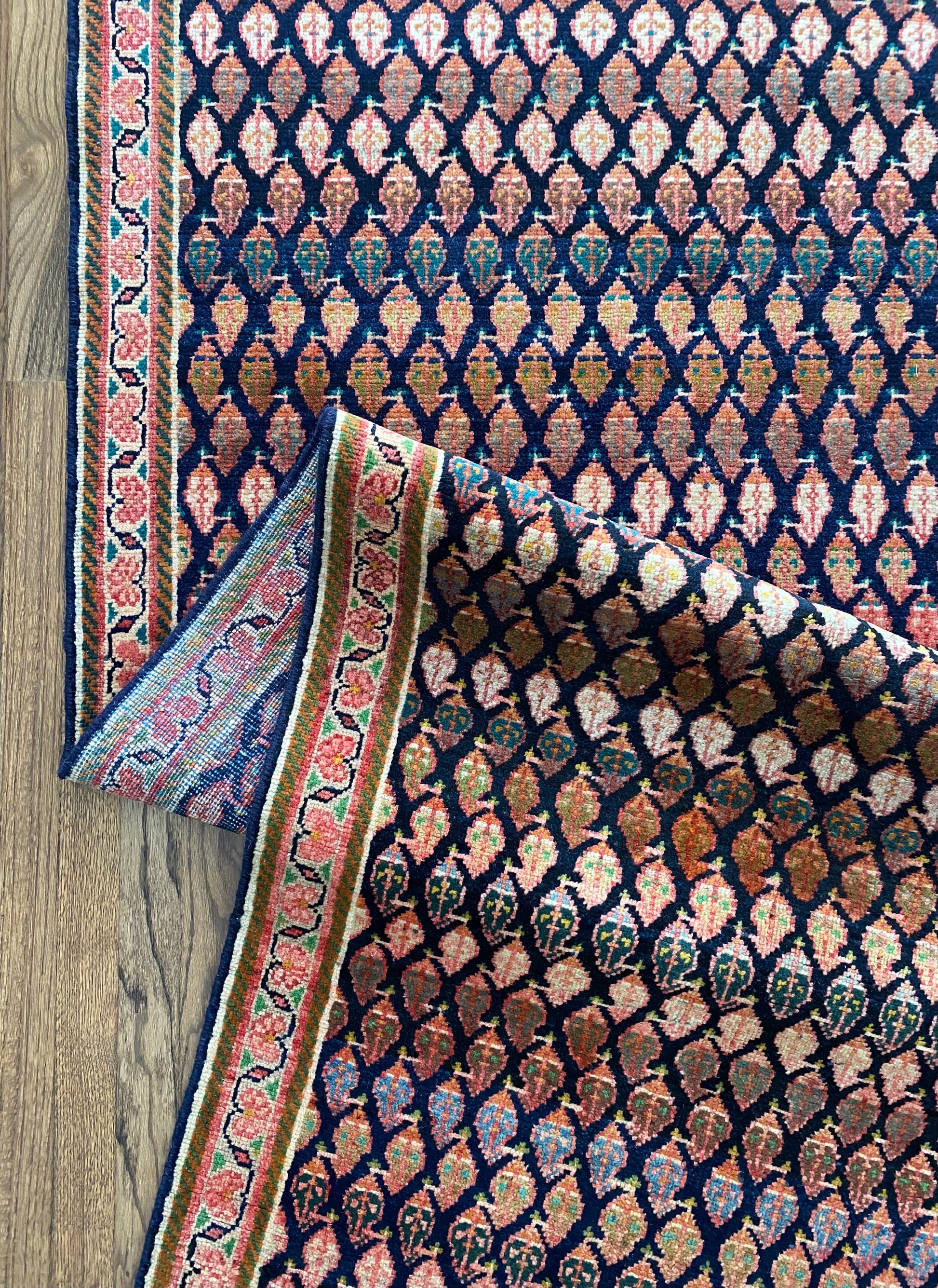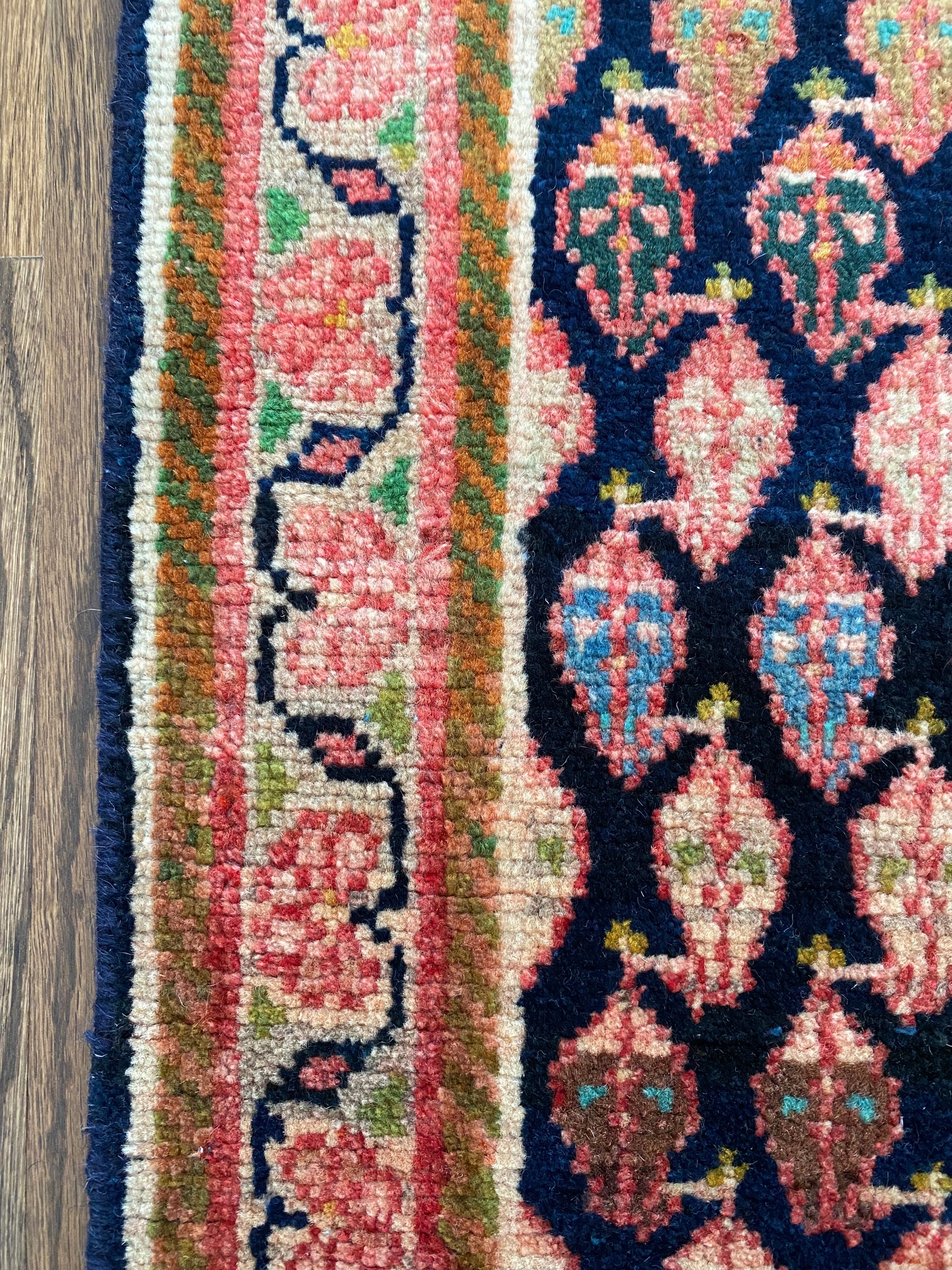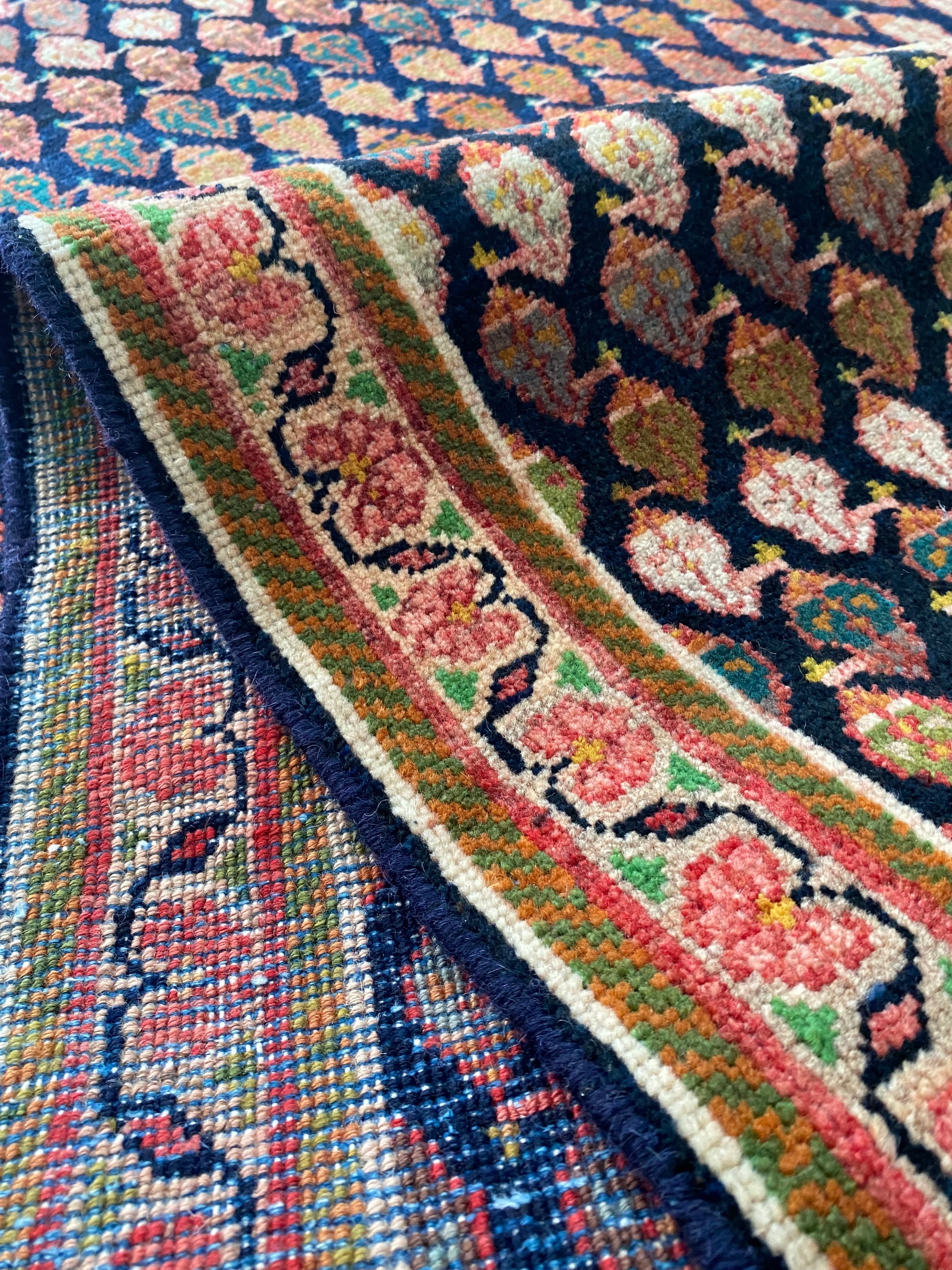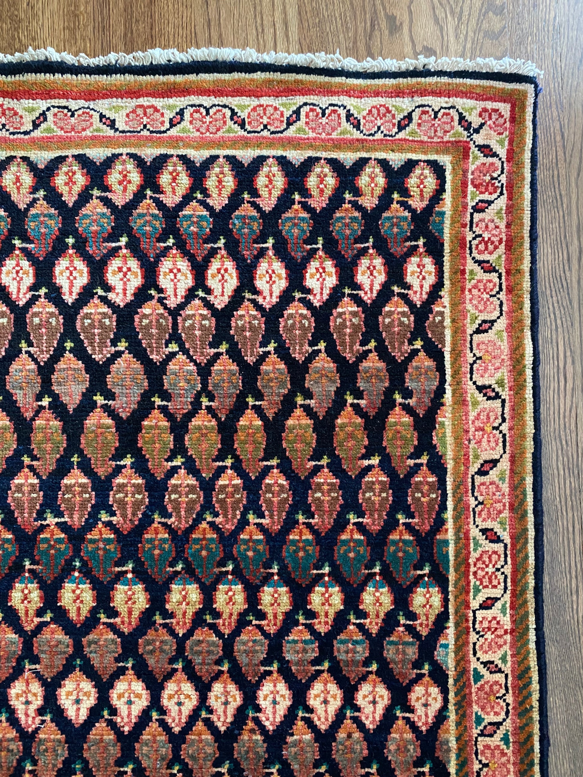All of our rugs have been professionally cleaned prior to listing. We strive to deliver rugs that everyone loves, but please note that when you purchase from Two Sisters Rugs you are purchasing an item that is pre-owned and vintage by nature. Rugs might have areas of wear, minor repairs, or other unique characteristics, but we believe this is what makes them beautiful and one of a kind. Many rugs do not have perfect lines. All photographs are taken on an iPhone with no filter in natural light unless otherwise noted; colors may vary depending on the placement in your home. Colors may also vary depending on your phone or screen settings. If the area you are placing the rug has less natural light, the rug will appear darker in person. We aim to represent each rugs true colors and designs on the listing photos, but are happy to send additional photos upon request prior to purchase. High quality wool contains a substance called lanolin, which emits a metallic-y, but sweet and grassy scent. ALL SALES ARE FINAL.