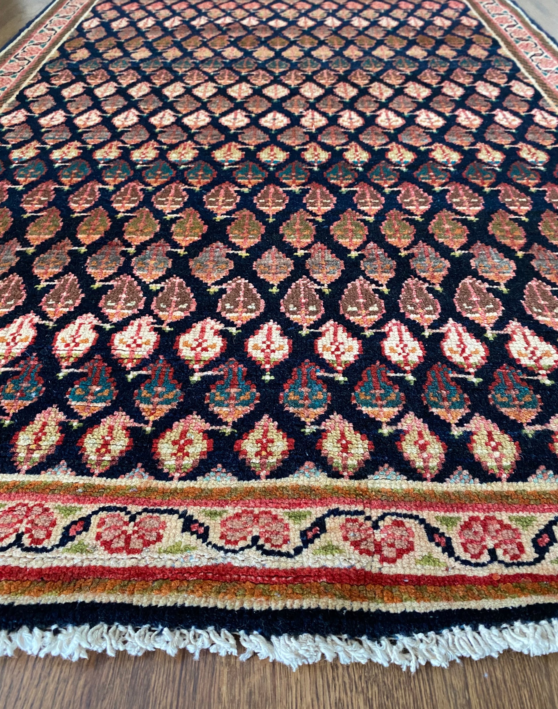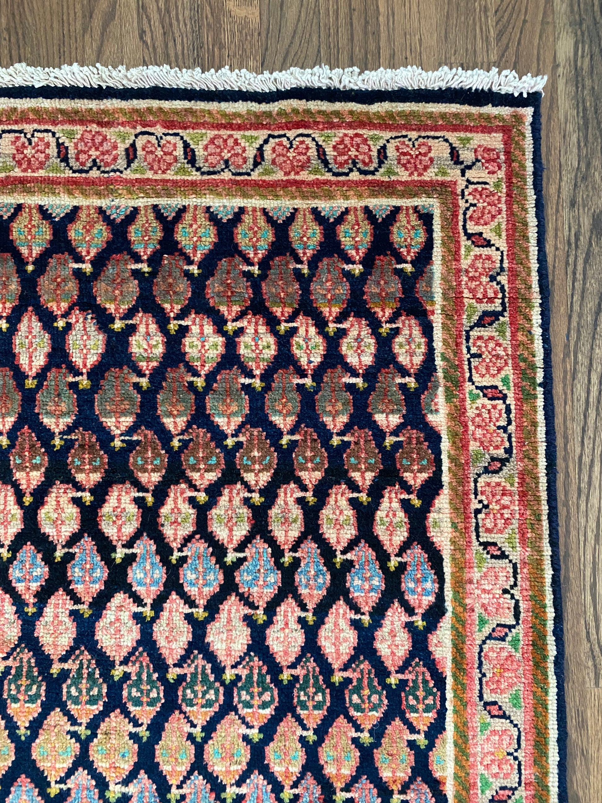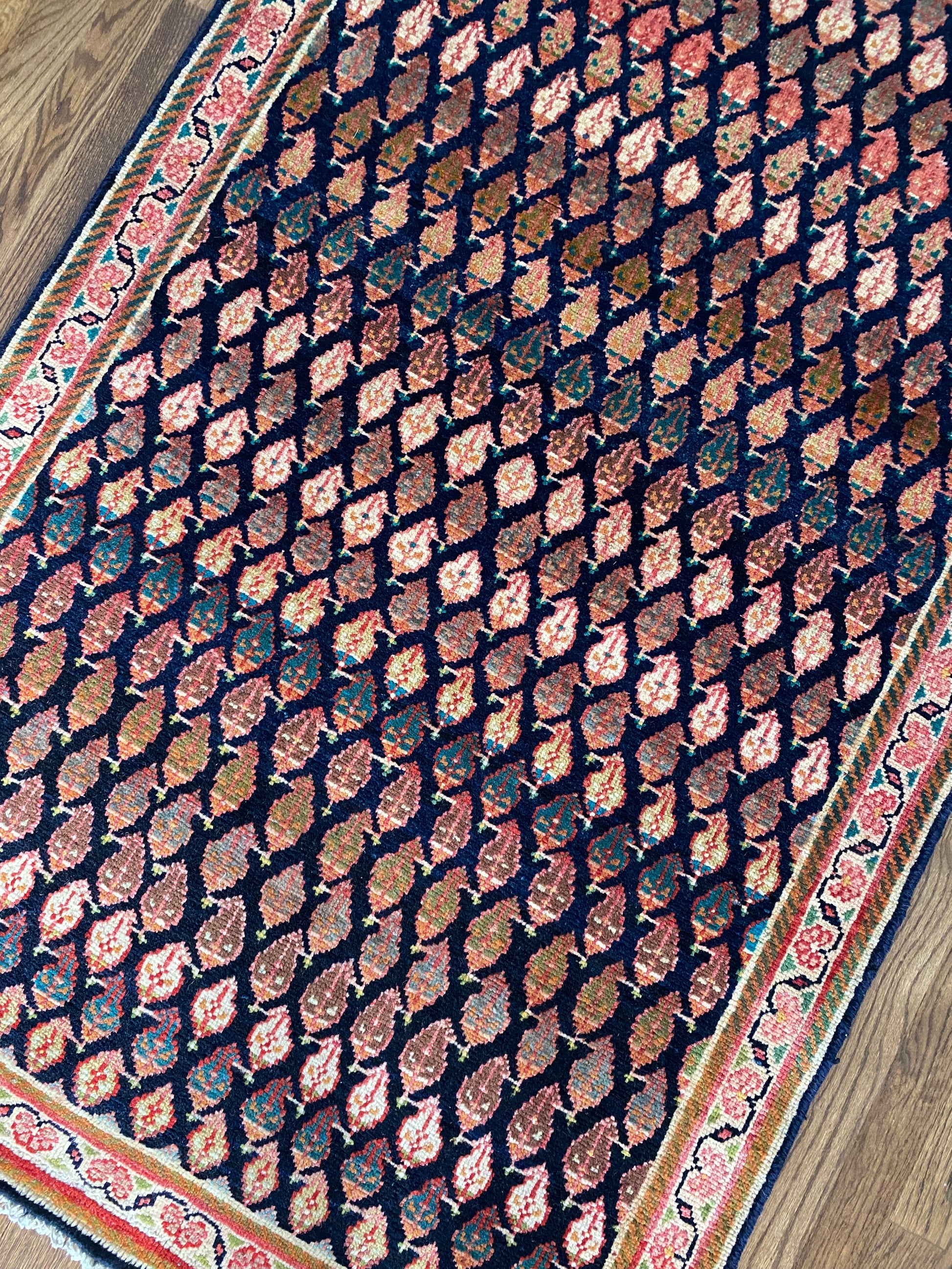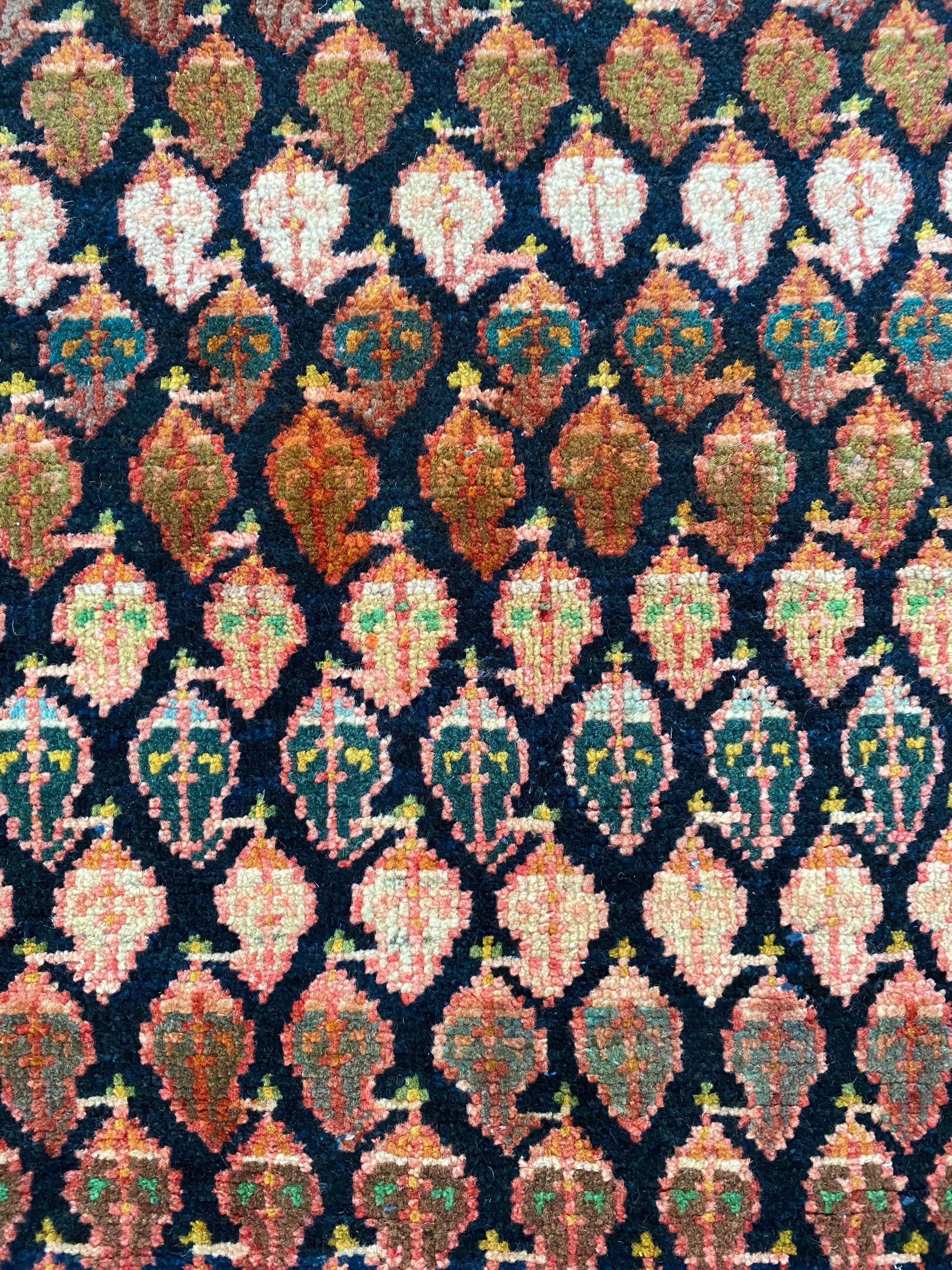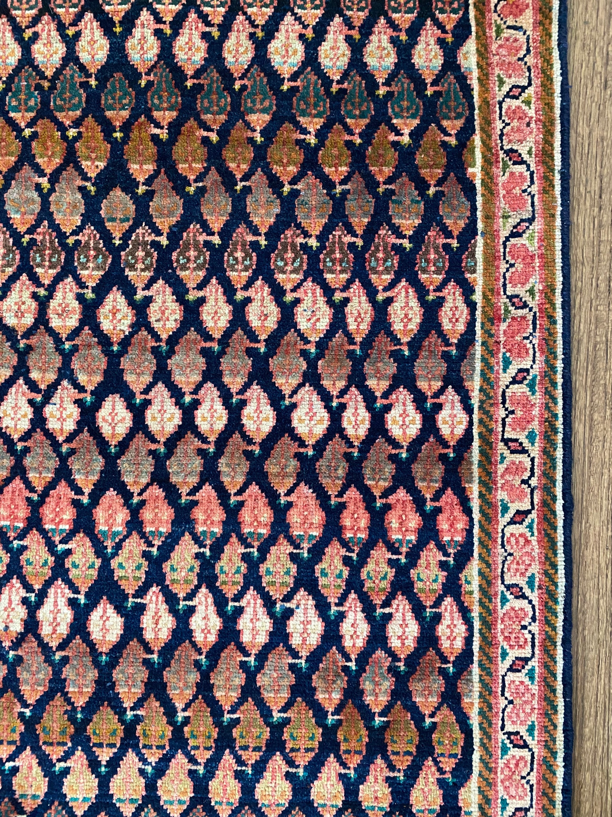 All of our rugs have been professionally cleaned prior to listing. We strive to deliver rugs that everyone loves, but please note that when you purchase from Two Sisters Rugs you are purchasing an item that is pre-owned and vintage by nature. Rugs might have areas of wear, minor repairs, or other unique characteristics, but we believe this is what makes them beautiful and one of a kind. Many rugs do not have perfect lines. All photographs are taken on an iPhone with no filter in natural light unless otherwise noted; colors may vary depending on the placement in your home. Colors may also vary depending on your phone or screen settings. If the area you are placing the rug has less natural light, the rug will appear darker in person. We aim to represent each rugs true colors and designs on the listing photos, but are happy to send additional photos upon request prior to purchase. High quality wool contains a substance called lanolin, which emits a metallic-y, but sweet and grassy scent. ALL SALES ARE FINAL.