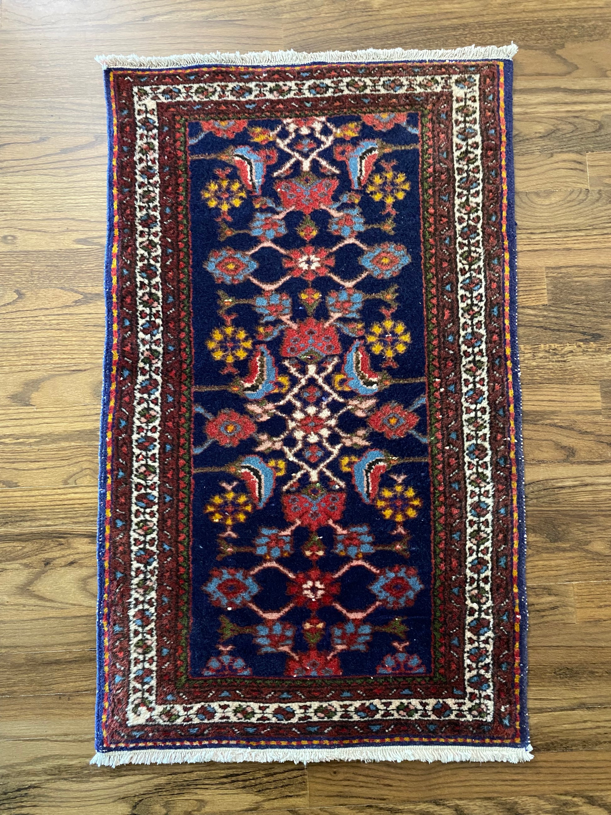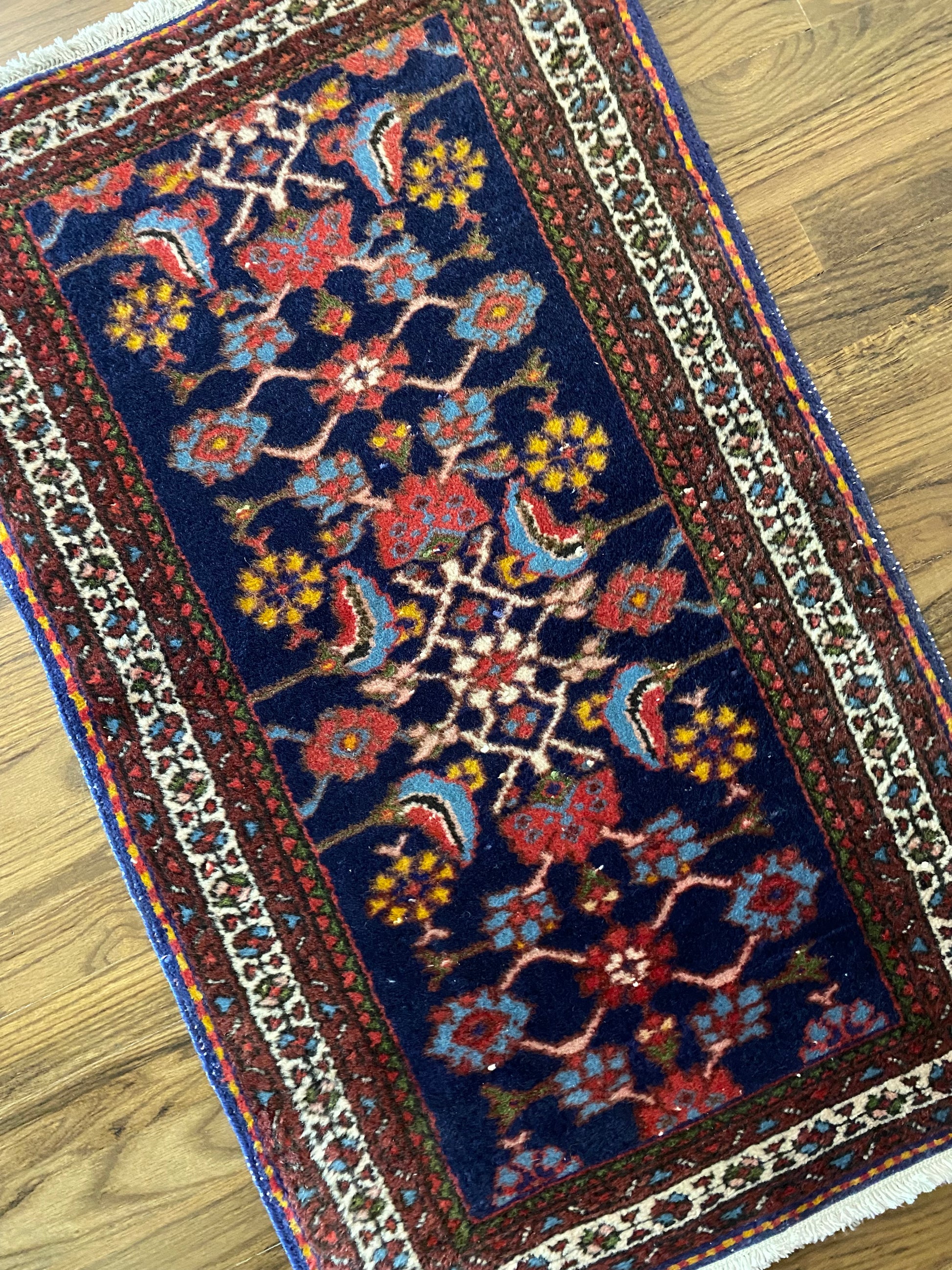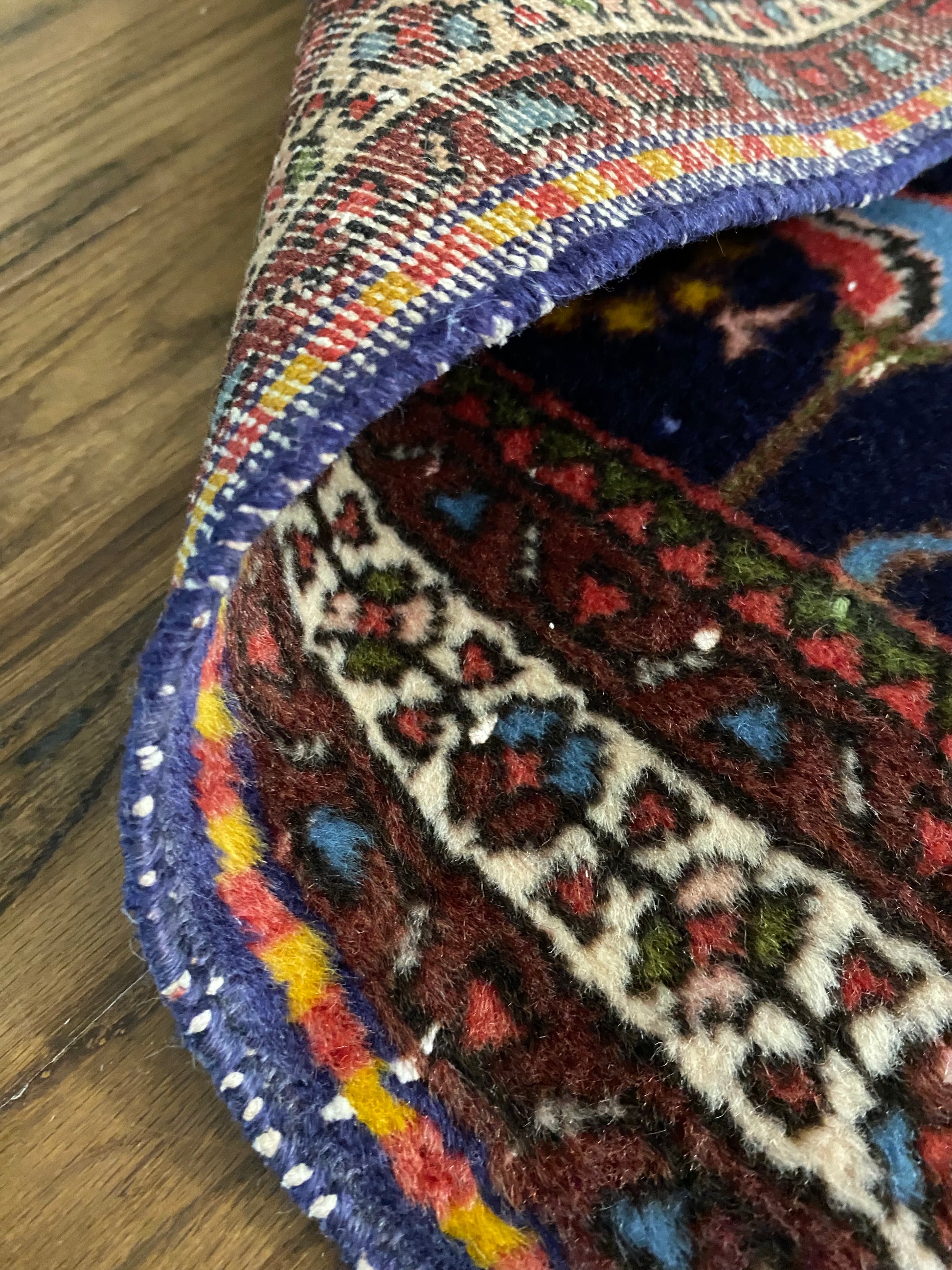 All of our rugs have been professionally cleaned prior to listing. We strive to deliver rugs that everyone loves, but please note that when you purchase from Two Sisters Rugs you are purchasing an item that is pre-owned and vintage by nature. Rugs might have areas of wear, minor repairs, or other unique characteristics, but we believe this is what makes them beautiful and one of a kind. Many rugs do not have perfect lines. All photographs are taken on an iPhone with no filter in natural light unless otherwise noted; colors may vary depending on the placement in your home. Colors may also vary depending on your phone or screen settings. If the area you are placing the rug has less natural light, the rug will appear darker in person. We aim to represent each rugs true colors and designs on the listing photos, but are happy to send additional photos upon request prior to purchase. High quality wool contains a substance called lanolin, which emits a metallic-y, but sweet and grassy scent. ALL SALES ARE FINAL.
