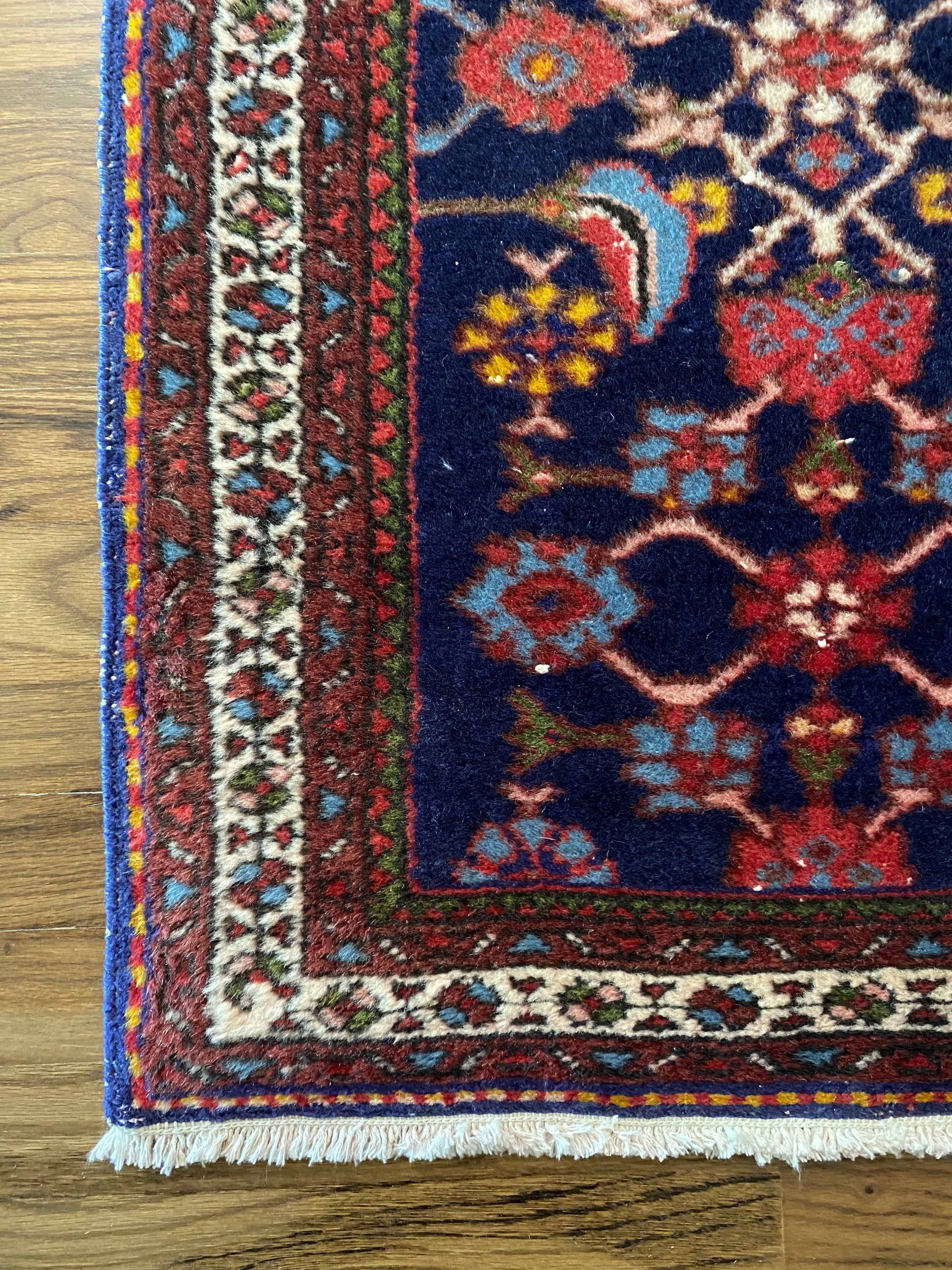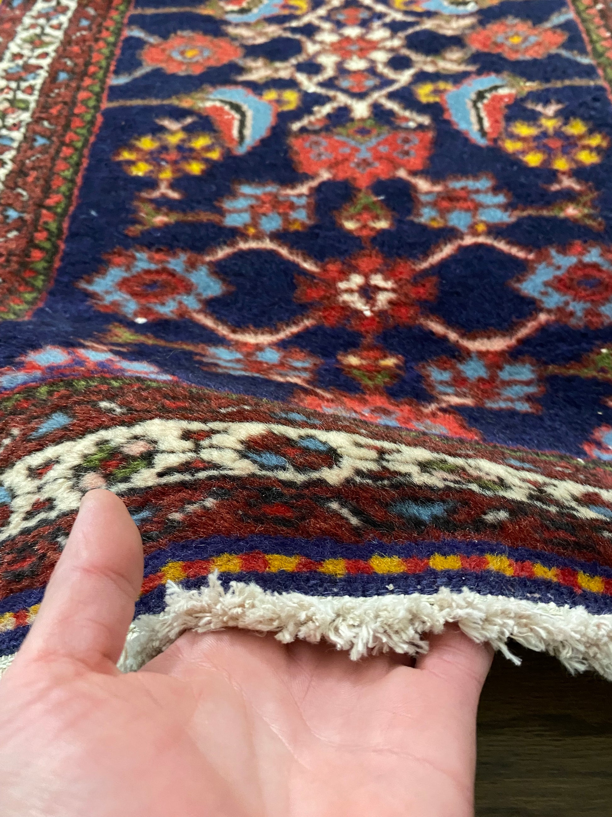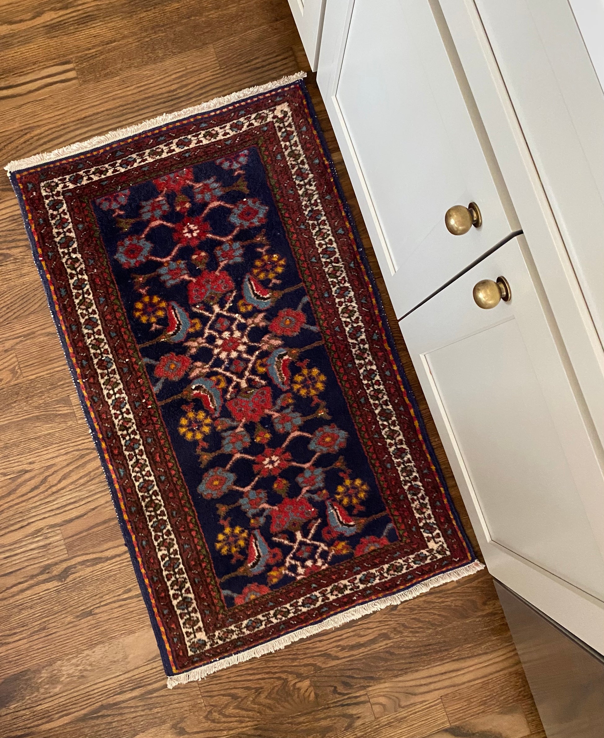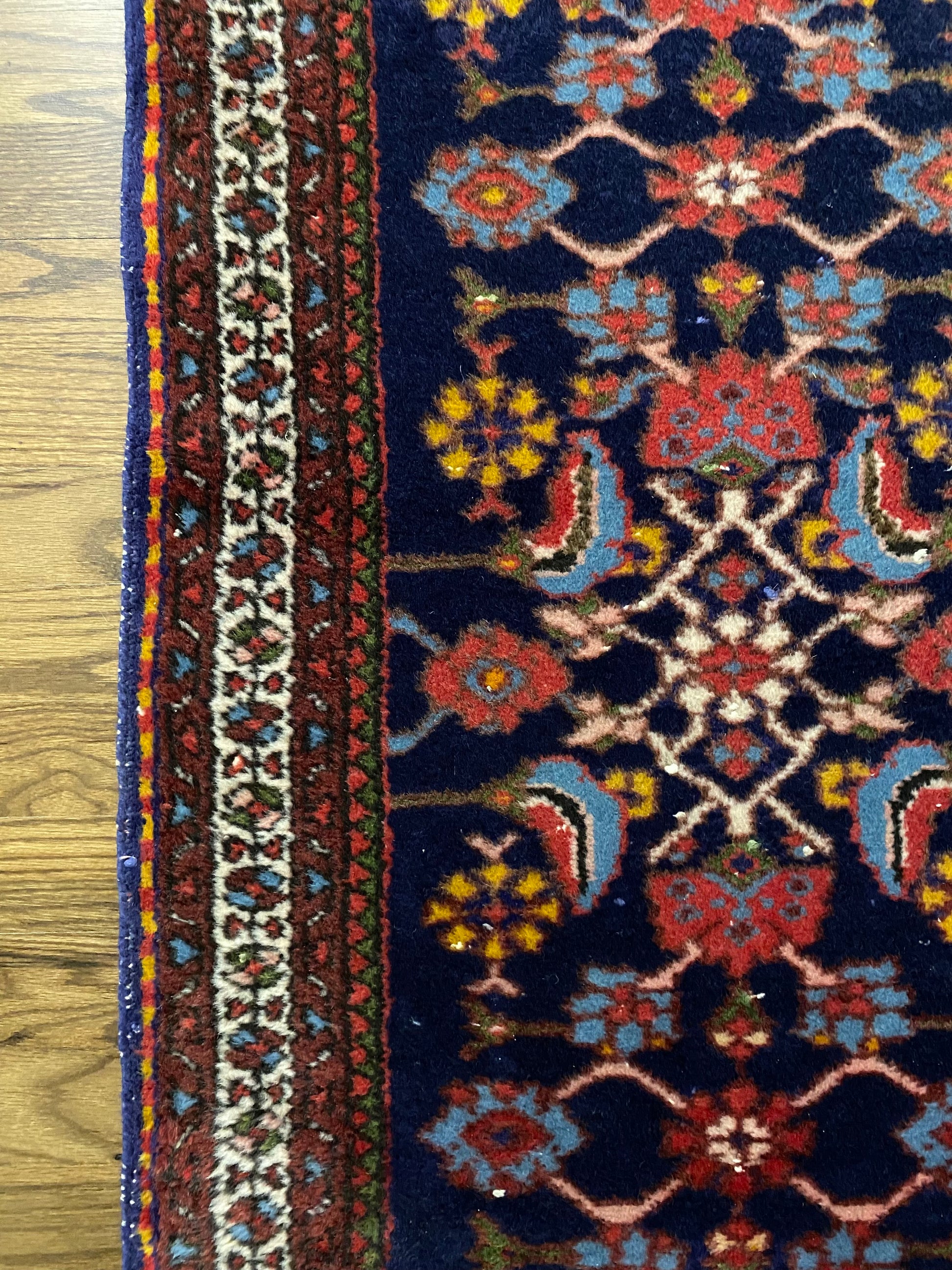 All of our rugs have been professionally cleaned prior to listing. We strive to deliver rugs that everyone loves, but please note that when you purchase from Two Sisters Rugs you are purchasing an item that is pre-owned and vintage by nature. Rugs might have areas of wear, minor repairs, or other unique characteristics, but we believe this is what makes them beautiful and one of a kind. Many rugs do not have perfect lines. All photographs are taken on an iPhone with no filter in natural light unless otherwise noted; colors may vary depending on the placement in your home. Colors may also vary depending on your phone or screen settings. If the area you are placing the rug has less natural light, the rug will appear darker in person. We aim to represent each rugs true colors and designs on the listing photos, but are happy to send additional photos upon request prior to purchase. High quality wool contains a substance called lanolin, which emits a metallic-y, but sweet and grassy scent. ALL SALES ARE FINAL.