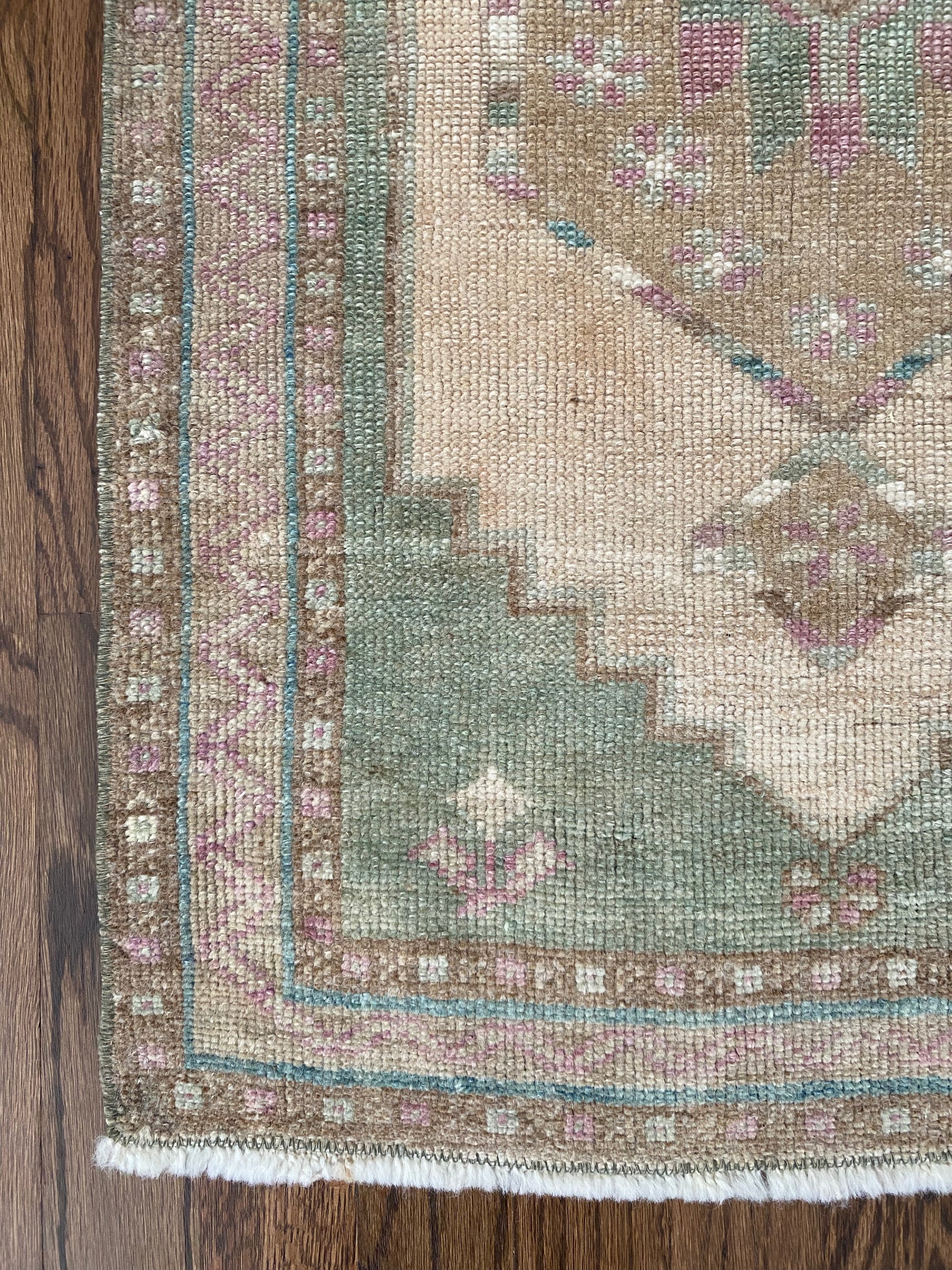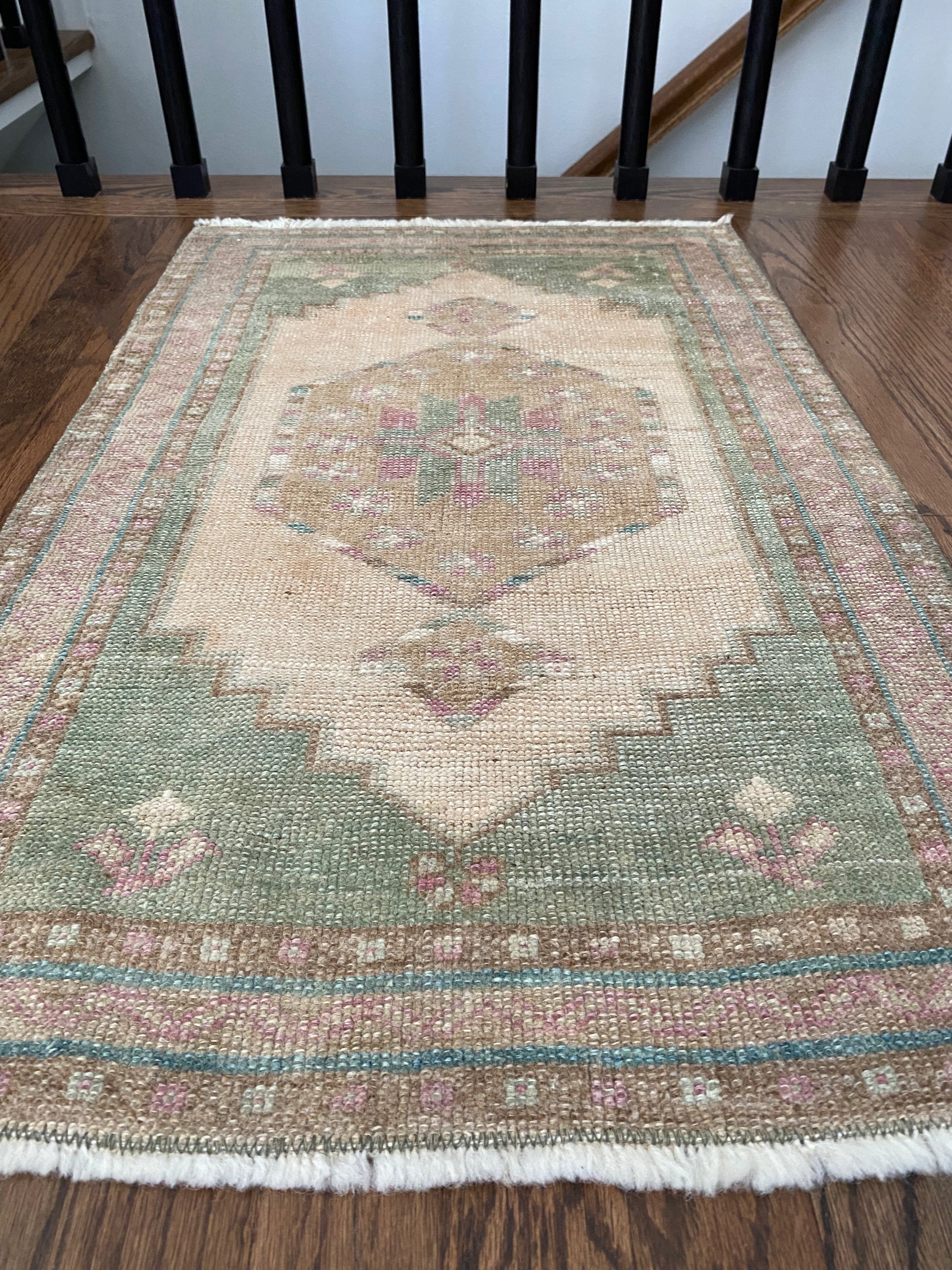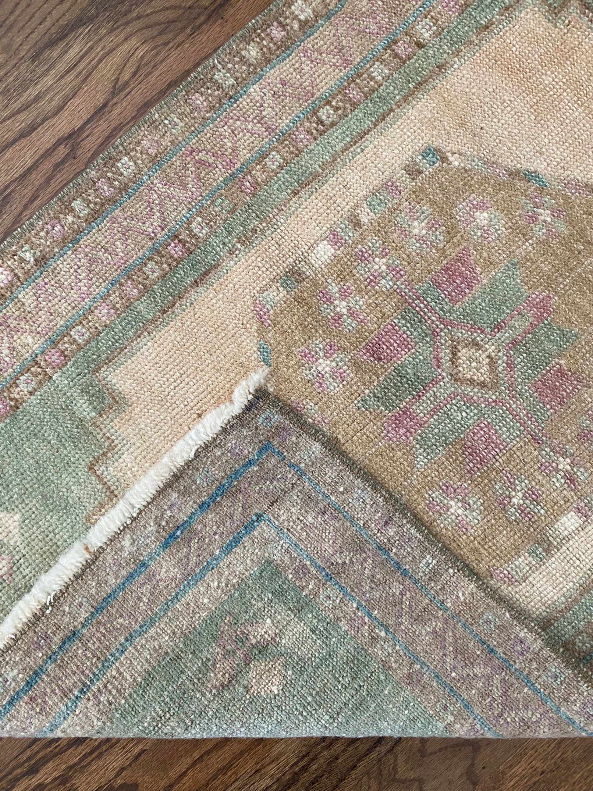 All of our rugs have been professionally cleaned prior to listing. We strive to deliver rugs that everyone loves, but please note that when you purchase from Two Sisters Rugs you are purchasing an item that is pre-owned and vintage by nature. Rugs might have areas of wear, minor repairs, or other unique characteristics, but we believe this is what makes them beautiful and one of a kind. Many rugs do not have perfect lines. All photographs are taken on an iPhone with no filter in natural light unless otherwise noted; colors may vary depending on the placement in your home. Colors may also vary depending on your phone or screen settings. If the area you are placing the rug has less natural light, the rug will appear darker in person. We aim to represent each rugs true colors and designs on the listing photos, but are happy to send additional photos upon request prior to purchase. High quality wool contains a substance called lanolin, which emits a metallic-y, but sweet and grassy scent. ALL SALES ARE FINAL.