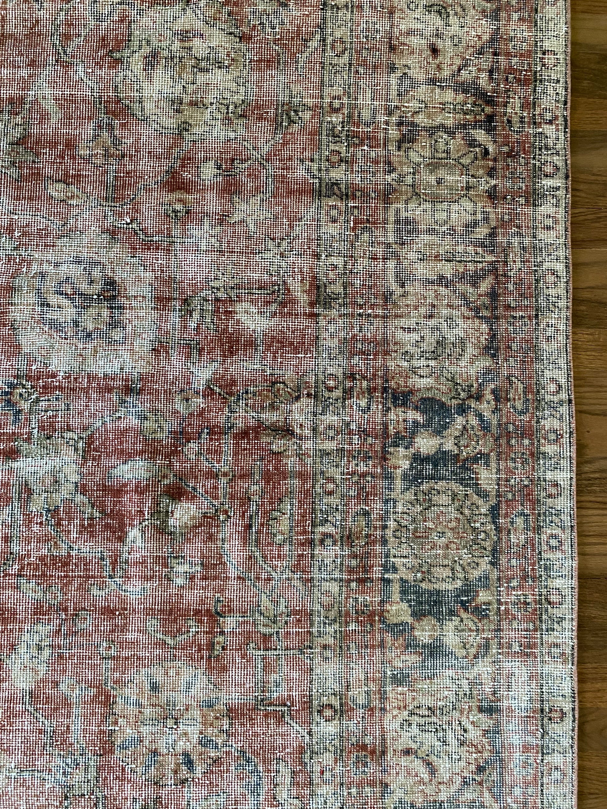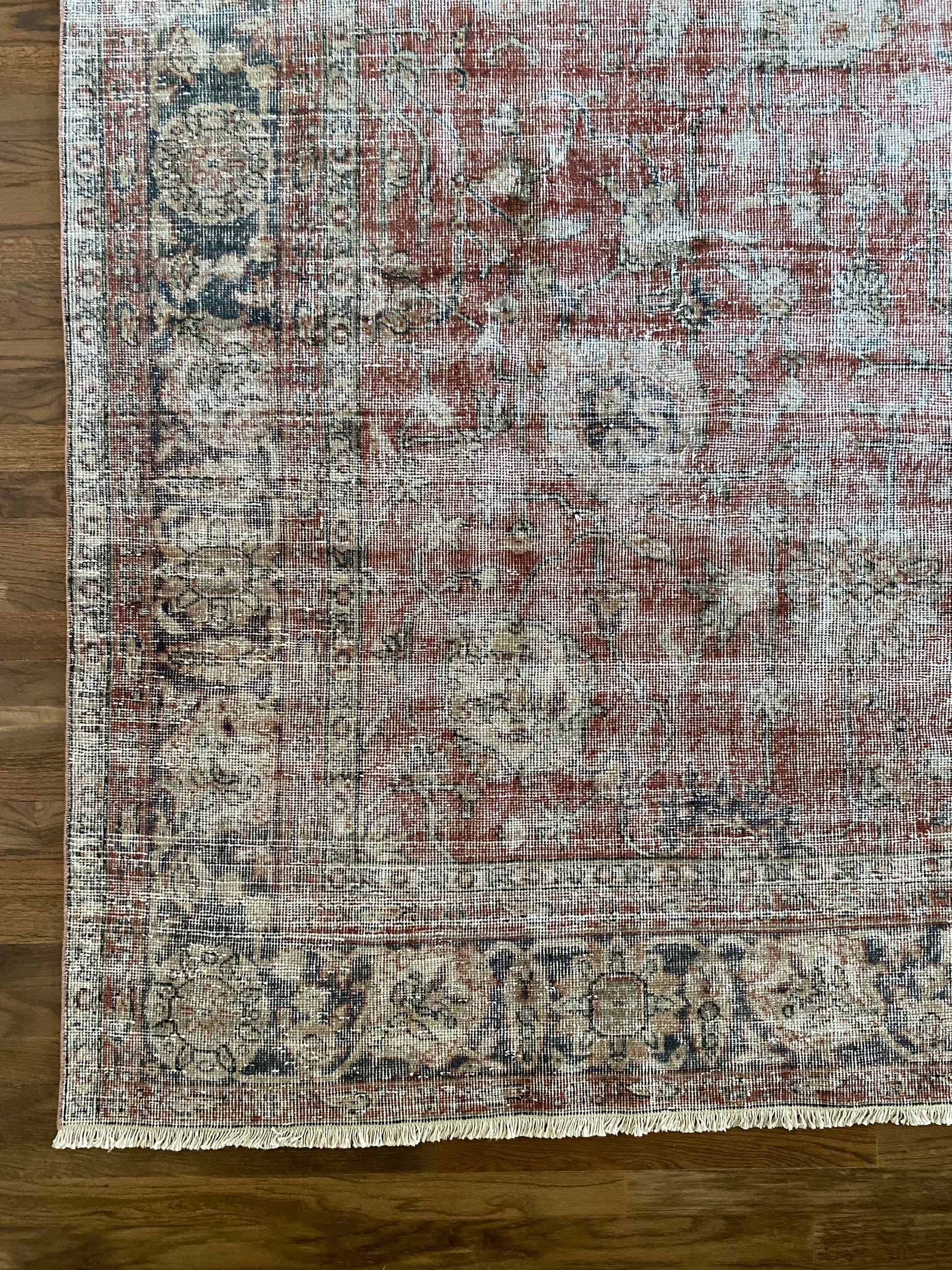 Vintage Turkish Wool Area Rug 8’x10’6" – Hand-Knotted Muted Red Floral Rug | Valerie