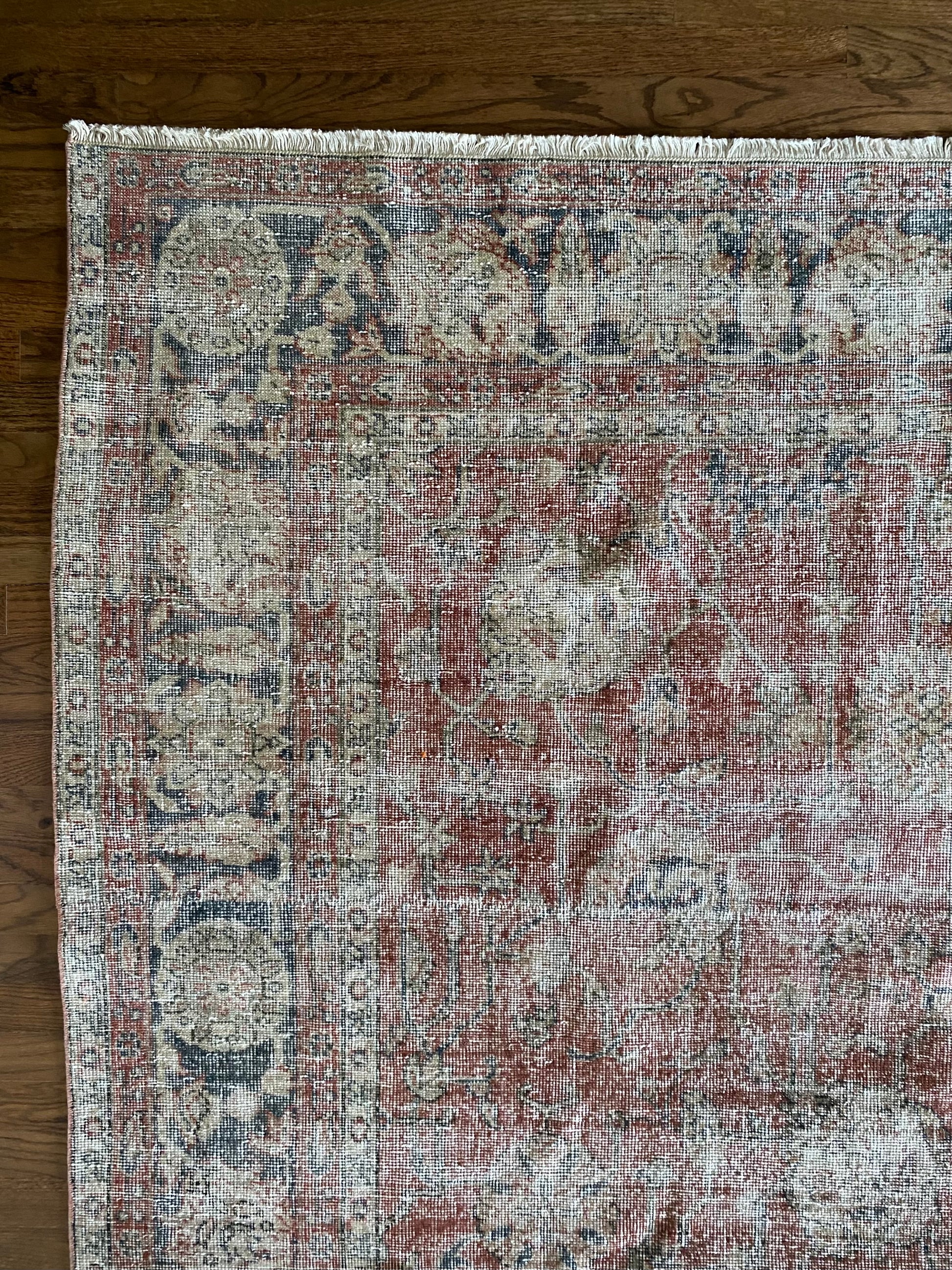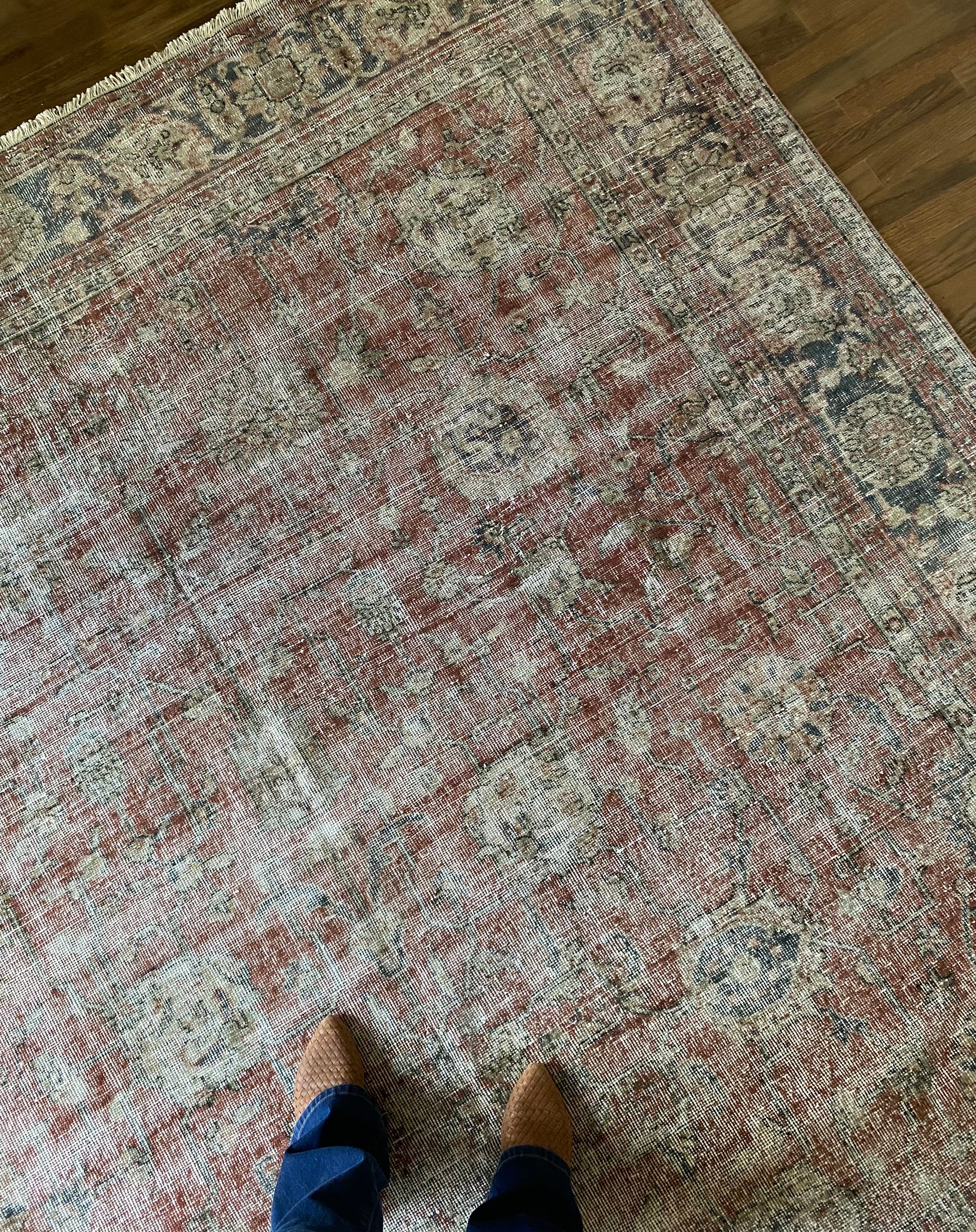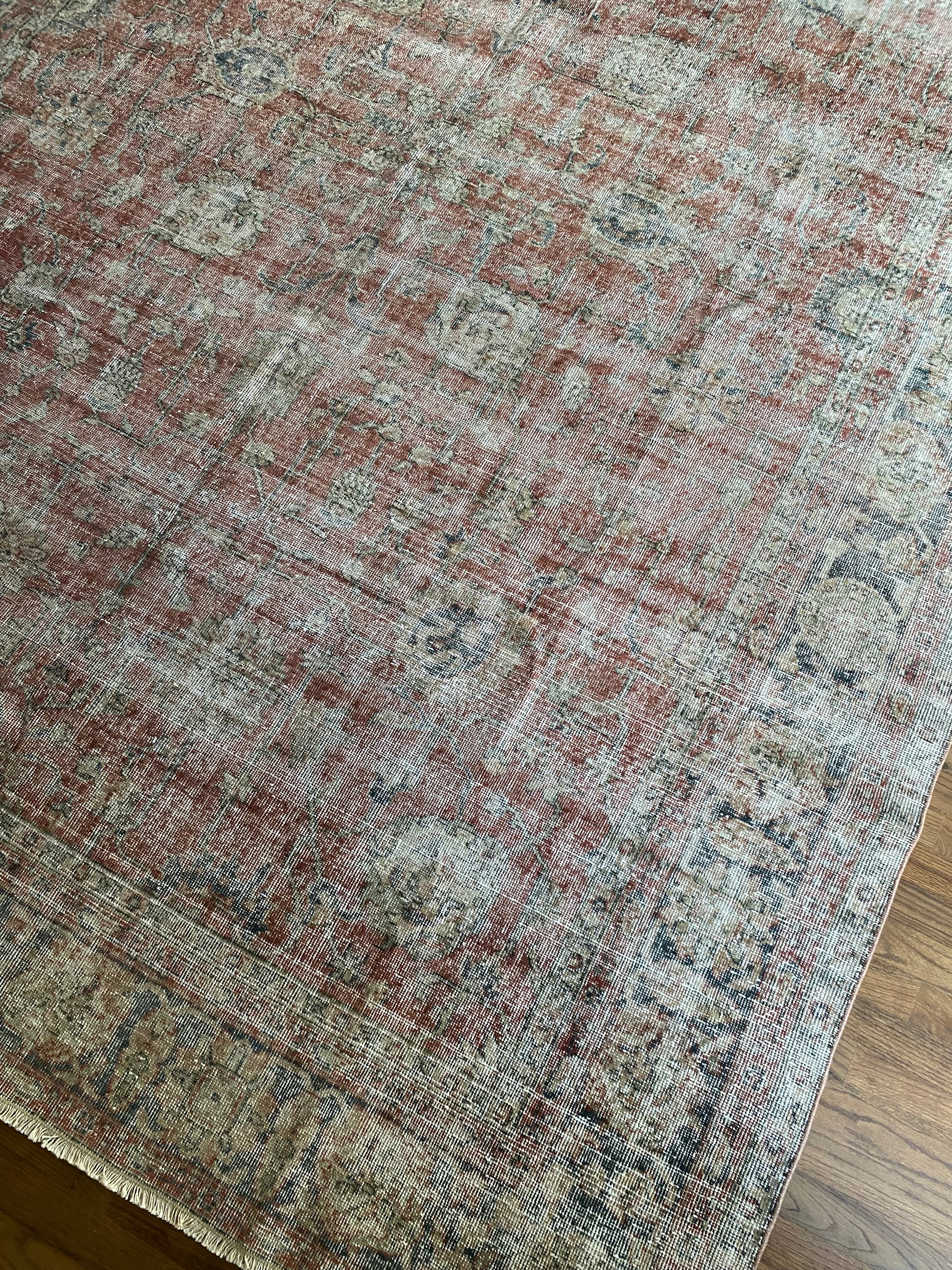 All of our rugs have been professionally cleaned prior to listing. We strive to deliver rugs that everyone loves, but please note that when you purchase from Two Sisters Rugs you are purchasing an item that is pre-owned and vintage by nature. Rugs might have areas of wear, minor repairs, or other unique characteristics, but we believe this is what makes them beautiful and one of a kind. Many rugs do not have perfect lines. All photographs are taken on an iPhone with no filter in natural light unless otherwise noted; colors may vary depending on the placement in your home. Colors may also vary depending on your phone or screen settings. If the area you are placing the rug has less natural light, the rug will appear darker in person. We aim to represent each rugs true colors and designs on the listing photos, but are happy to send additional photos upon request prior to purchase. High quality wool contains a substance called lanolin, which emits a metallic-y, but sweet and grassy scent. ALL SALES ARE FINAL.